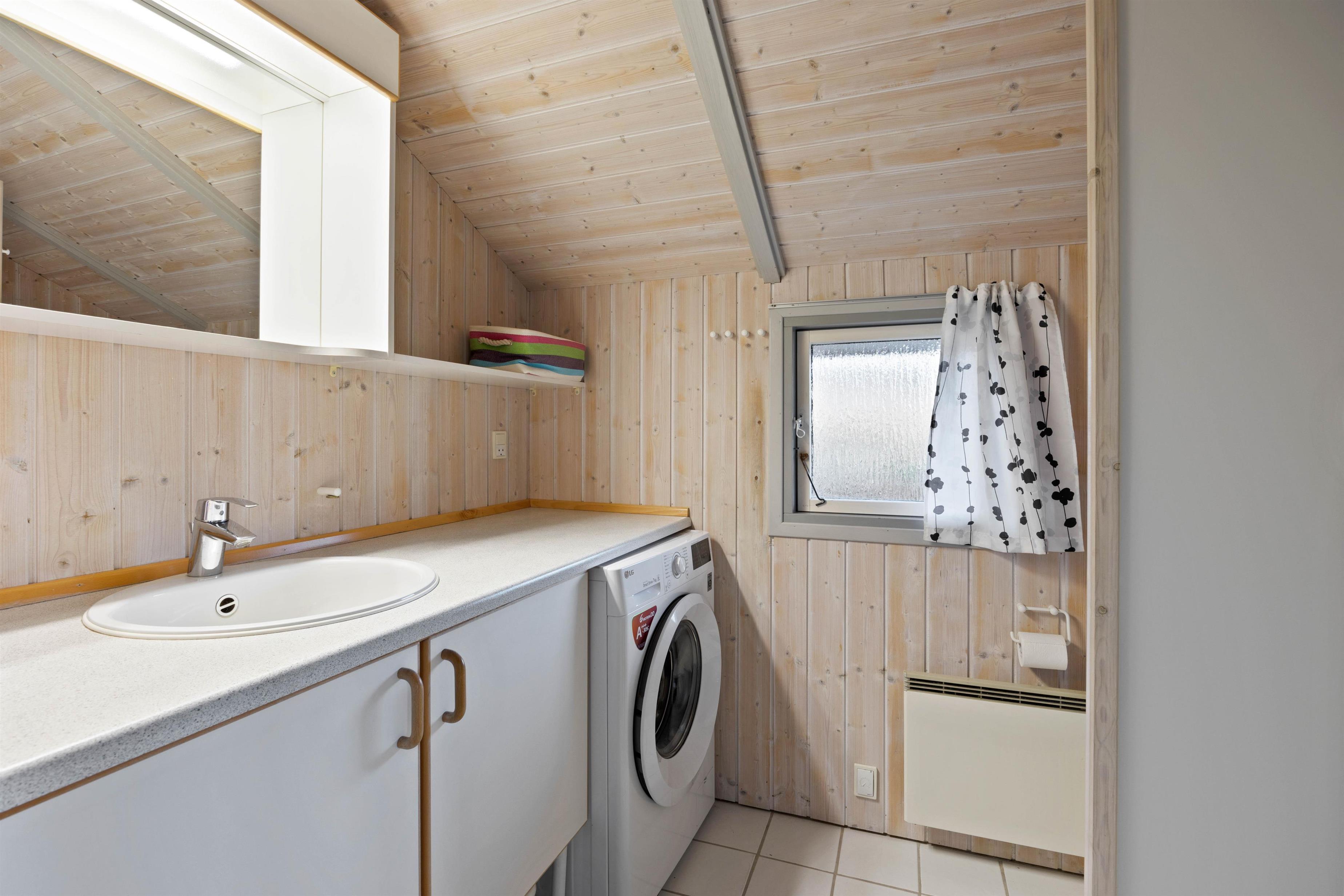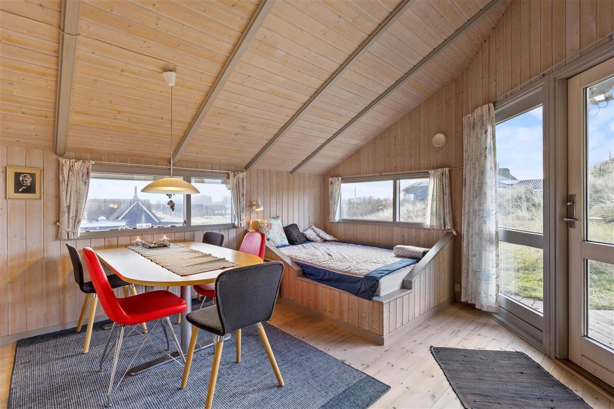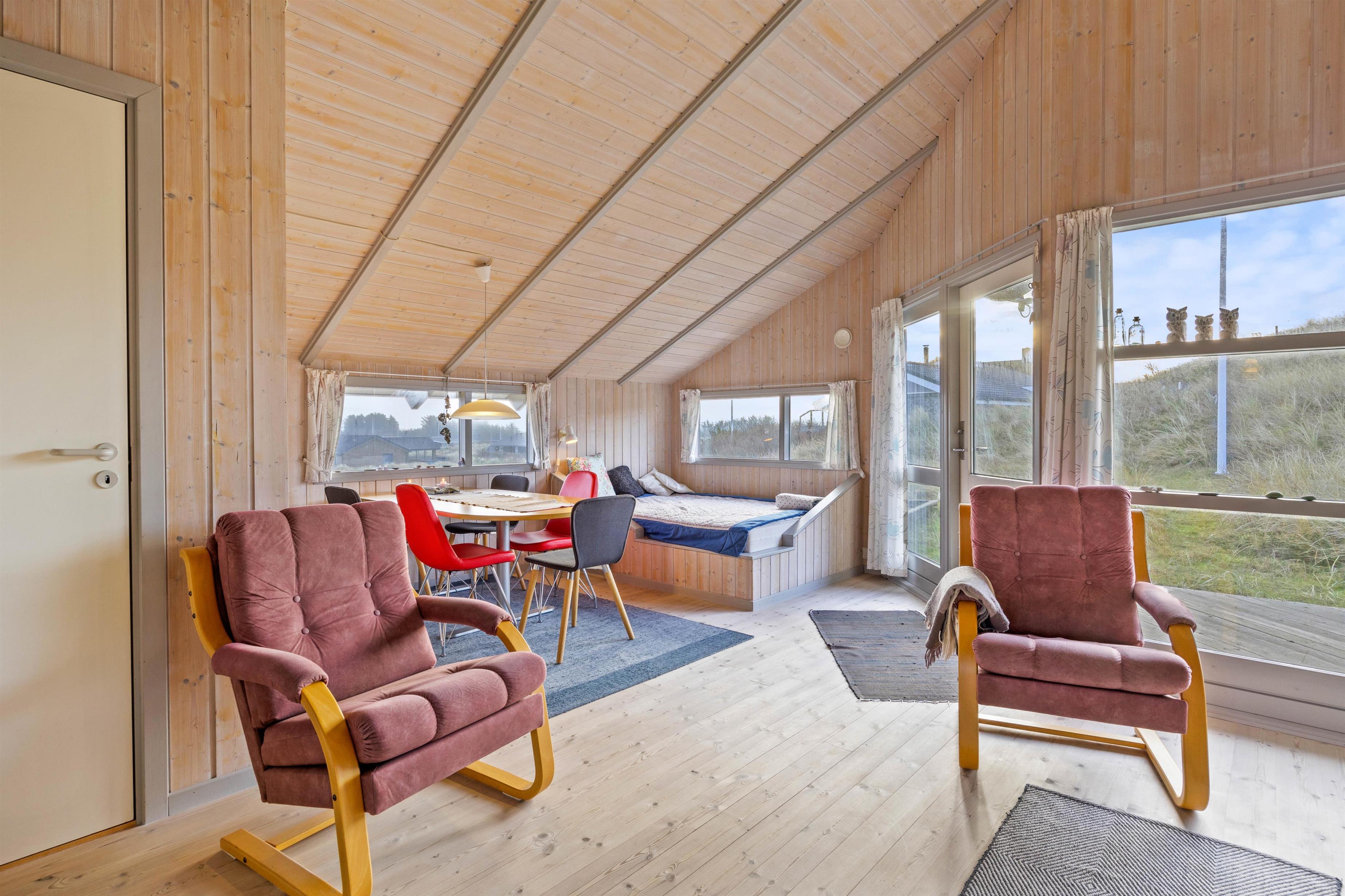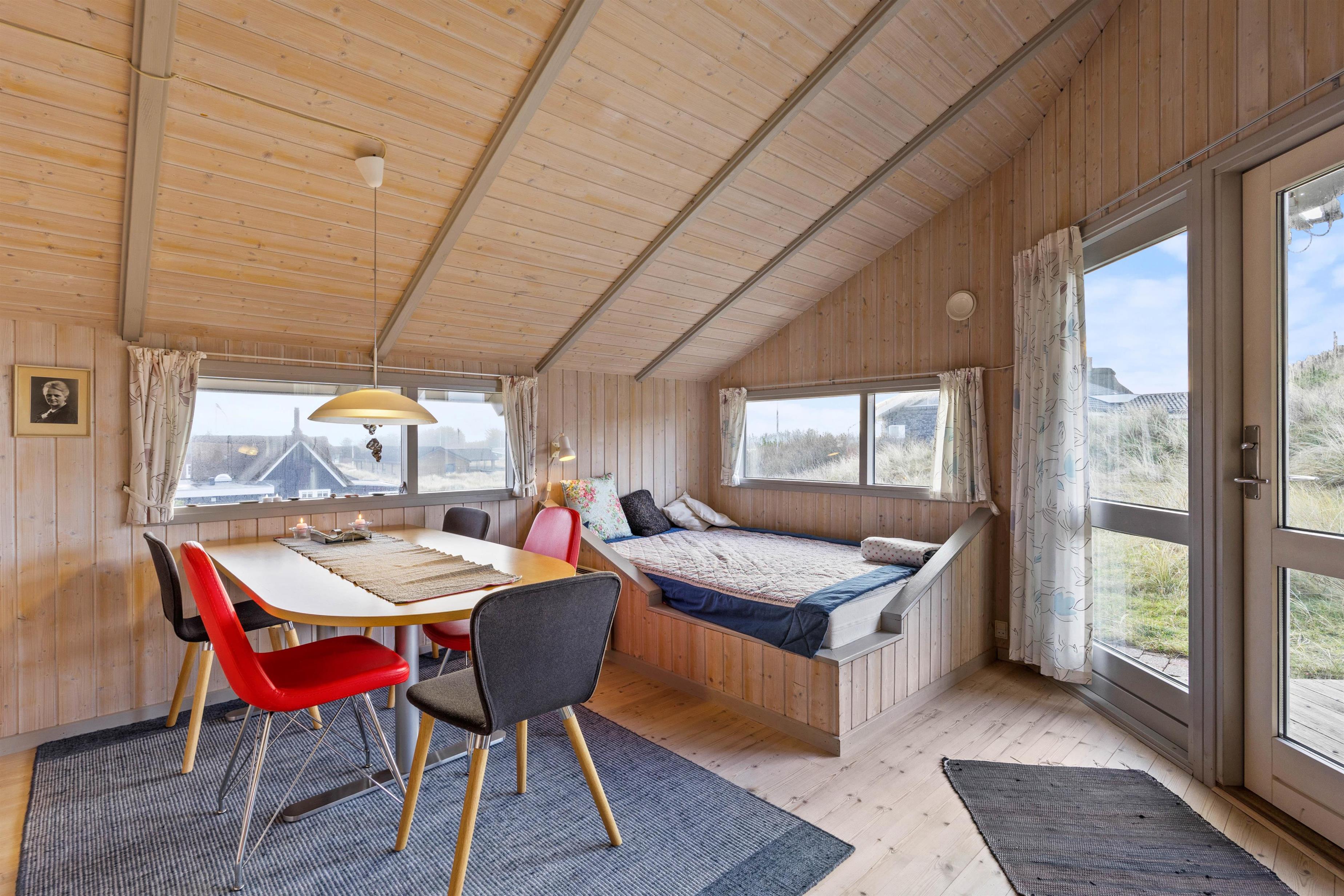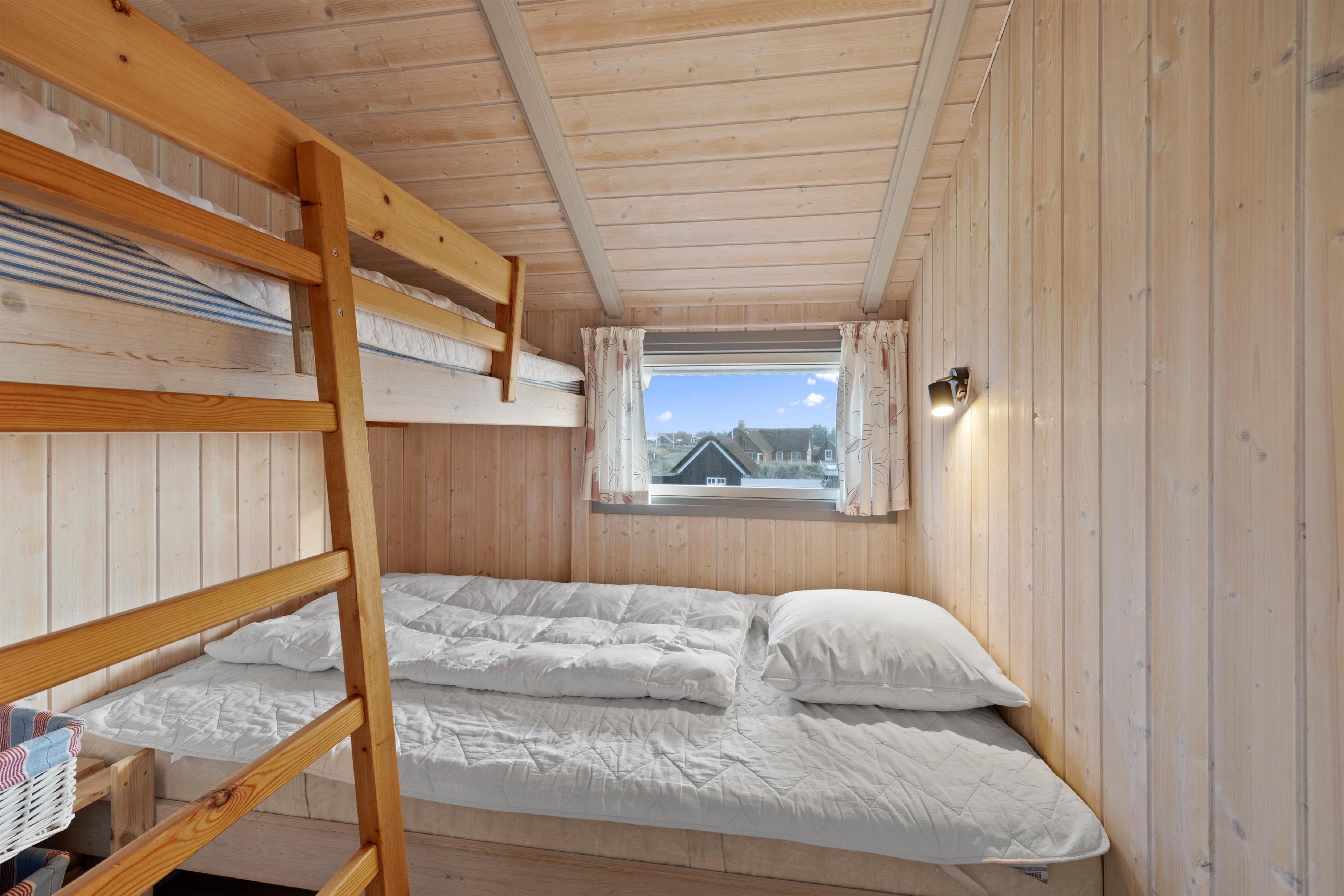 You'll undoubtedly spend most of your holiday in the combined living room and kitchen area. Here you can enjoy fun board games while keeping an eye on your cooking. The holiday home is also equipped with a washing machine, ensuring you always have clean clothes. In the evening, you can retreat to one of the two bedrooms. One bedroom has a double bed, while the second bedroom has a bunk bed. The second double bed in the holiday home is located in an alcove in the living room.