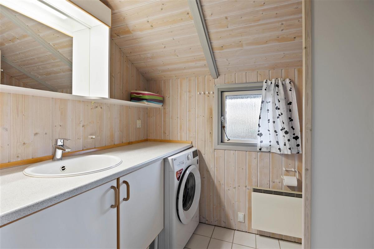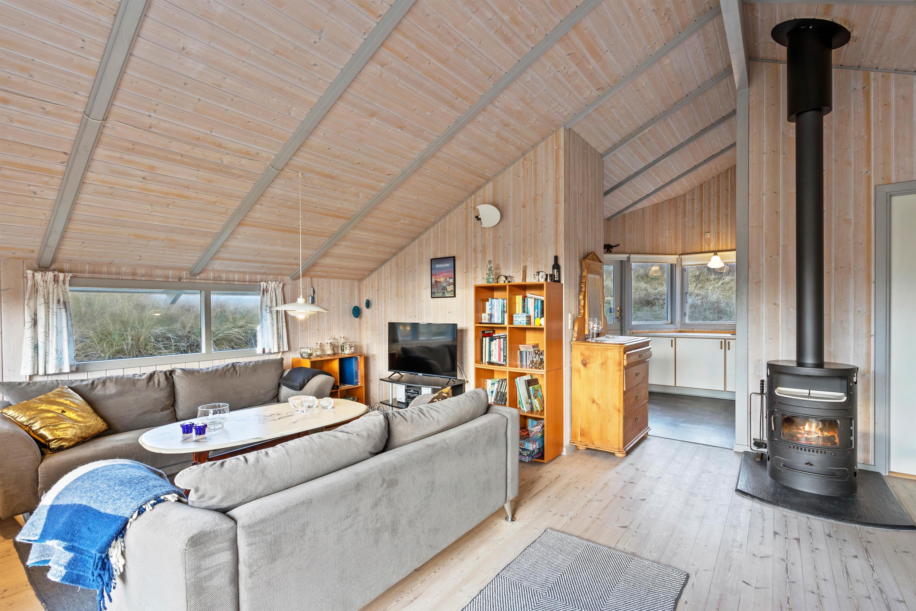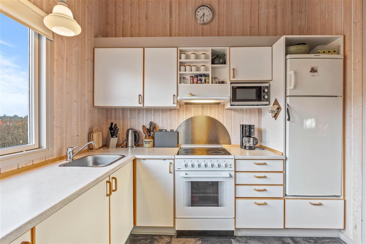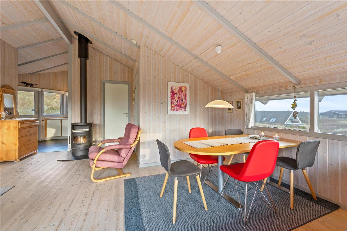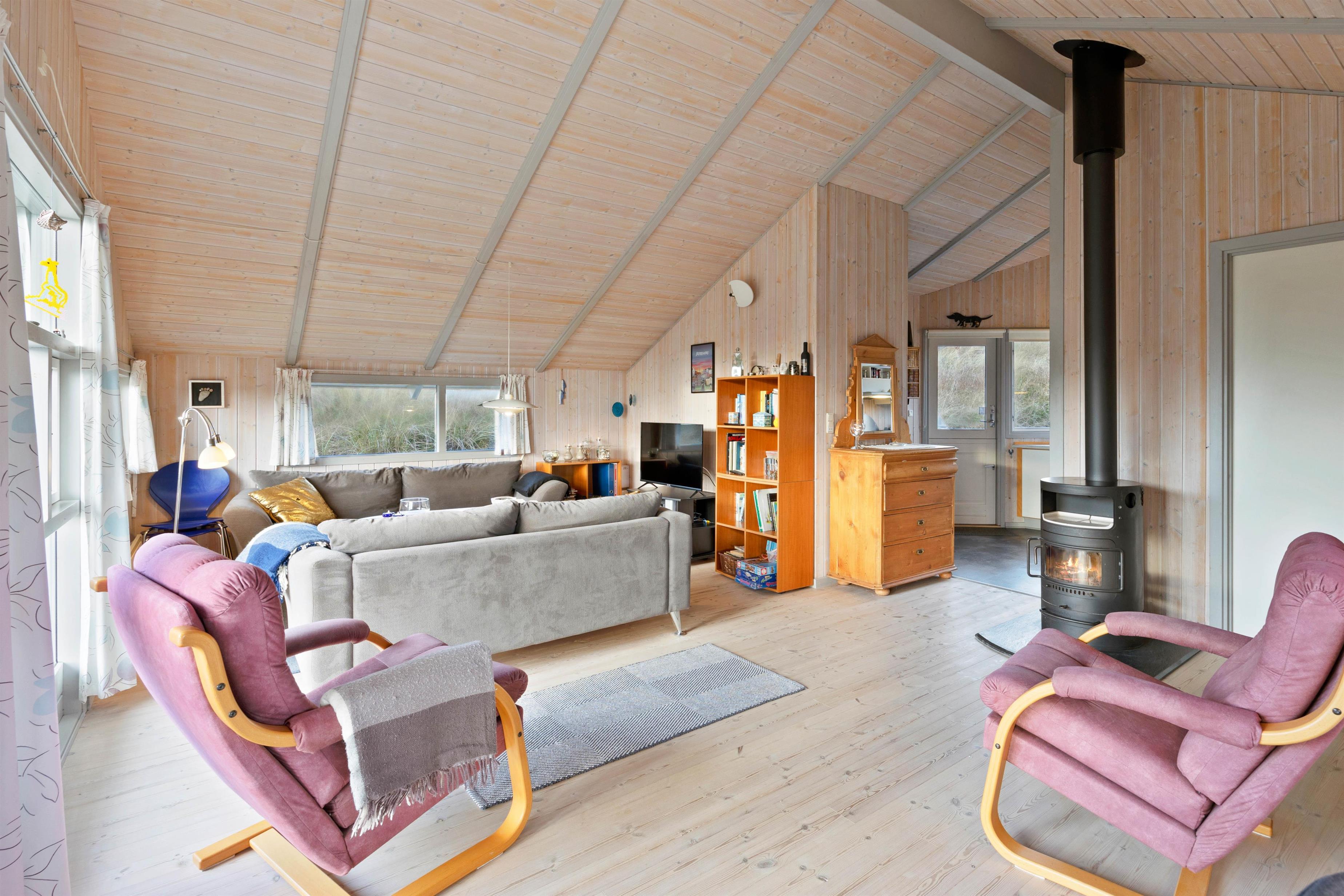 Upon entering the holiday home, you'll be welcomed by bright and friendly décor that immediately makes you feel at home. The wood-burning stove, centrally located in the holiday home, provides warmth and cosiness on cooler days.