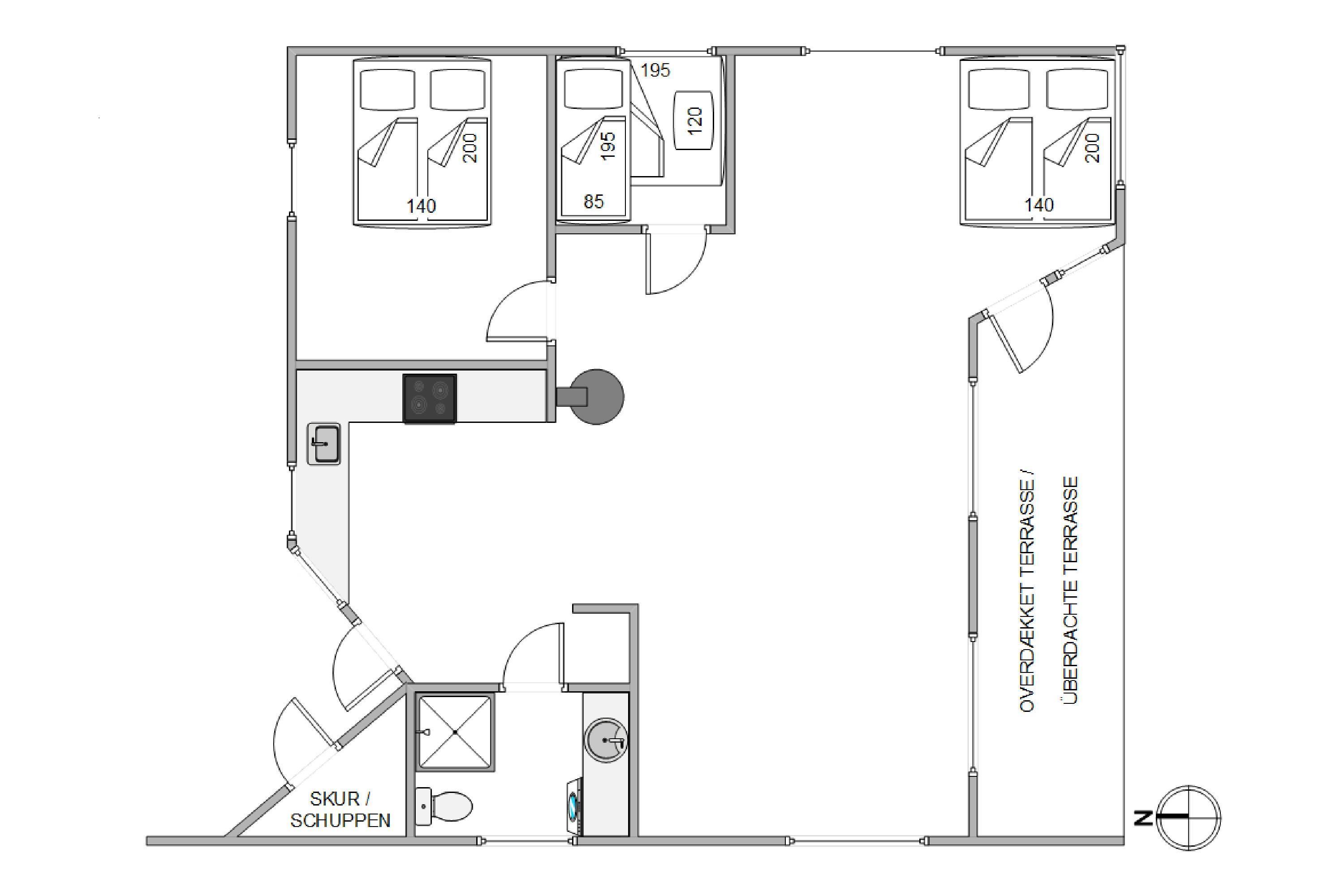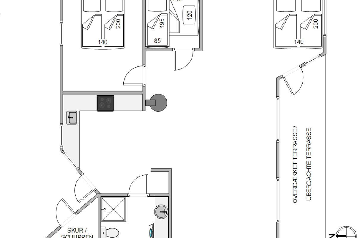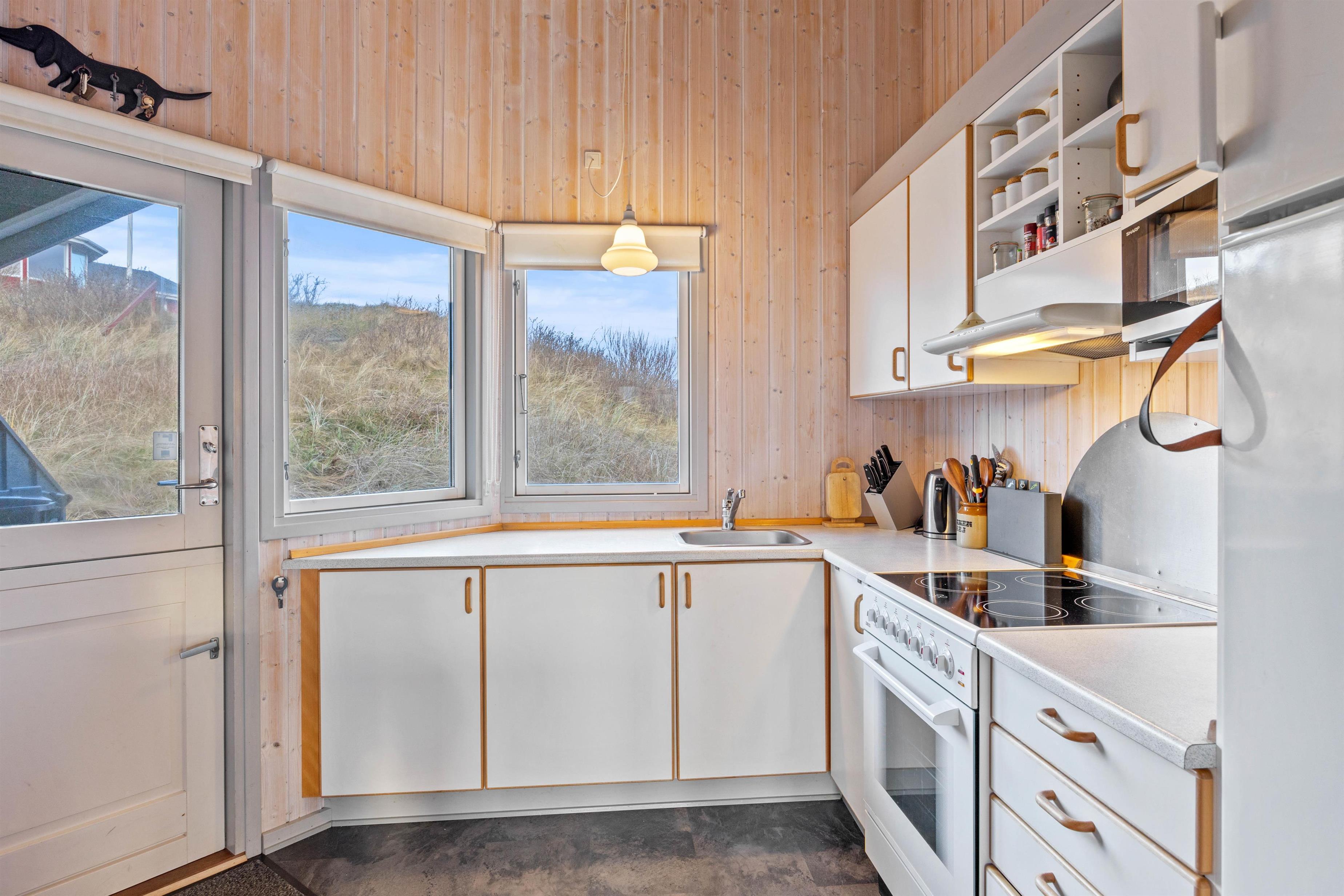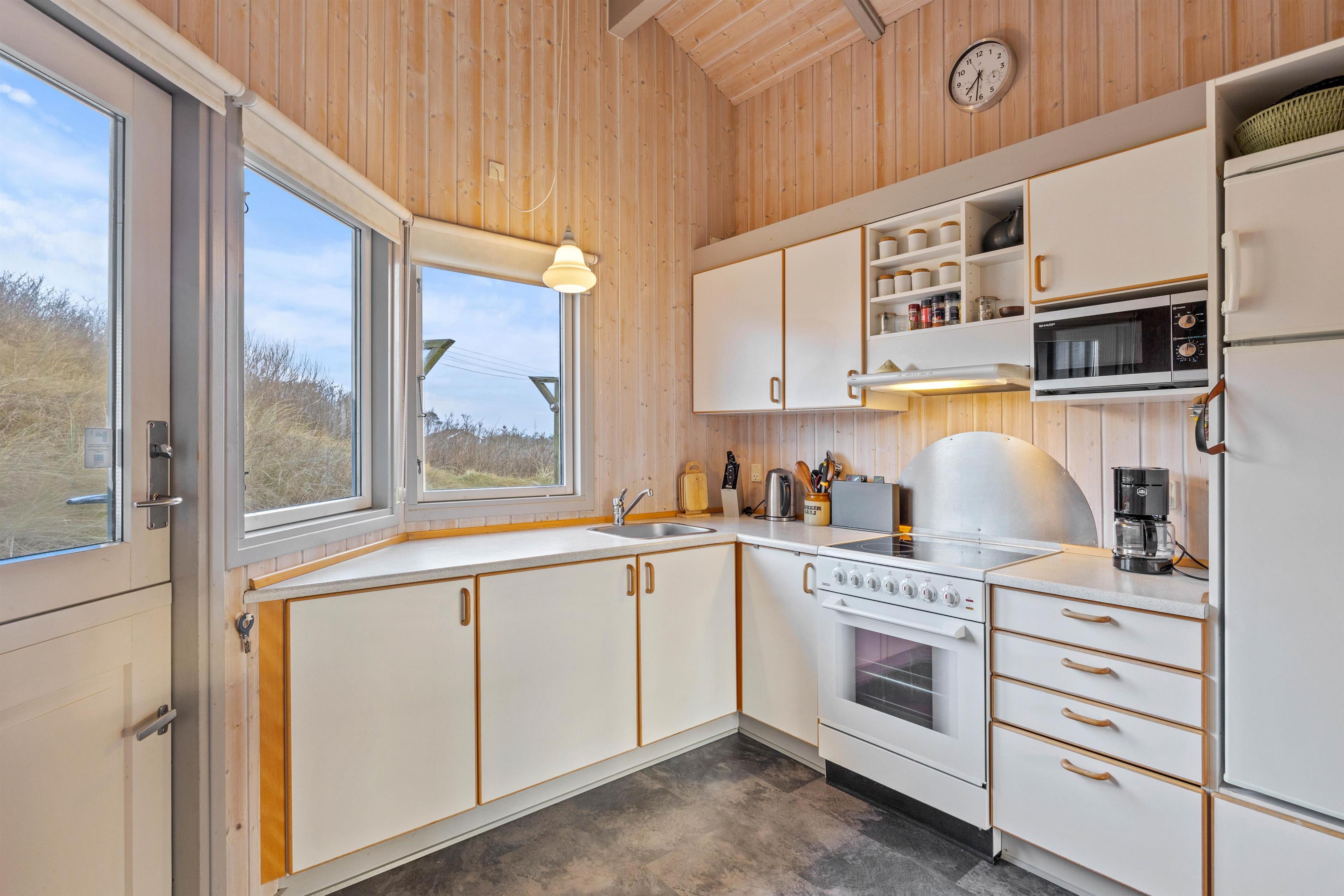 Upon entering the holiday home, you'll be welcomed by bright and friendly décor that immediately makes you feel at home. The wood-burning stove, centrally located in the holiday home, provides warmth and cosiness on cooler days.
