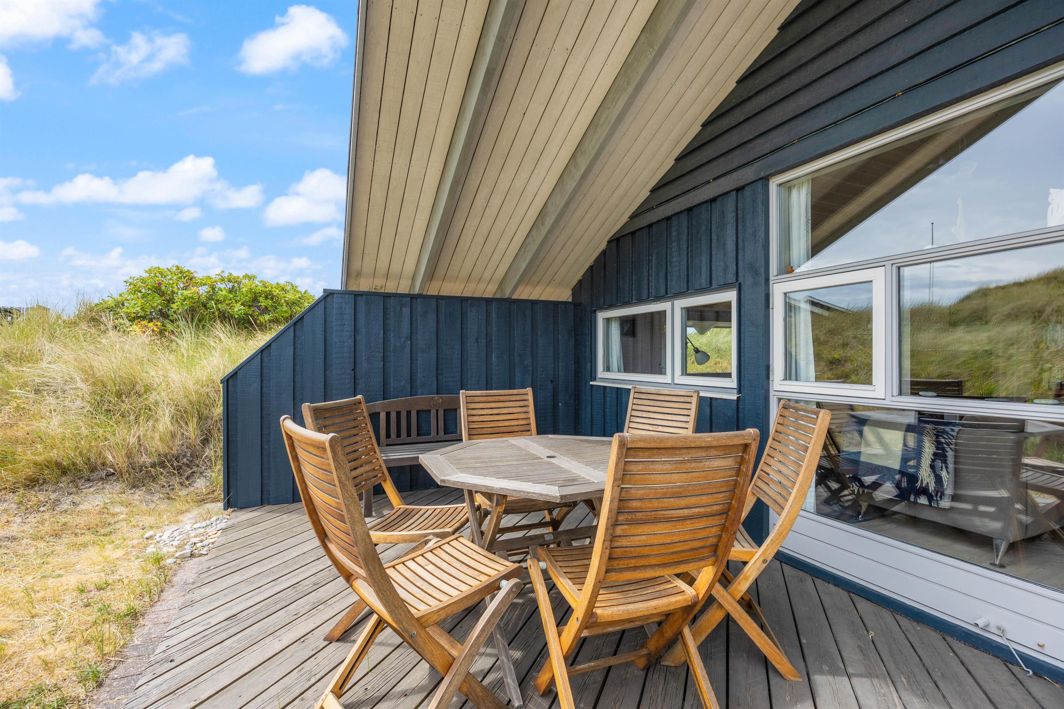 The holiday home sits on a 900-square-metre natural plot, surrounded by dunes and marram grass, placing you in one of the most beautiful natural landscapes. The surrounding dunes ensure plenty of privacy during your stay.