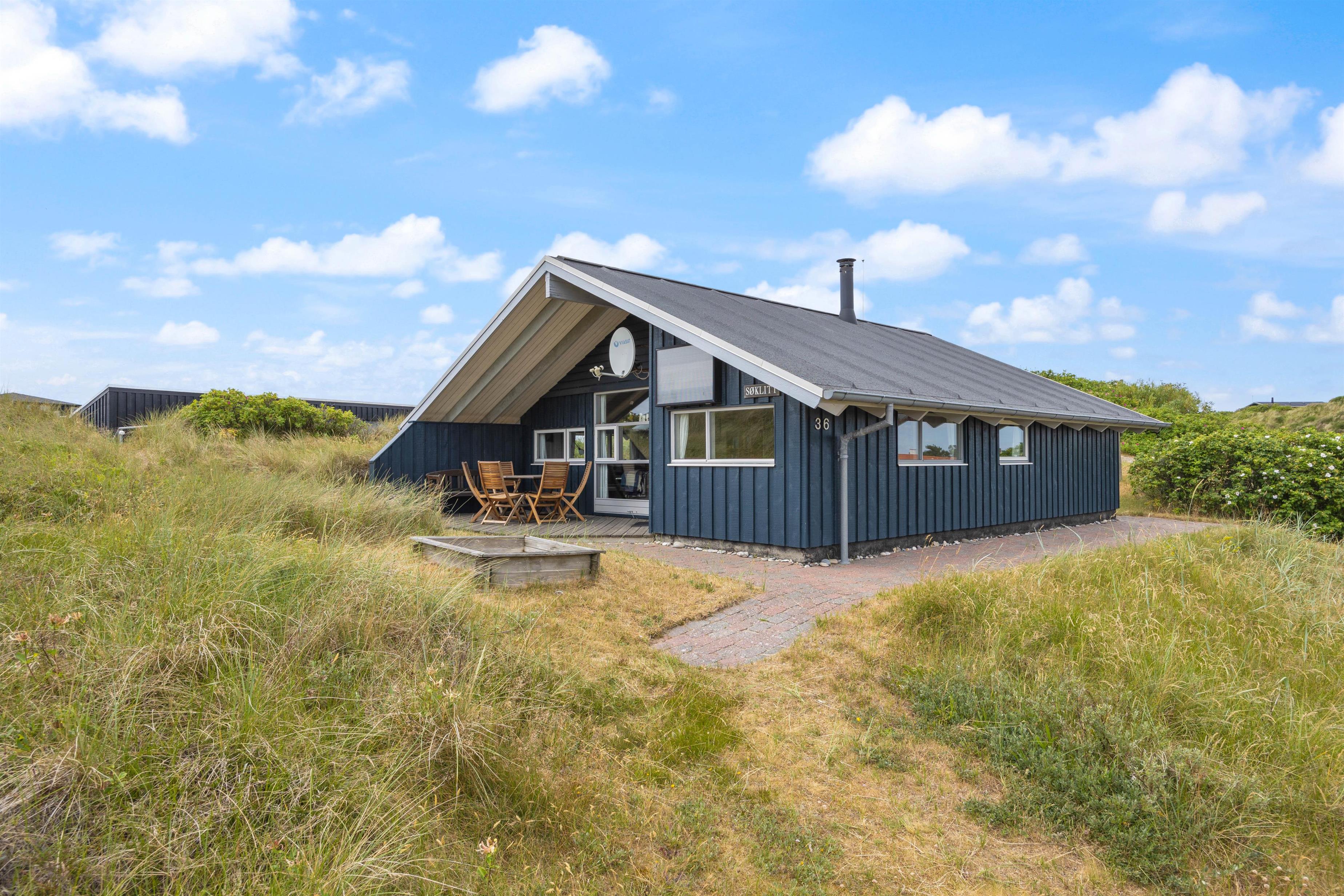 This beautiful holiday home for 6 people at Molsvej 36 in Søndervig is perfect for holidaymakers who appreciate comfort, sociability and beautiful natural surroundings. Relax in front of the cosy wood-burning stove or enjoy a cup of coffee on the lovely terrace. The highlight of this holiday home is its proximity to the beach and the roaring North Sea, just 300 metres away.