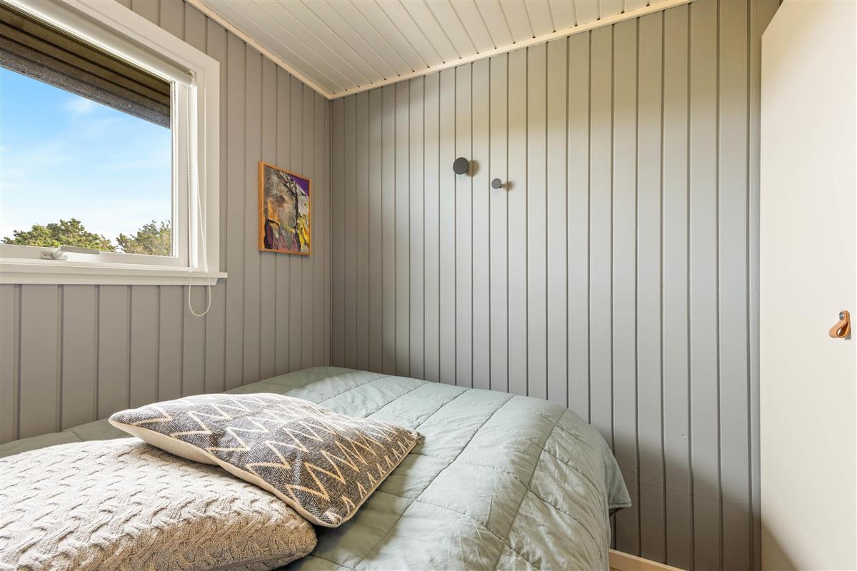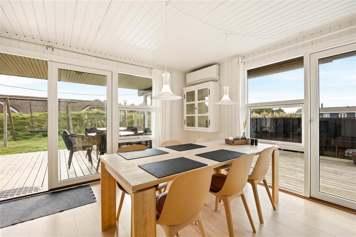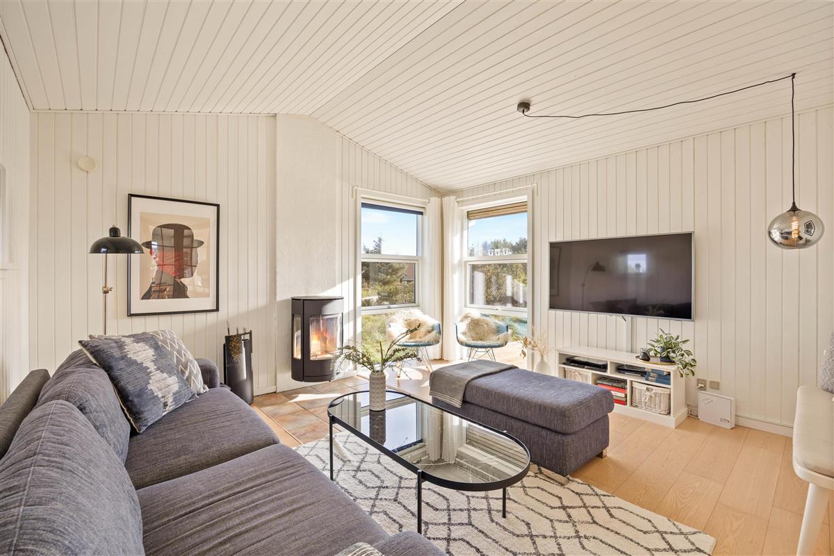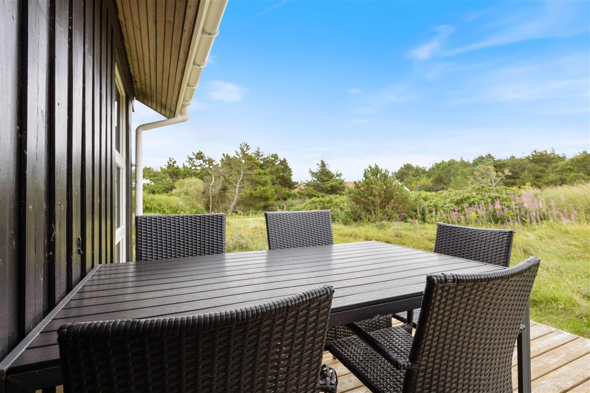 The holiday home at Wolle Friks Vej 27 sits on a natural plot just 900 metres from the North Sea and its wide sandy beach. The holiday home is located in an area ideal for walking and cycling on the extensive network of paths between Søndervig and Hvide Sande. Grab your dog's lead and head out with your pet and the whole family to explore the beautiful rolling terrain. And of course, don't forget to visit the North Sea.