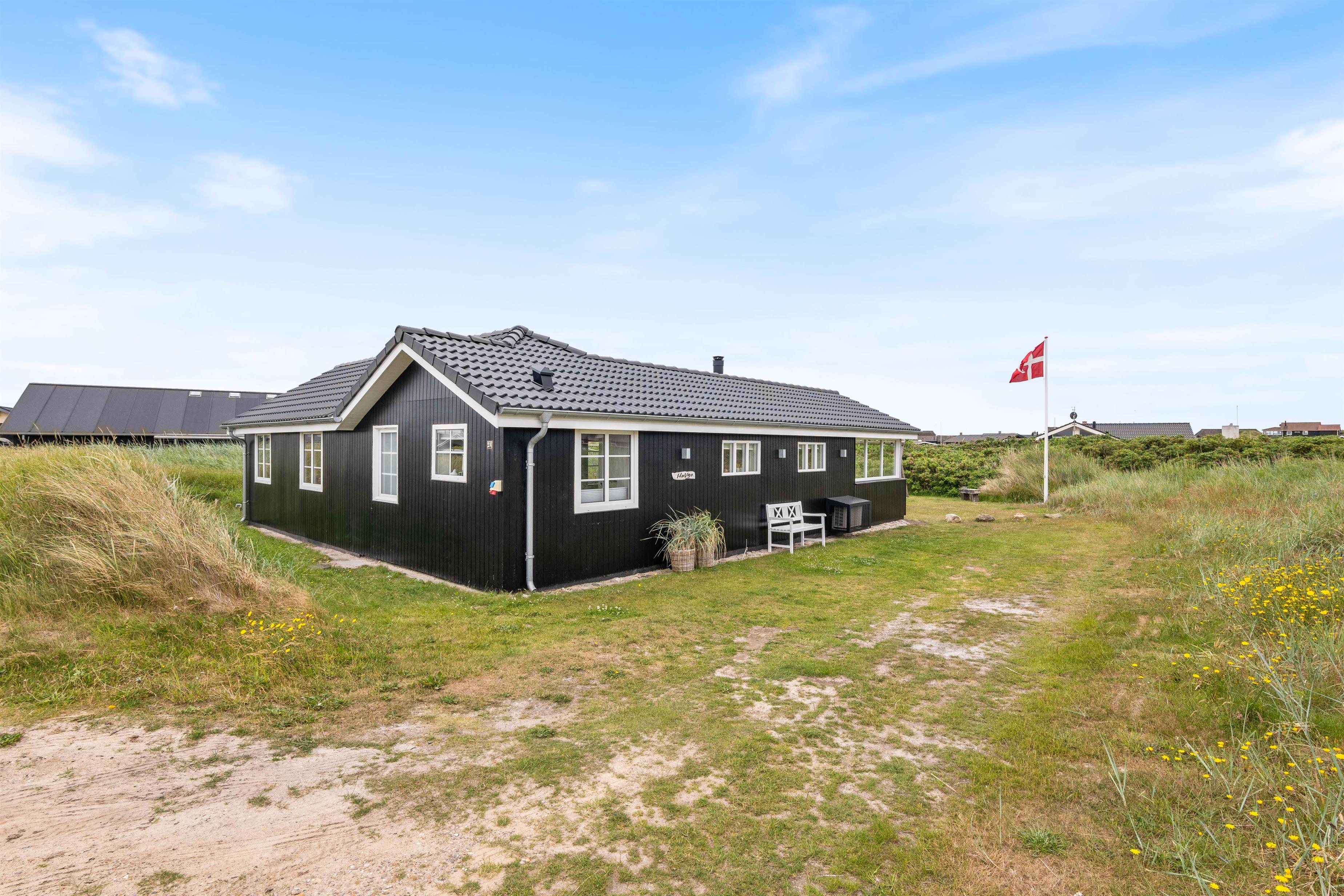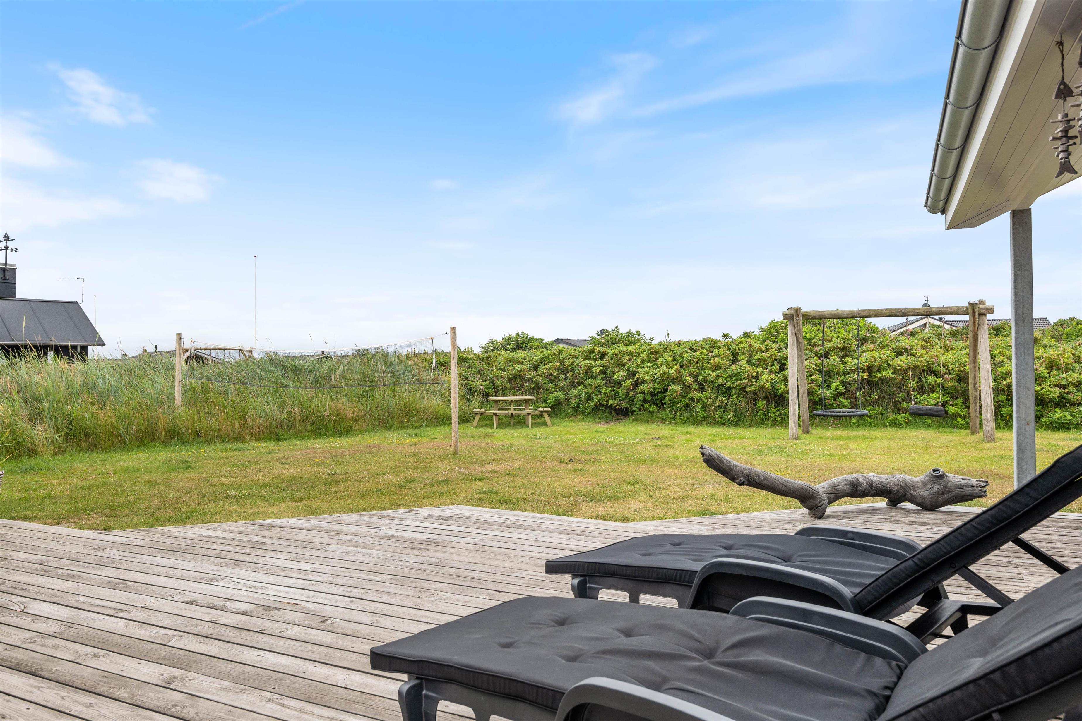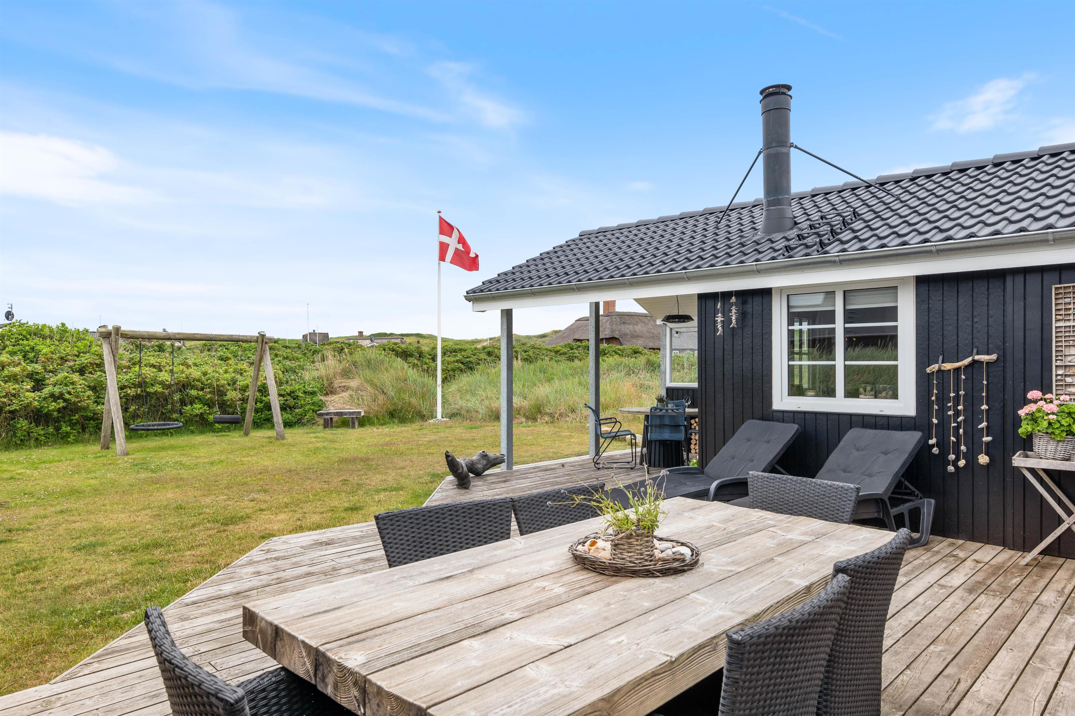 This well-maintained holiday home is located at Hafavej 24, close to Søndervig and the North Sea. The well-equipped holiday home sits on a large lawn where children can play or use the swing while you keep an eye on them from the terrace and enjoy the fresh air. An electric car charging point is also available.
