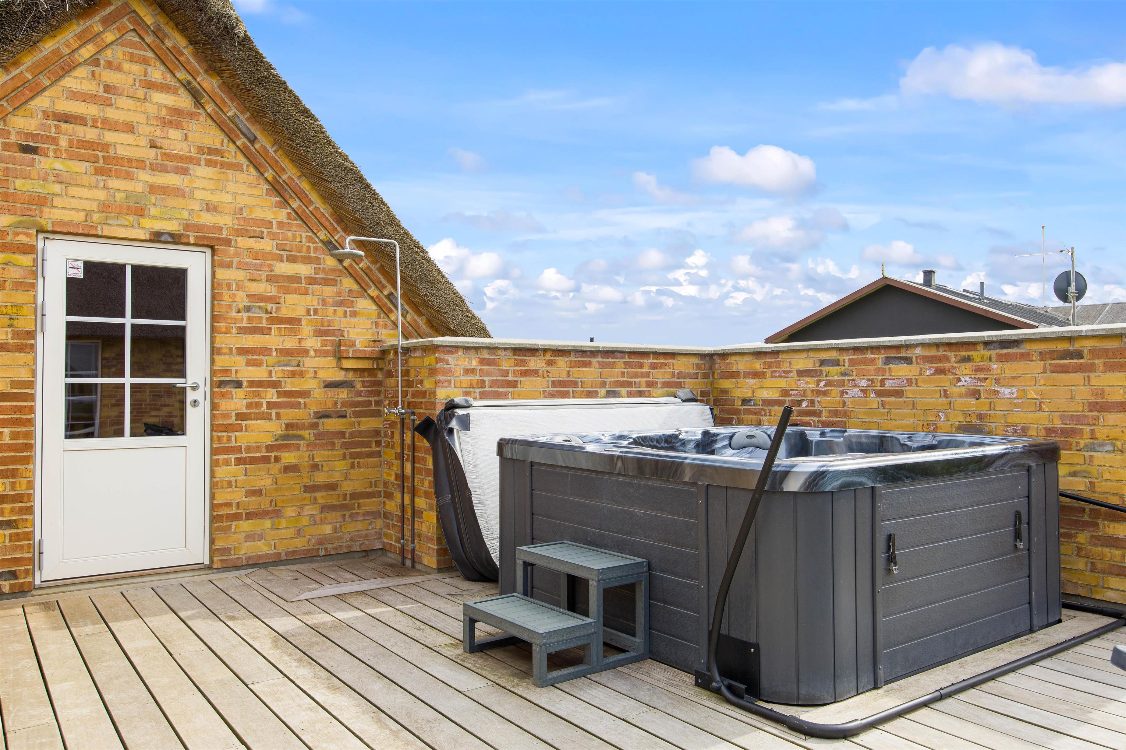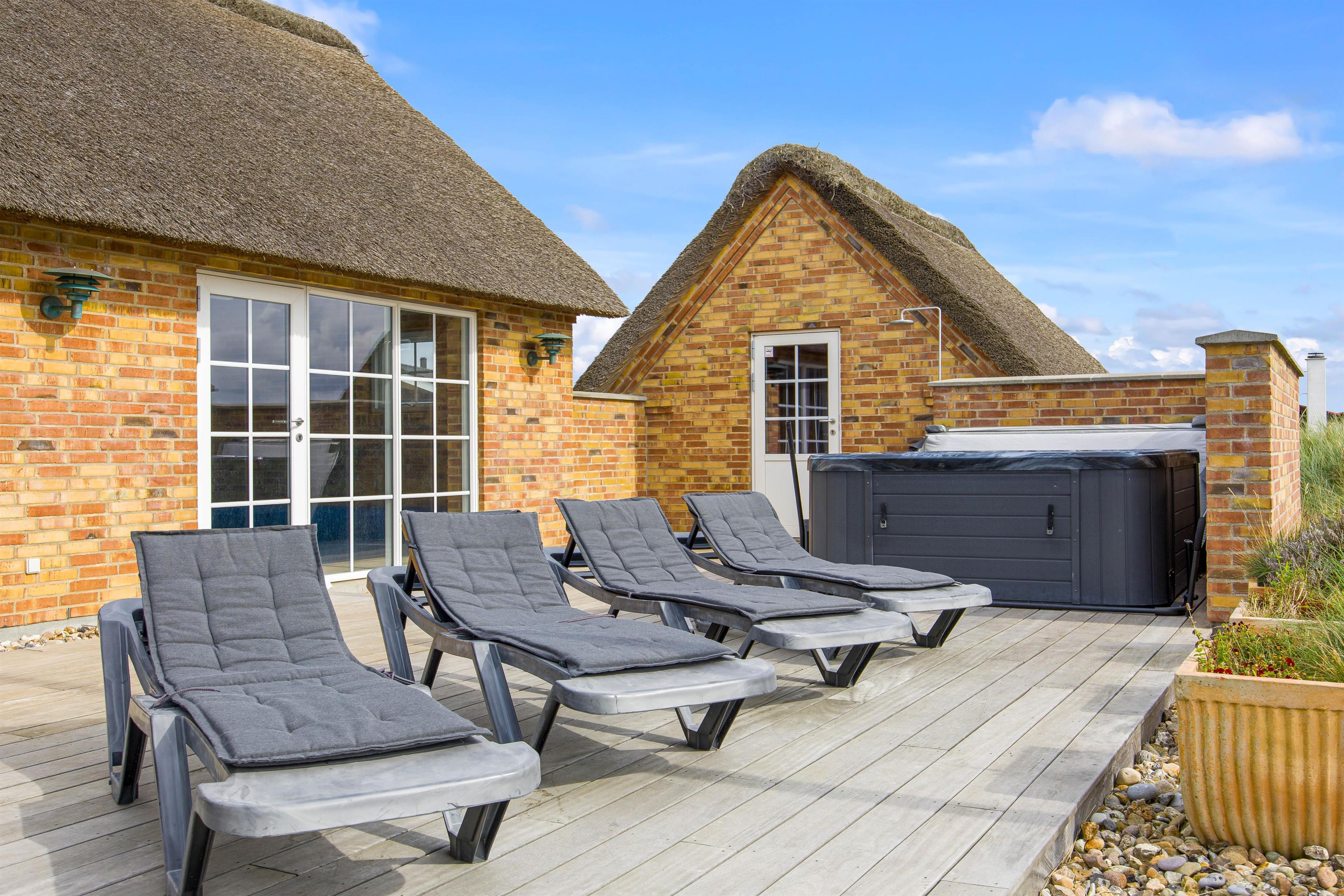 Outside, the terraces are designed to provide sheltered corners where you can relax with a good book on the provided garden furniture in fine weather. The terrace also features an outdoor hot tub, offering a special experience under the starlit sky.