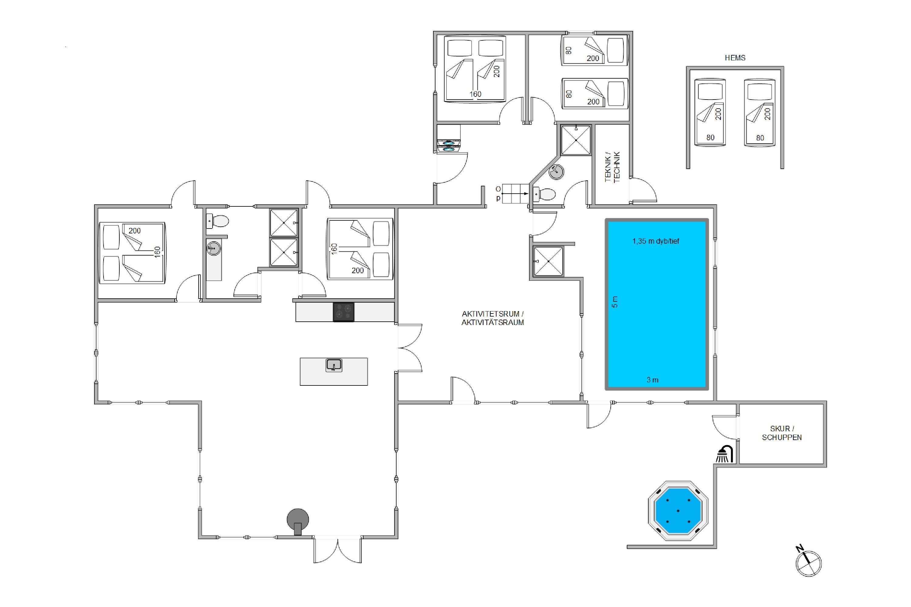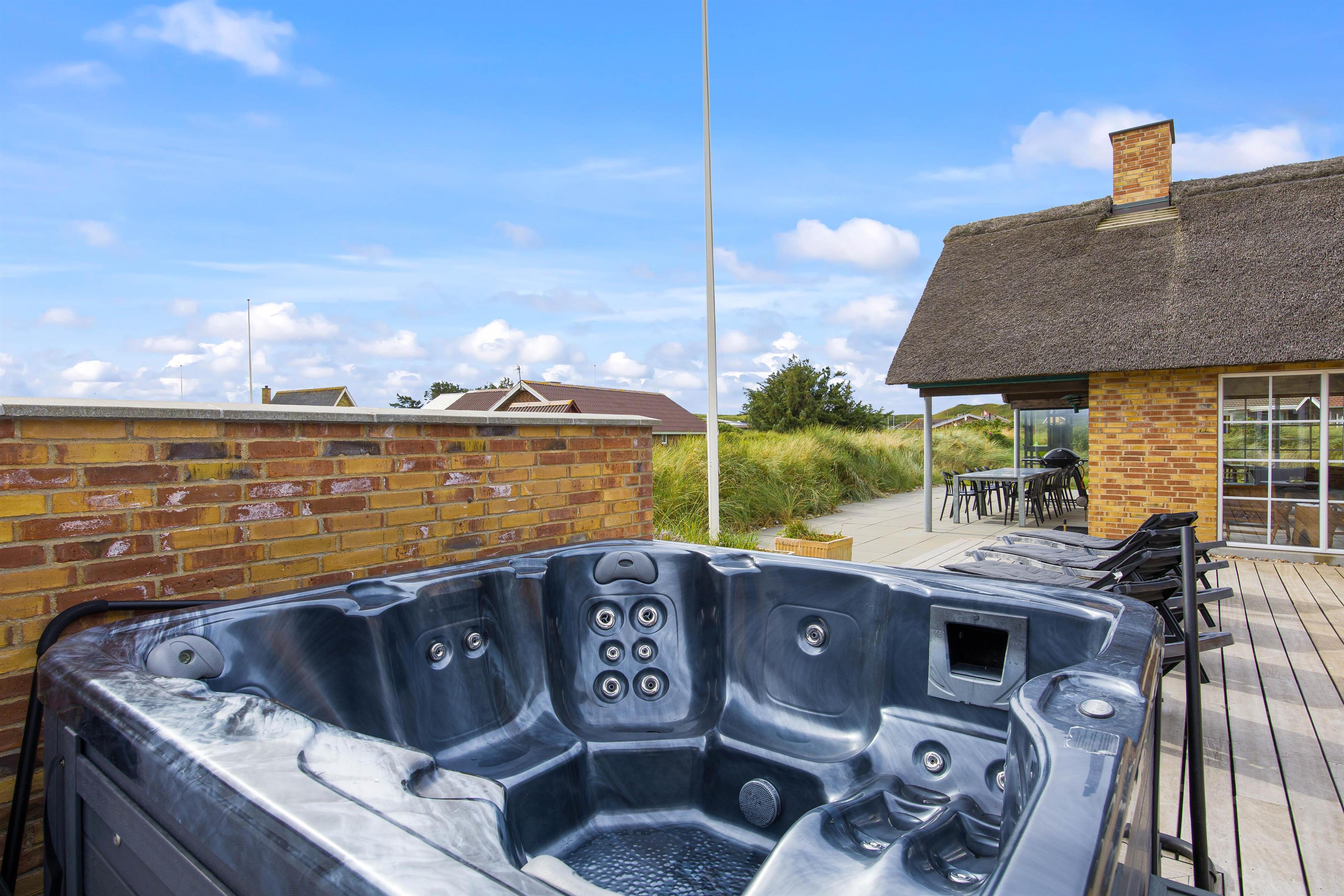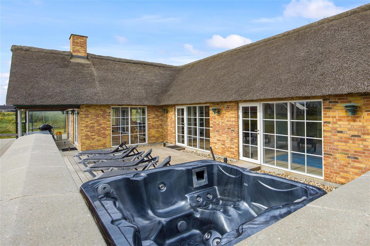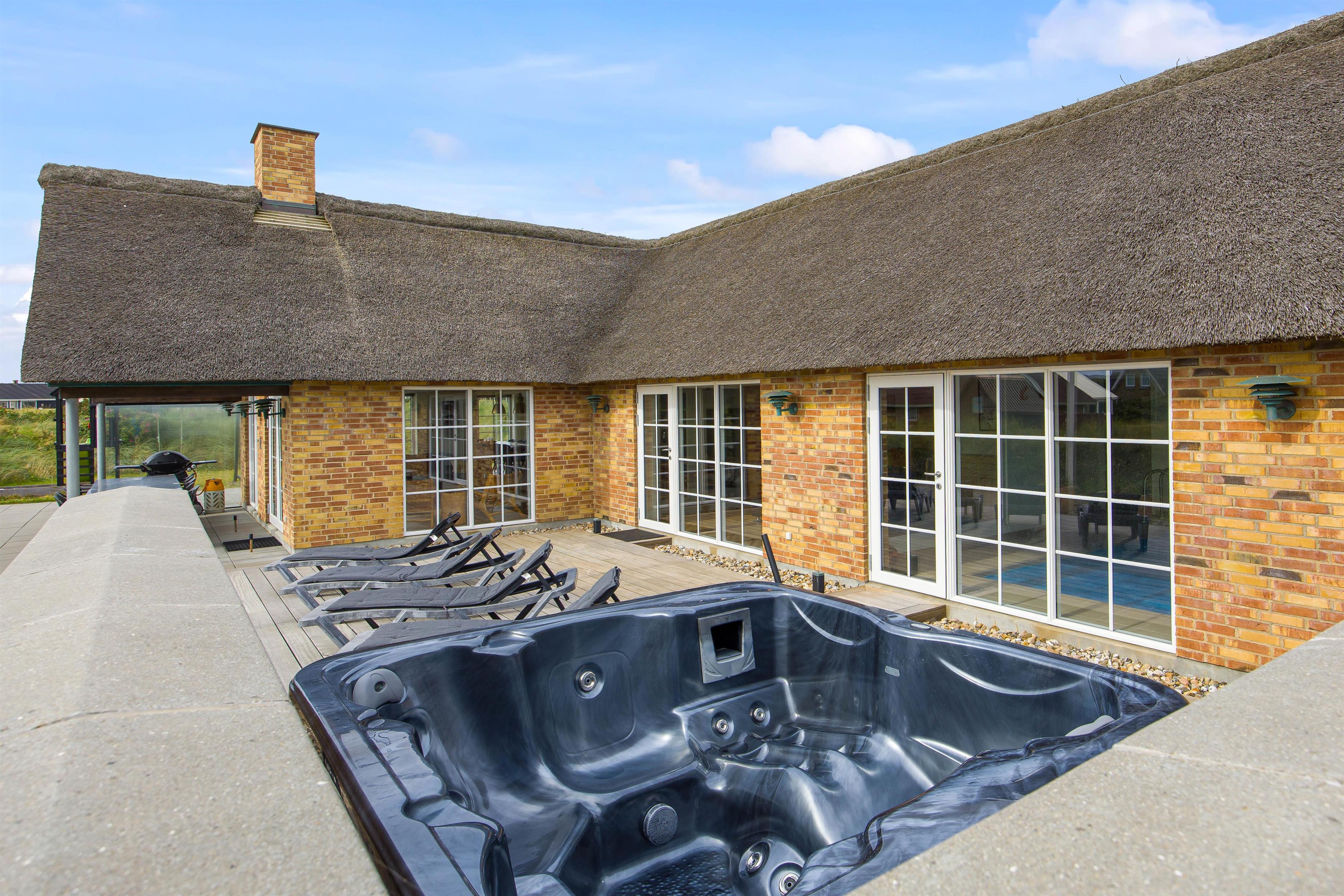 Located at Sand Holms Vej 9 in Søndervig, just 350 metres from the beach, this spacious and modern activity holiday home offers plenty of room for up to 10 people and leaves nothing to be desired. Best of all, your two dogs are also welcome here. Whether it's the swimming pool with counter-current system, outdoor hot tub, or pool table - everything is provided. The wood-burning stove in the living area ensures cosy evenings.