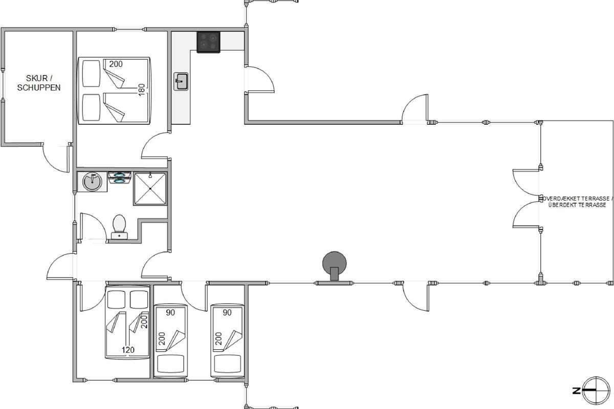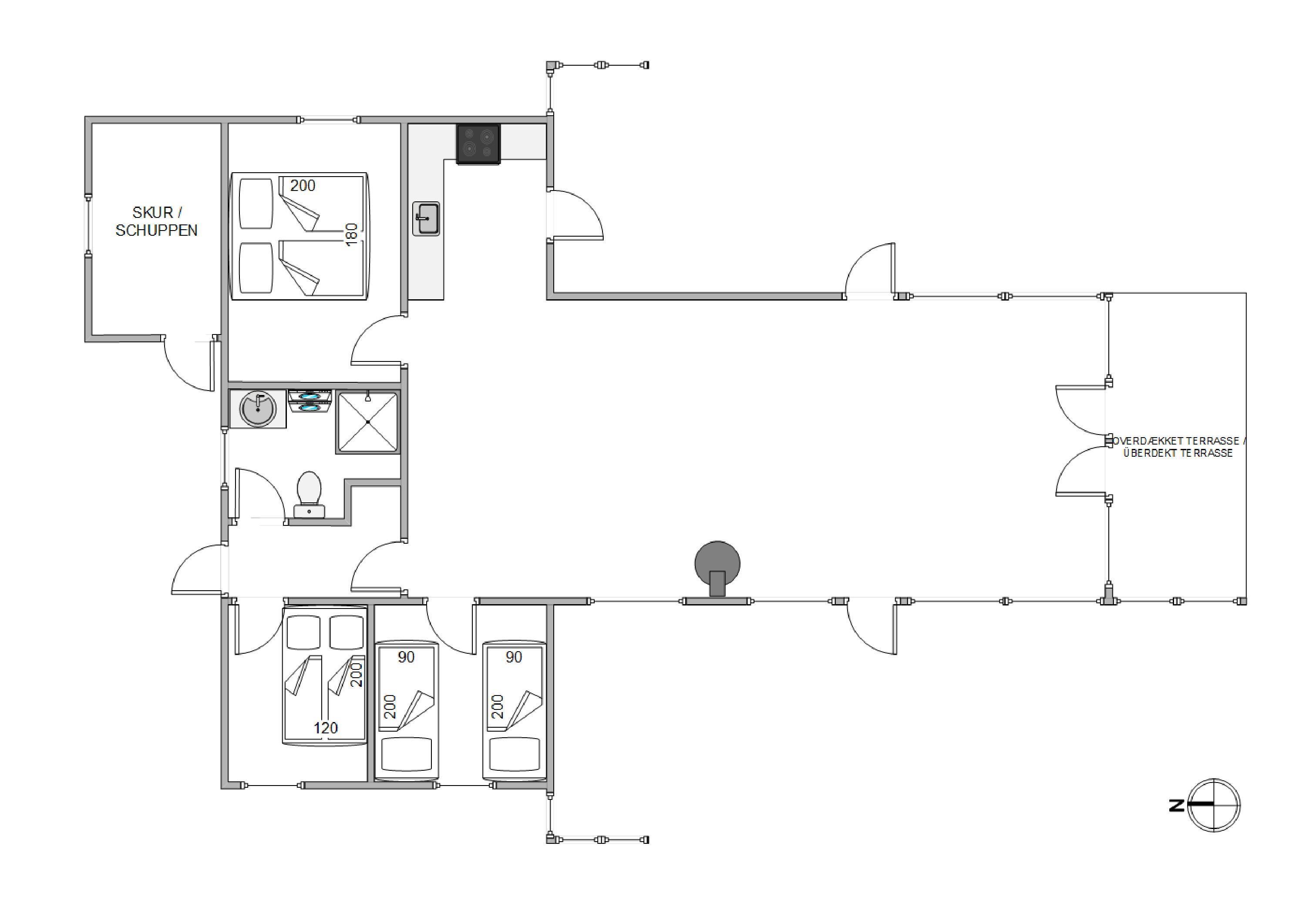 Your holiday begins the moment you step into this home, where you'll instantly feel at ease. The 90-square-metre space comprises an open-plan kitchen, living and dining area, three bedrooms and one bathroom. All rooms are bright and welcoming, with the living and dining area particularly filled with light thanks to floor-to-ceiling windows. Cooking becomes a pleasure in the well-equipped kitchen, and the open-plan design keeps you connected to family life throughout.