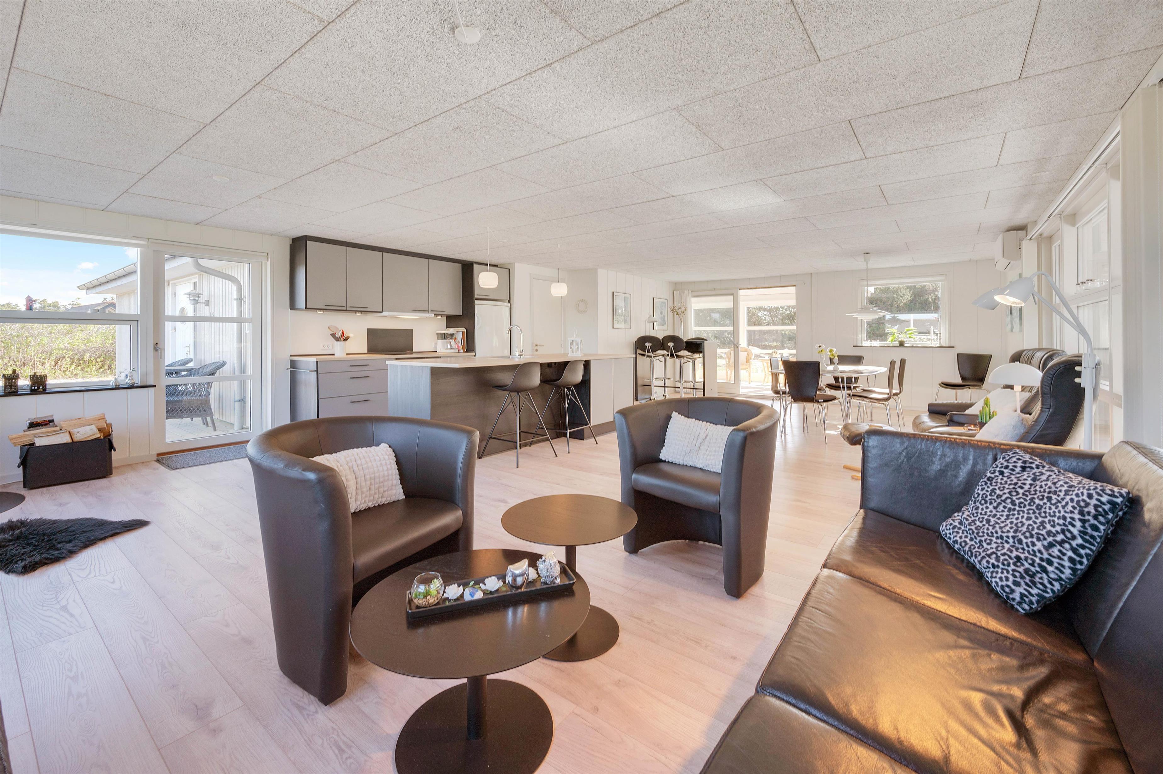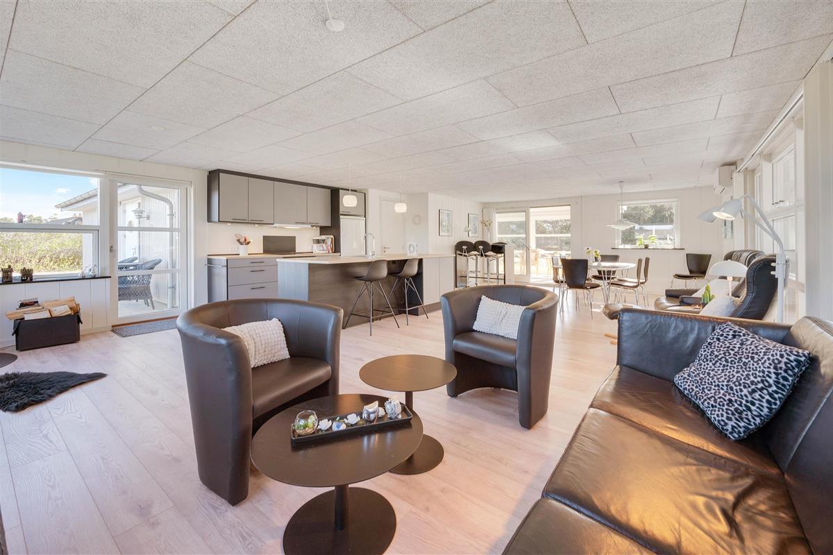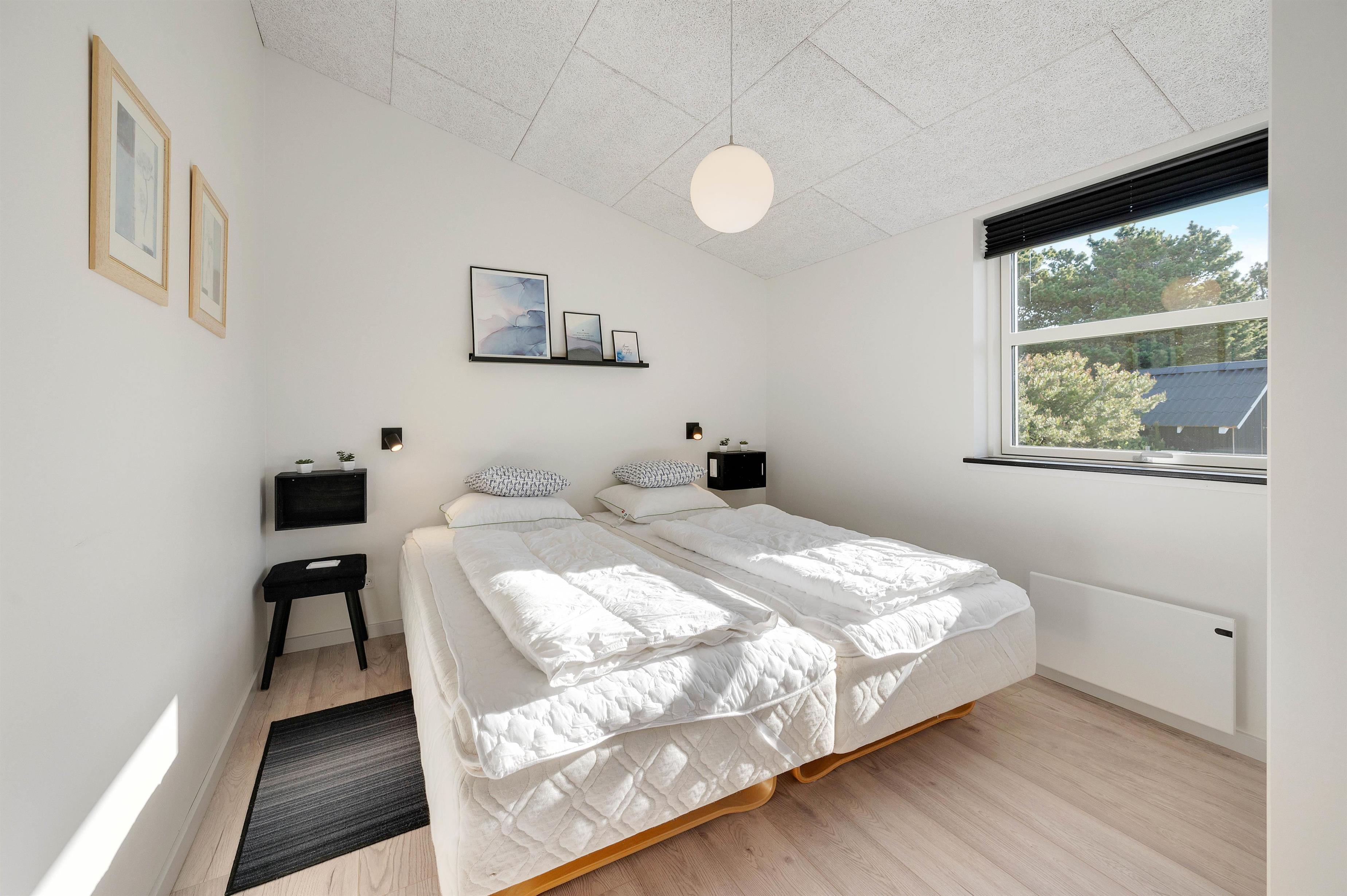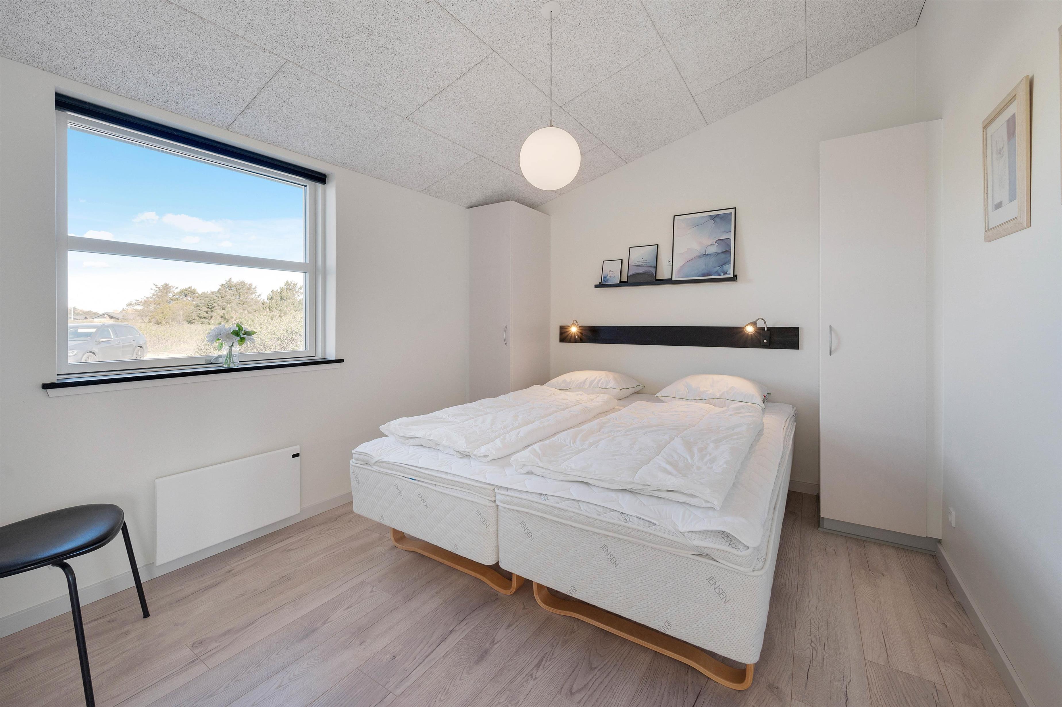 This energy-efficient holiday home in Søndervig is bright and inviting. The modern furnishings create a perfect space for spending quality time together. The holiday home features 3 light-filled bedrooms - 2 with double beds and one with 2 single beds. The bathroom is equipped with underfloor heating, ensuring comfortably warm feet from the morning onwards. An energy-efficient air-to-air heat pump maintains a pleasant and consistent temperature throughout the living area.