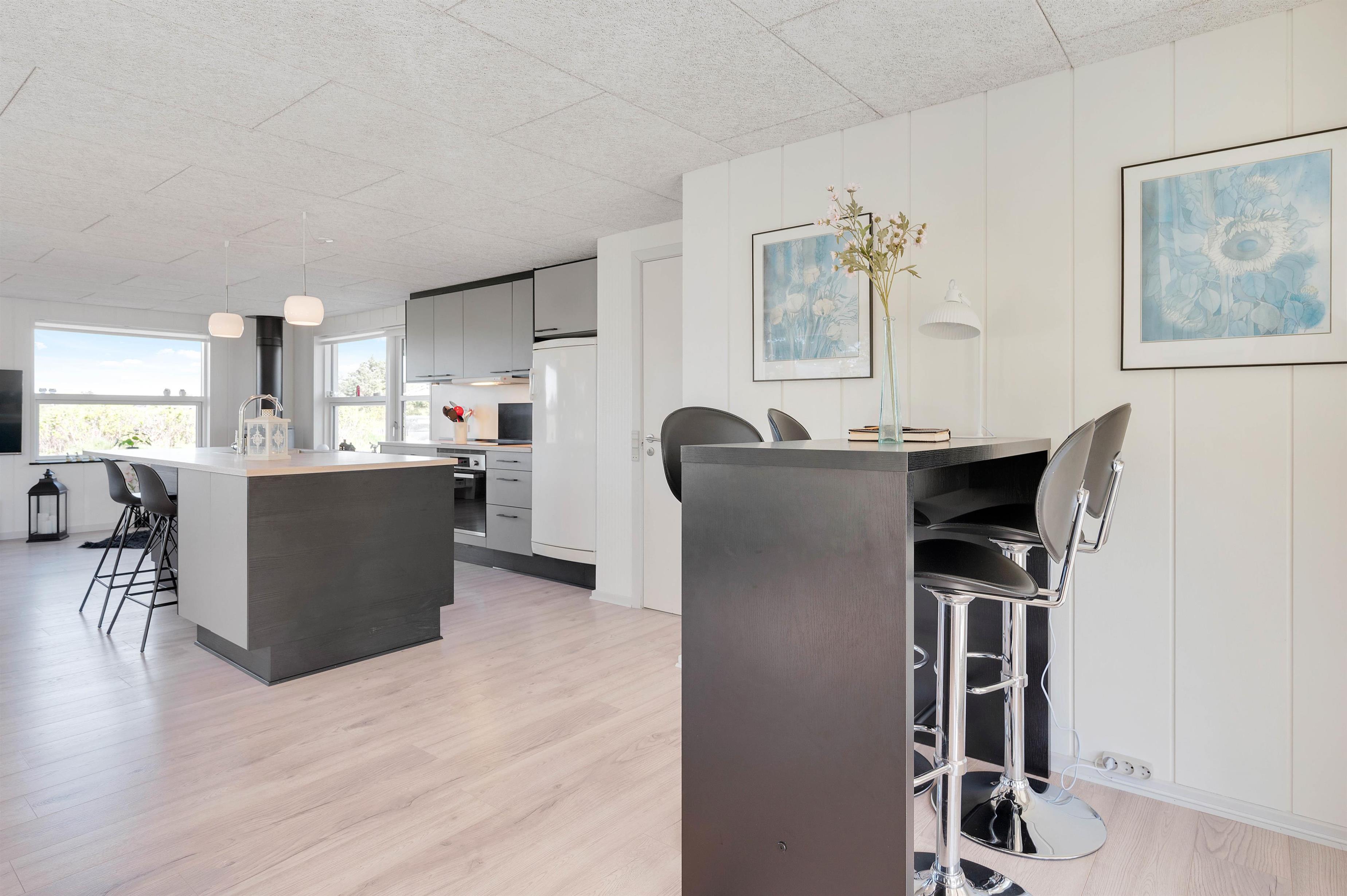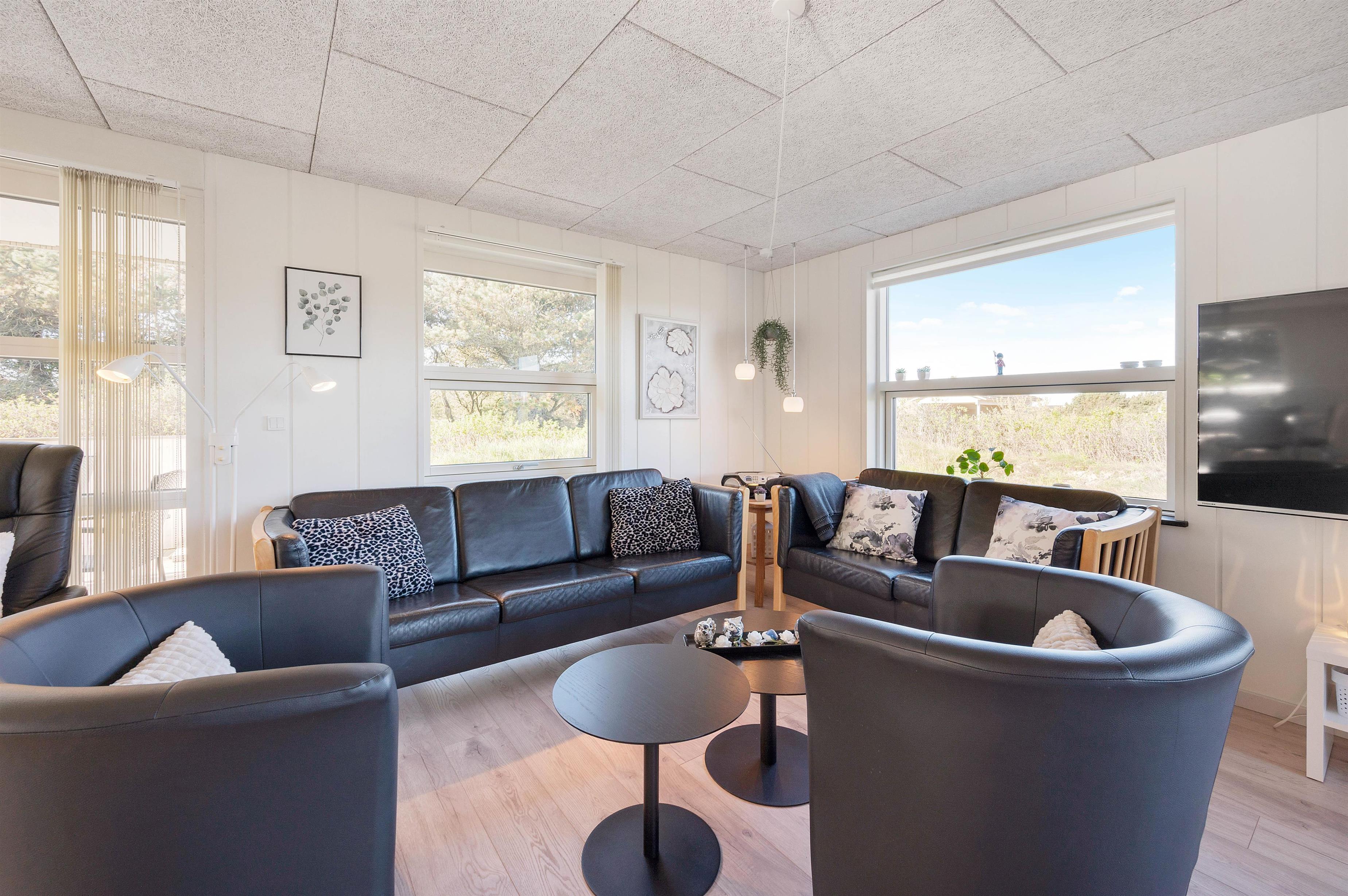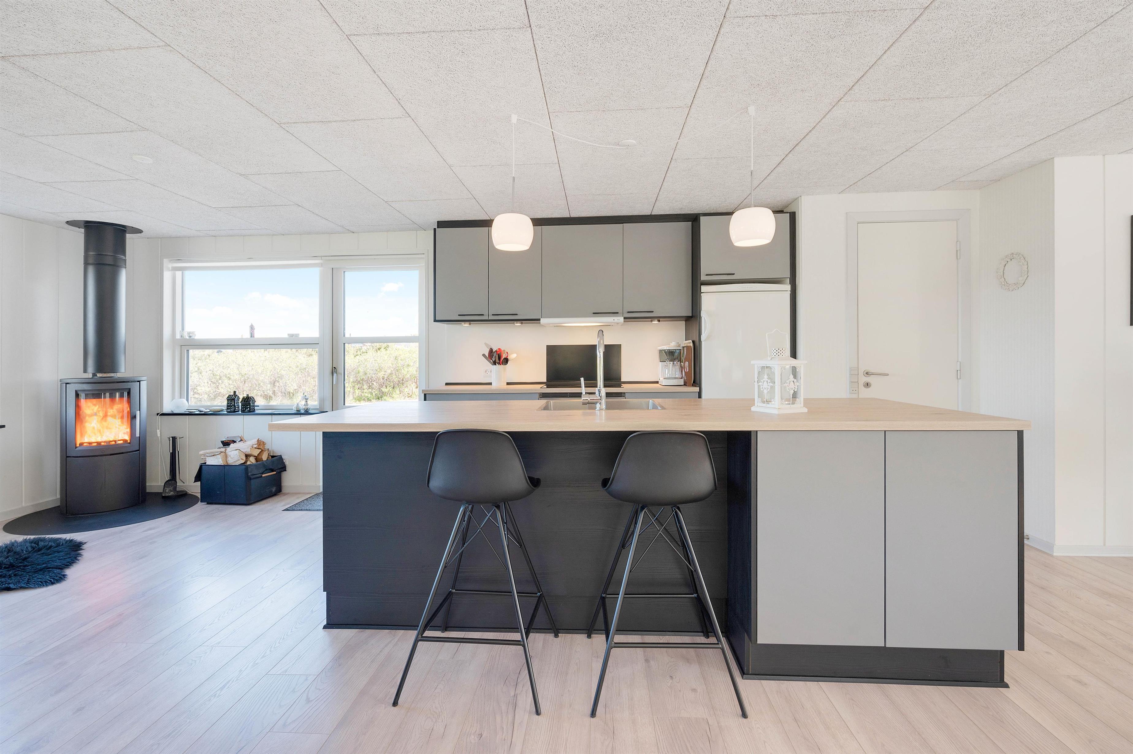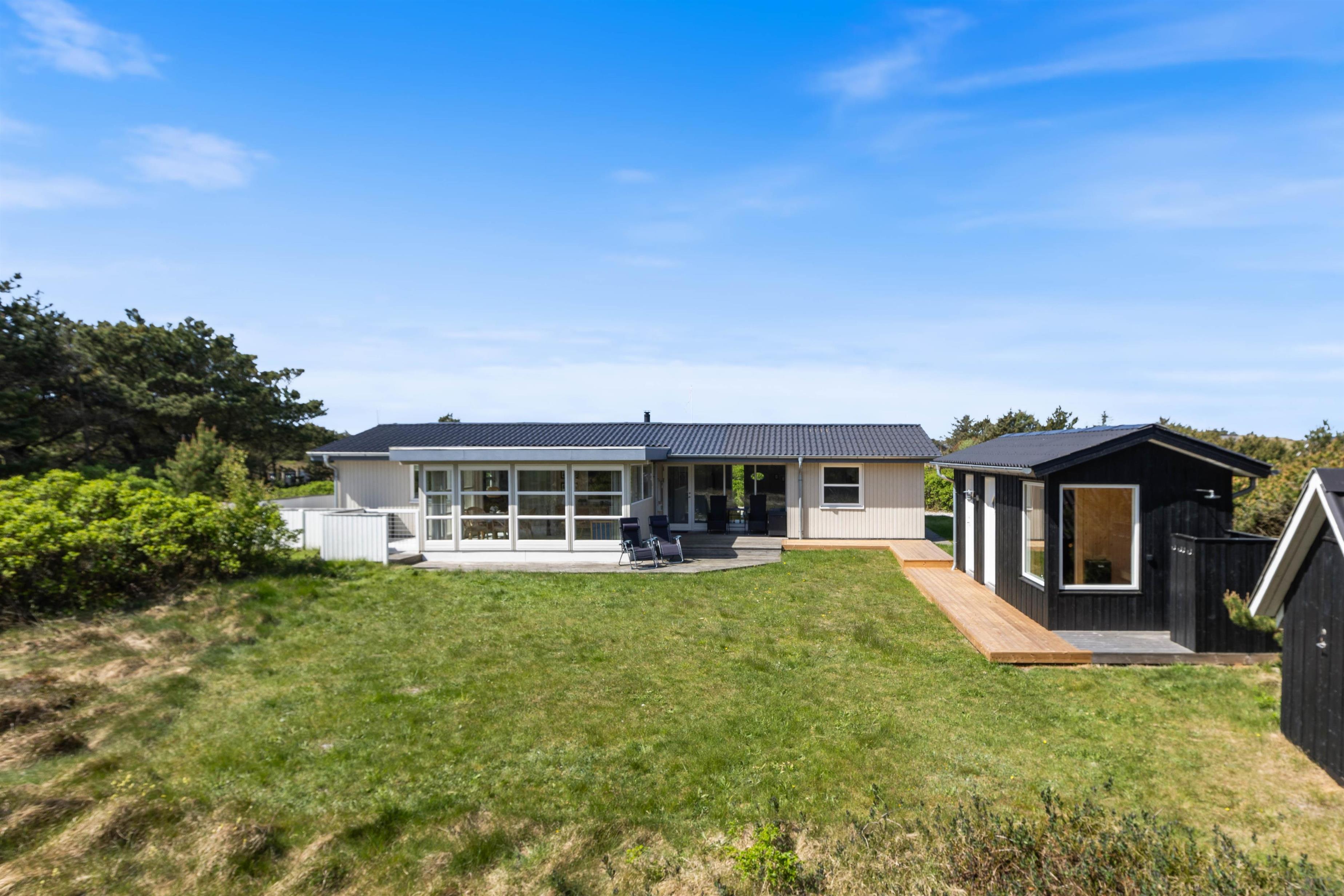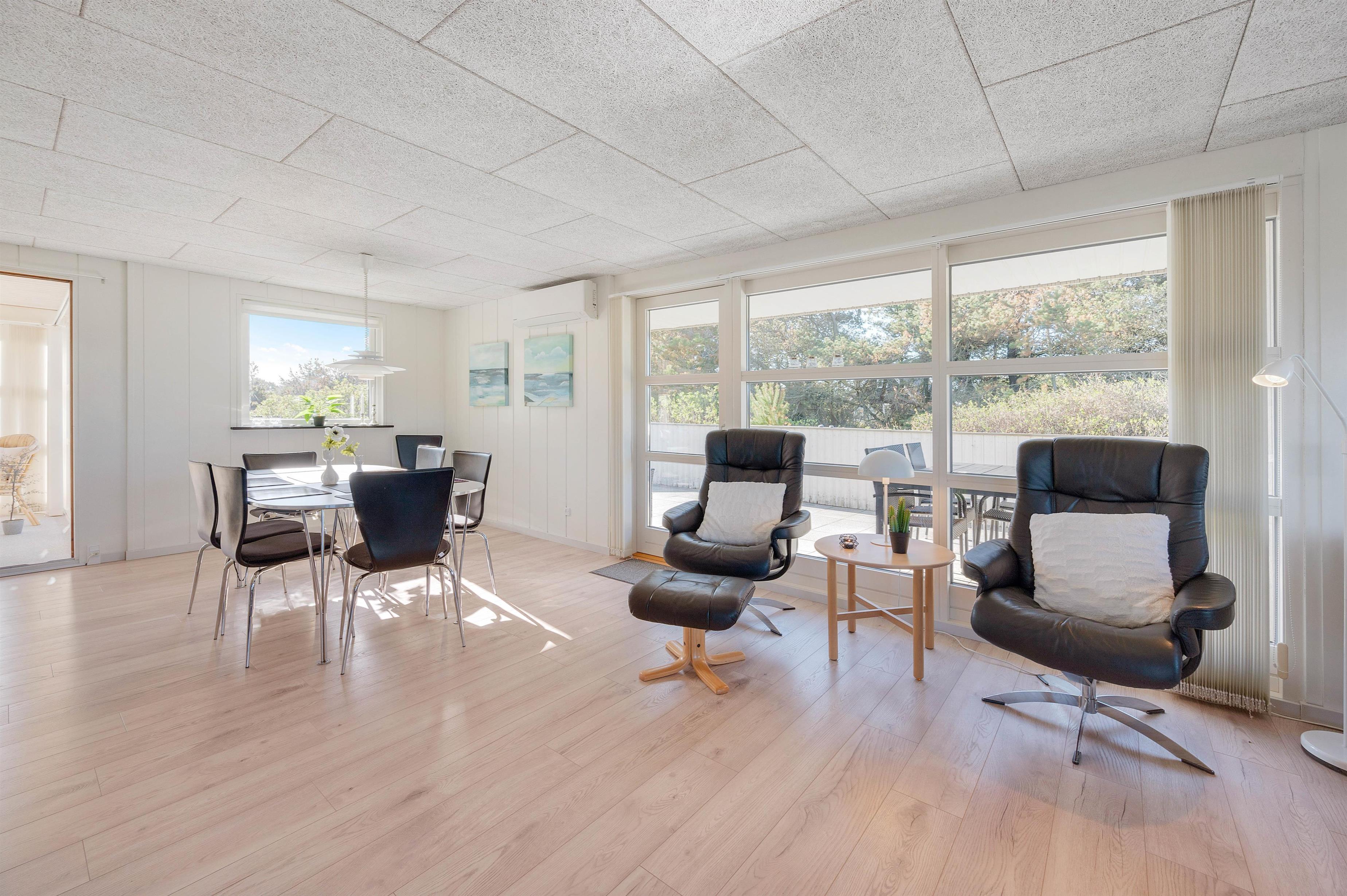 This energy-efficient holiday home in Søndervig is bright and inviting. The modern furnishings create a perfect space for spending quality time together. The holiday home features 3 light-filled bedrooms - 2 with double beds and one with 2 single beds. The bathroom is equipped with underfloor heating, ensuring comfortably warm feet from the morning onwards. An energy-efficient air-to-air heat pump maintains a pleasant and consistent temperature throughout the living area.
