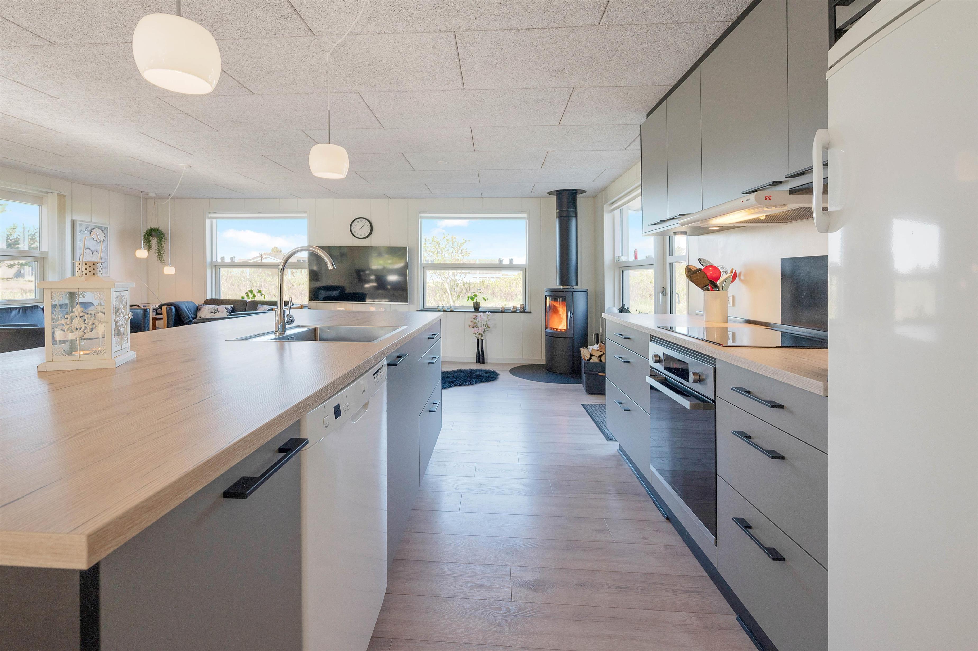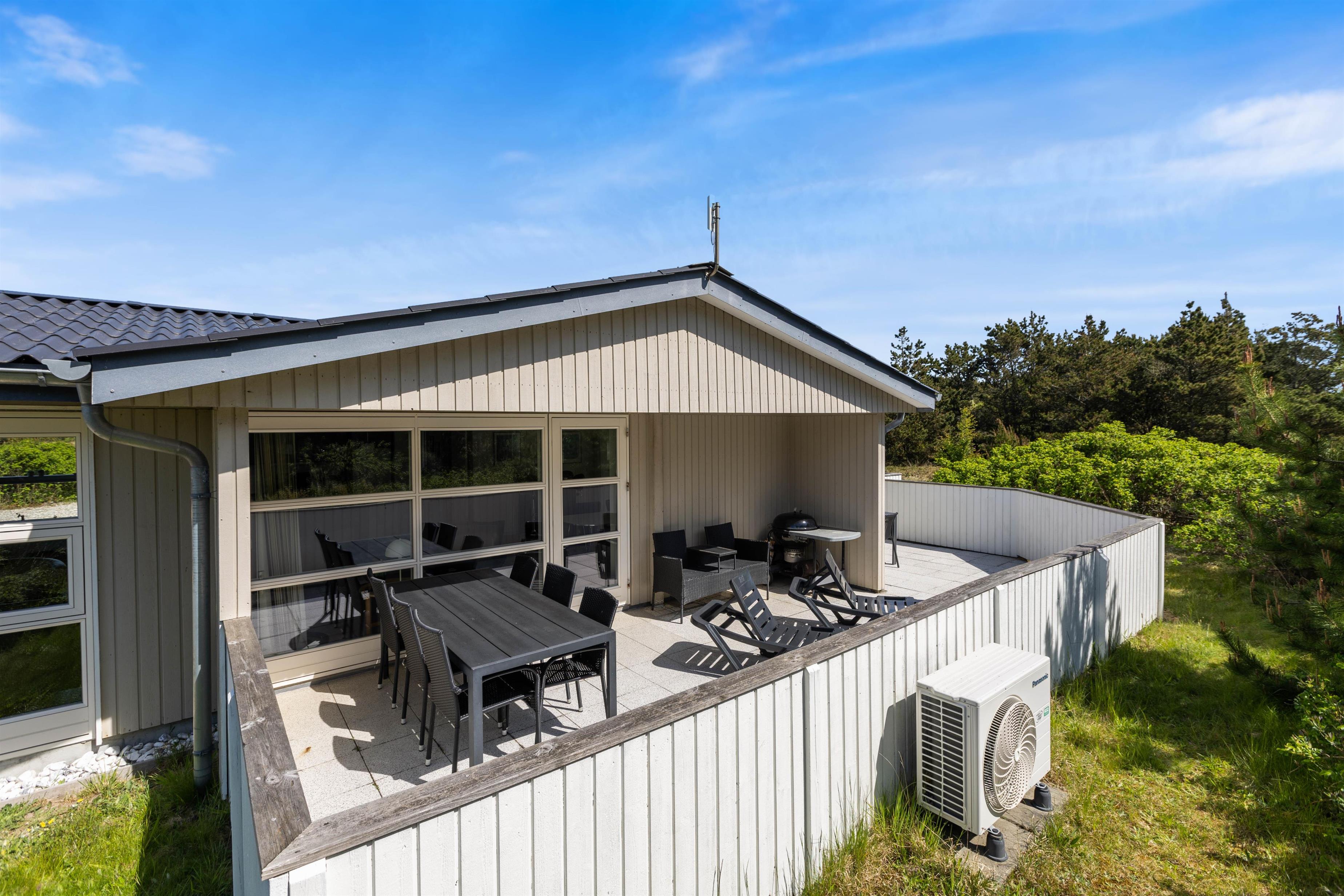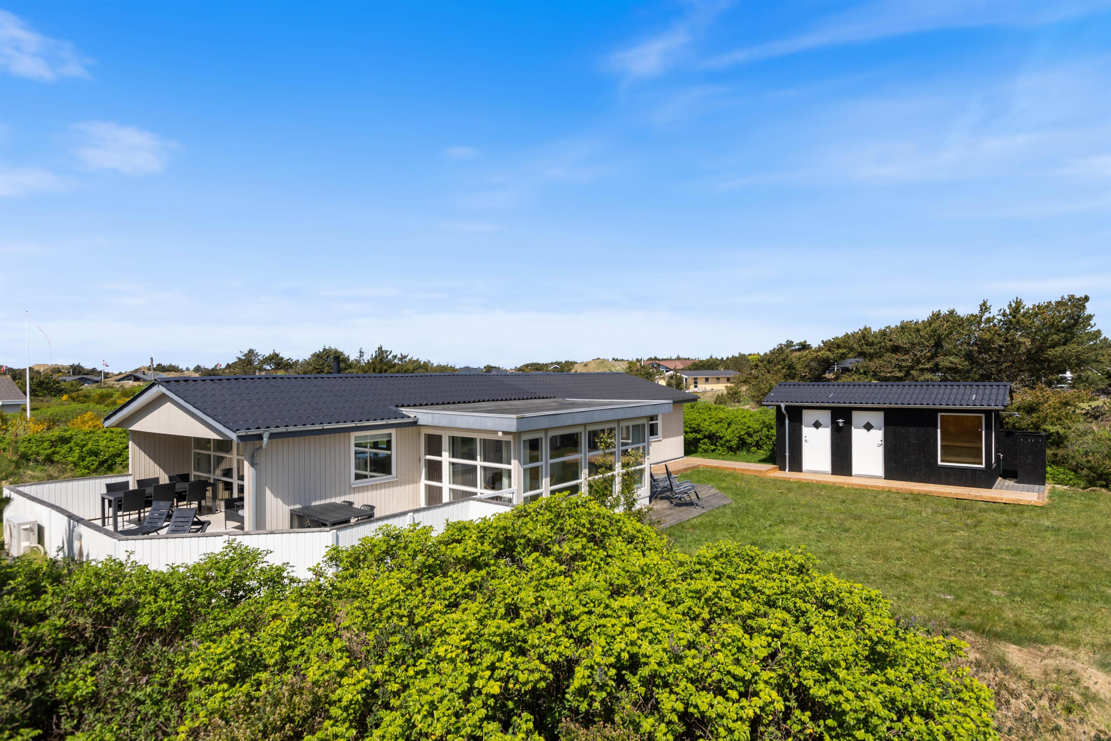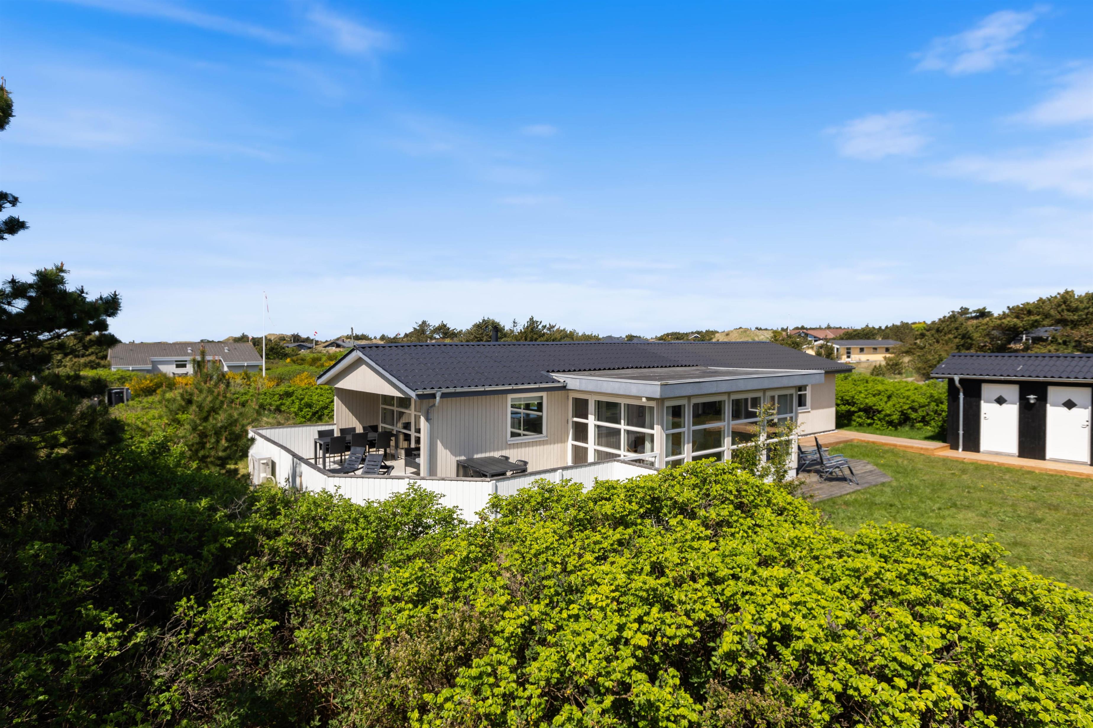 This energy-efficient holiday home in Søndervig is bright and inviting. The modern furnishings create a perfect space for spending quality time together. The holiday home features 3 light-filled bedrooms - 2 with double beds and one with 2 single beds. The bathroom is equipped with underfloor heating, ensuring comfortably warm feet from the morning onwards. An energy-efficient air-to-air heat pump maintains a pleasant and consistent temperature throughout the living area.