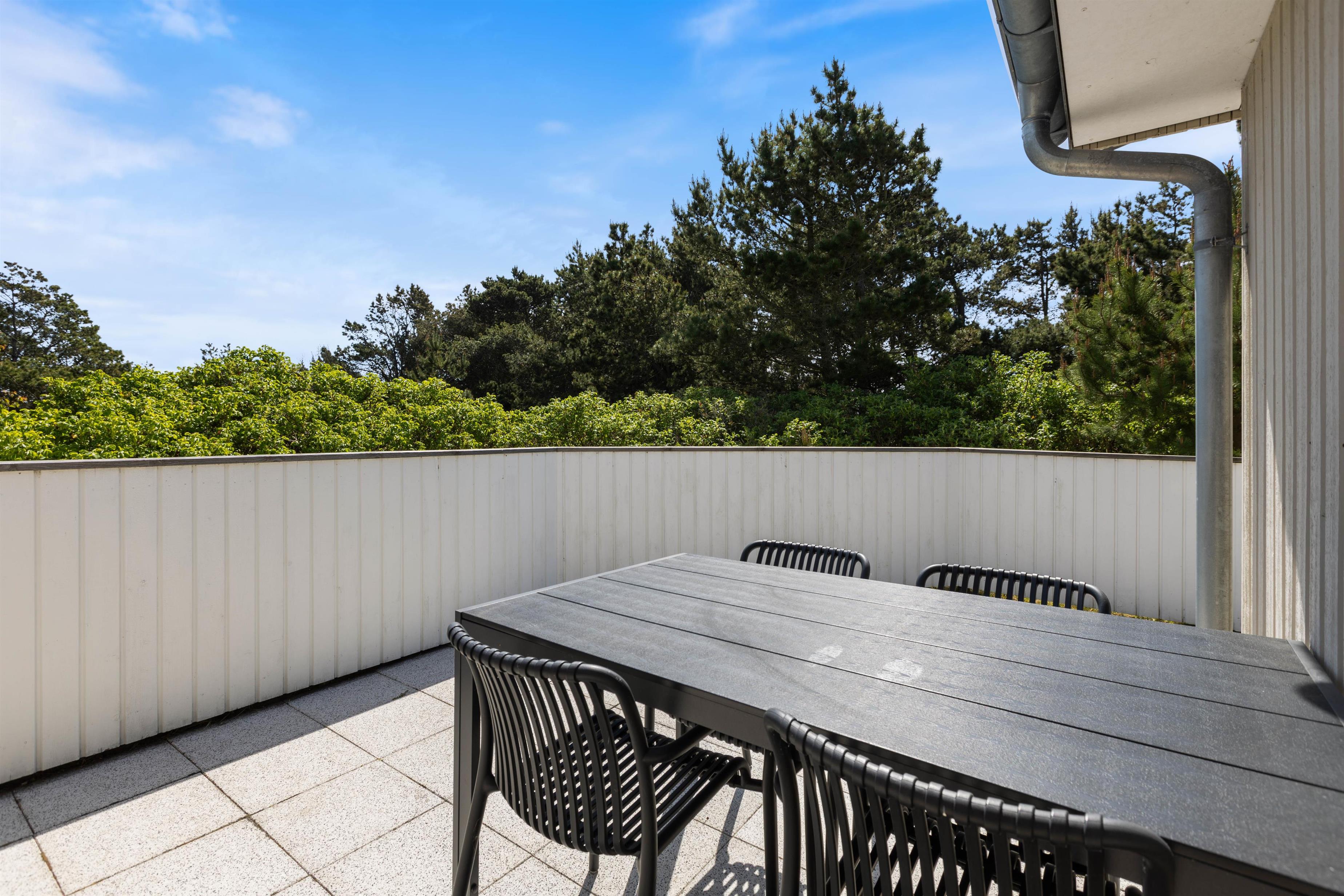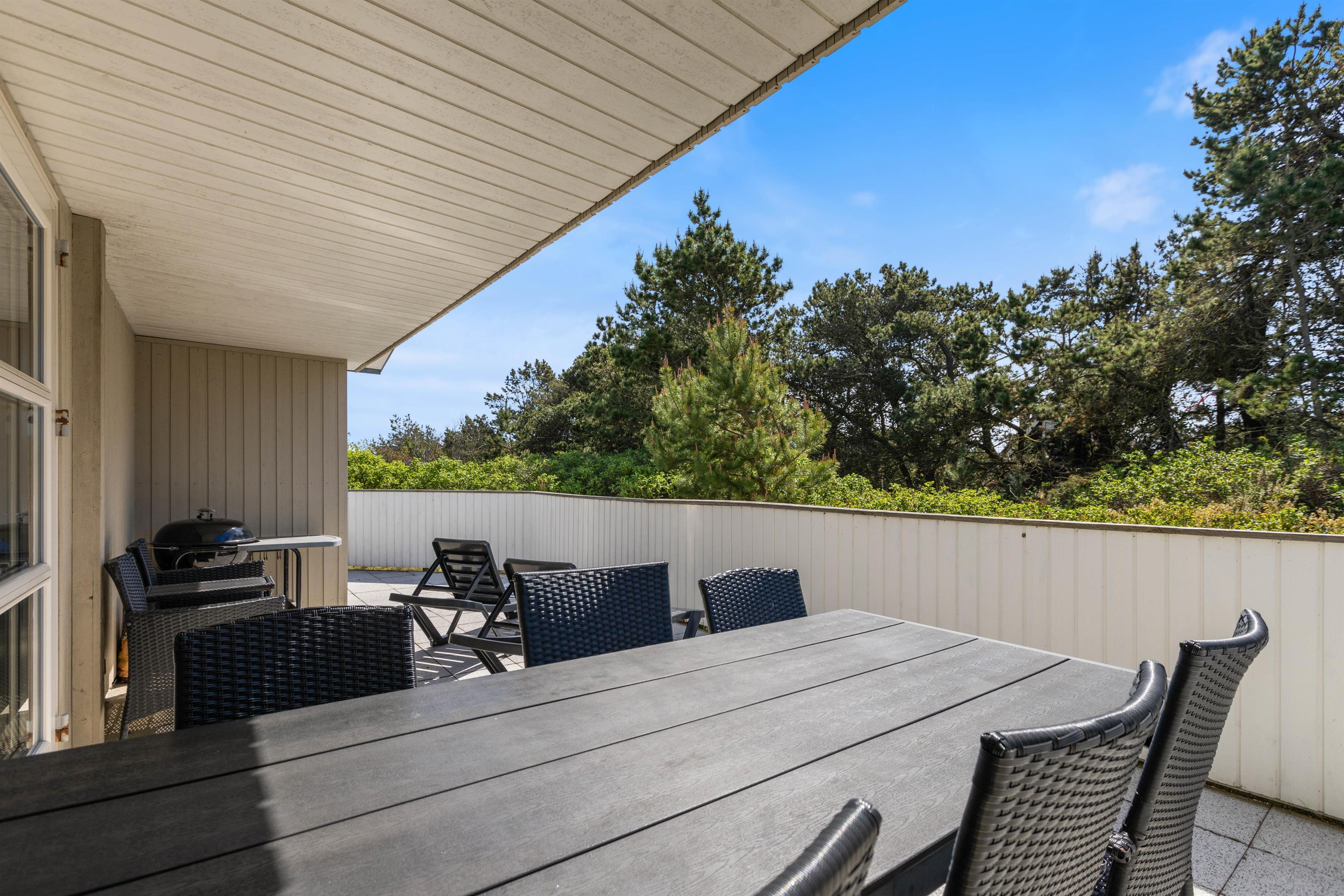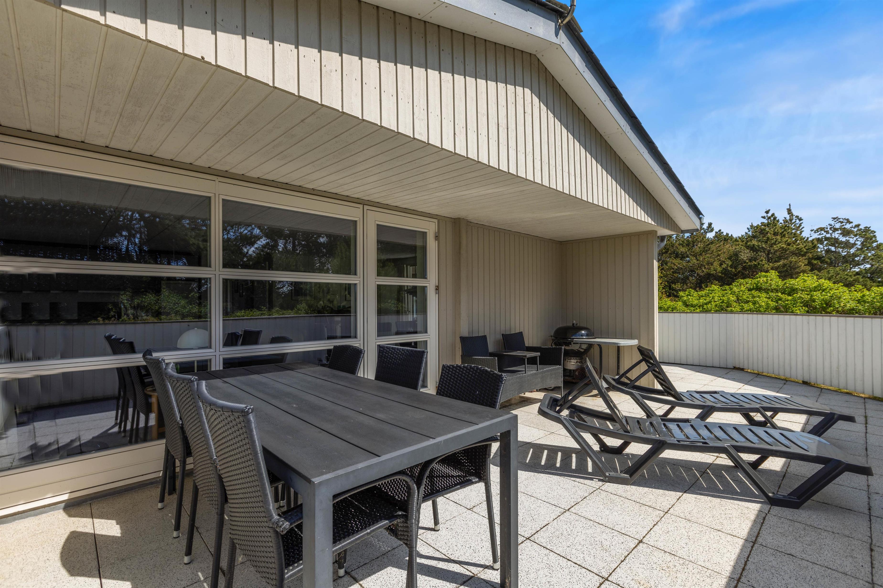 The holiday home sits on an attractive corner plot, screened from other properties. The living room opens directly onto a large, partially covered terrace facing south/east. Garden furniture and a barbecue are provided. After a long beach walk, you can unwind in the outdoor sauna. The outdoor shower is available from April to November (closed during winter months to prevent frost damage).