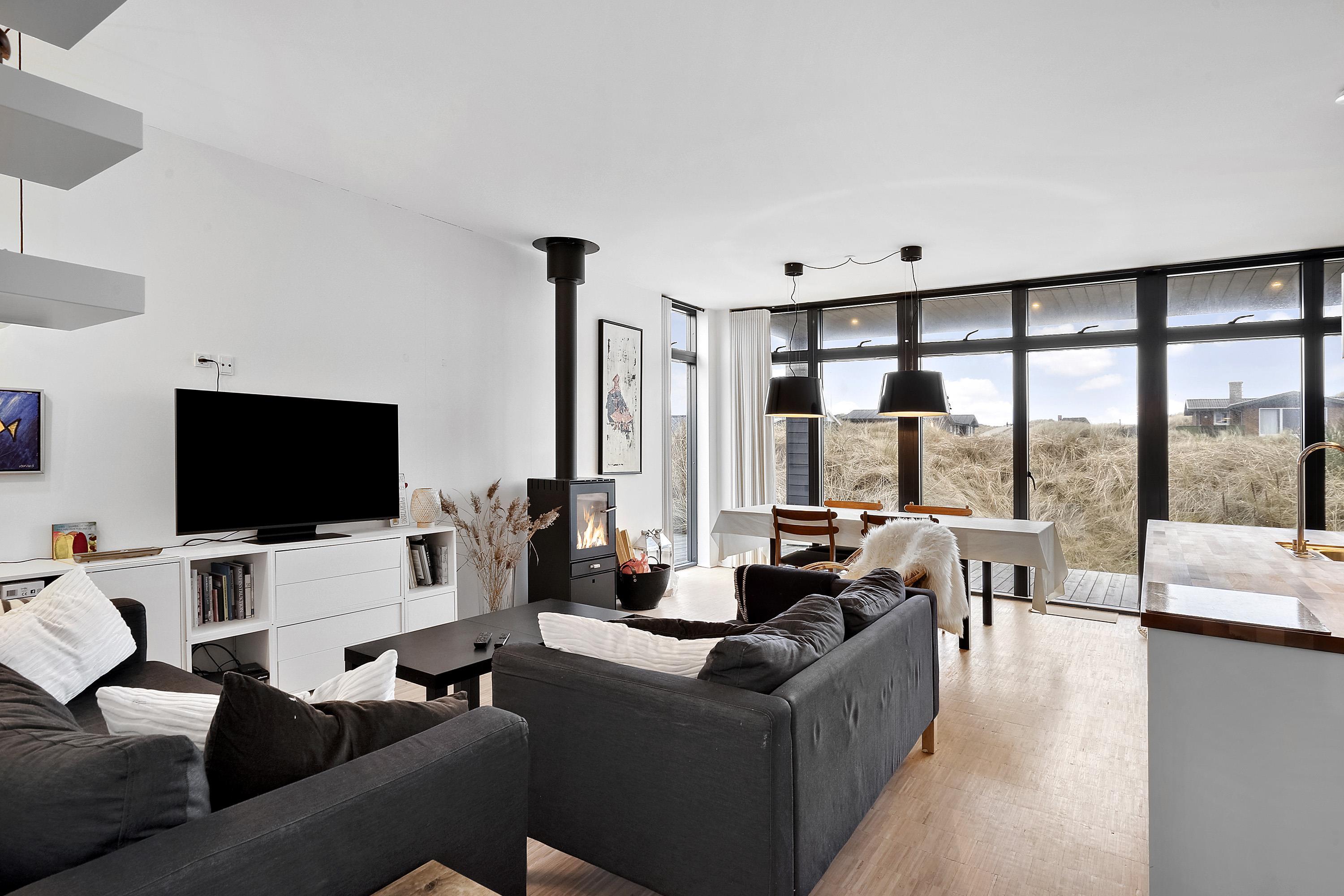 At Sand Holms Vej 64, you’ll find a welcoming holiday home, only 300 meters from the North Sea and close to the beautiful dunes. This is a perfect base for your vacation, where you can easily walk to the beach, feel the fresh sea breeze, and return to warmth, comfort, and plenty of space. The holiday home is 111 m² and accommodates 6 people, making it ideal for a family or a group of friends, while still giving you space for both shared time and privacy. Your dog is also welcome, if you have one.