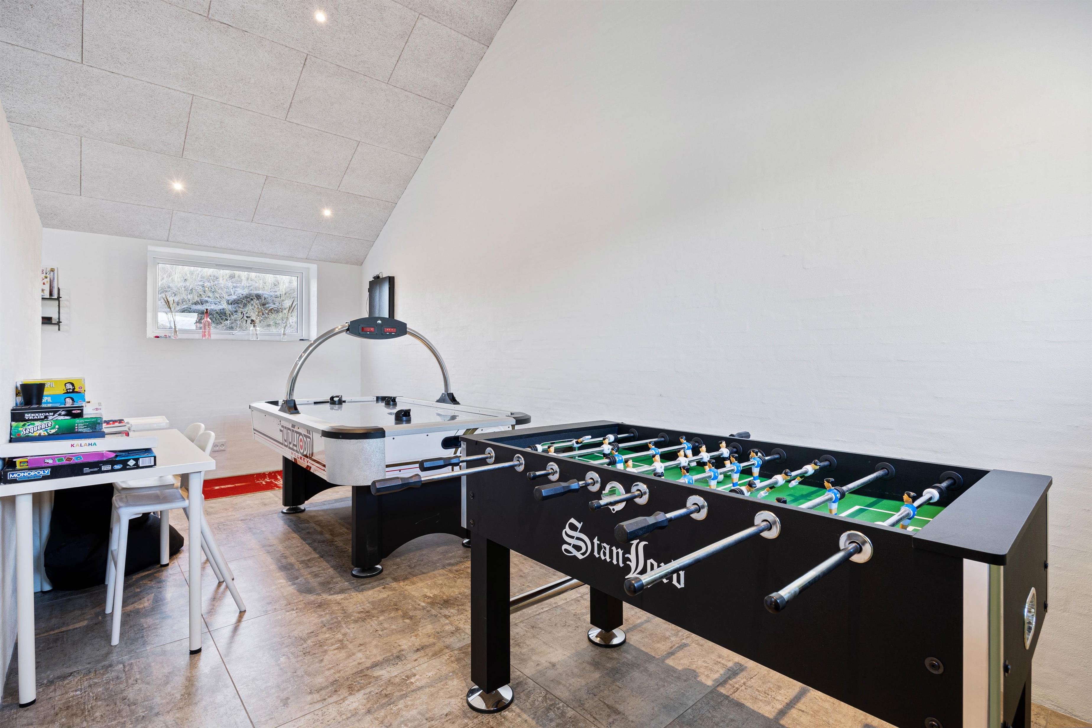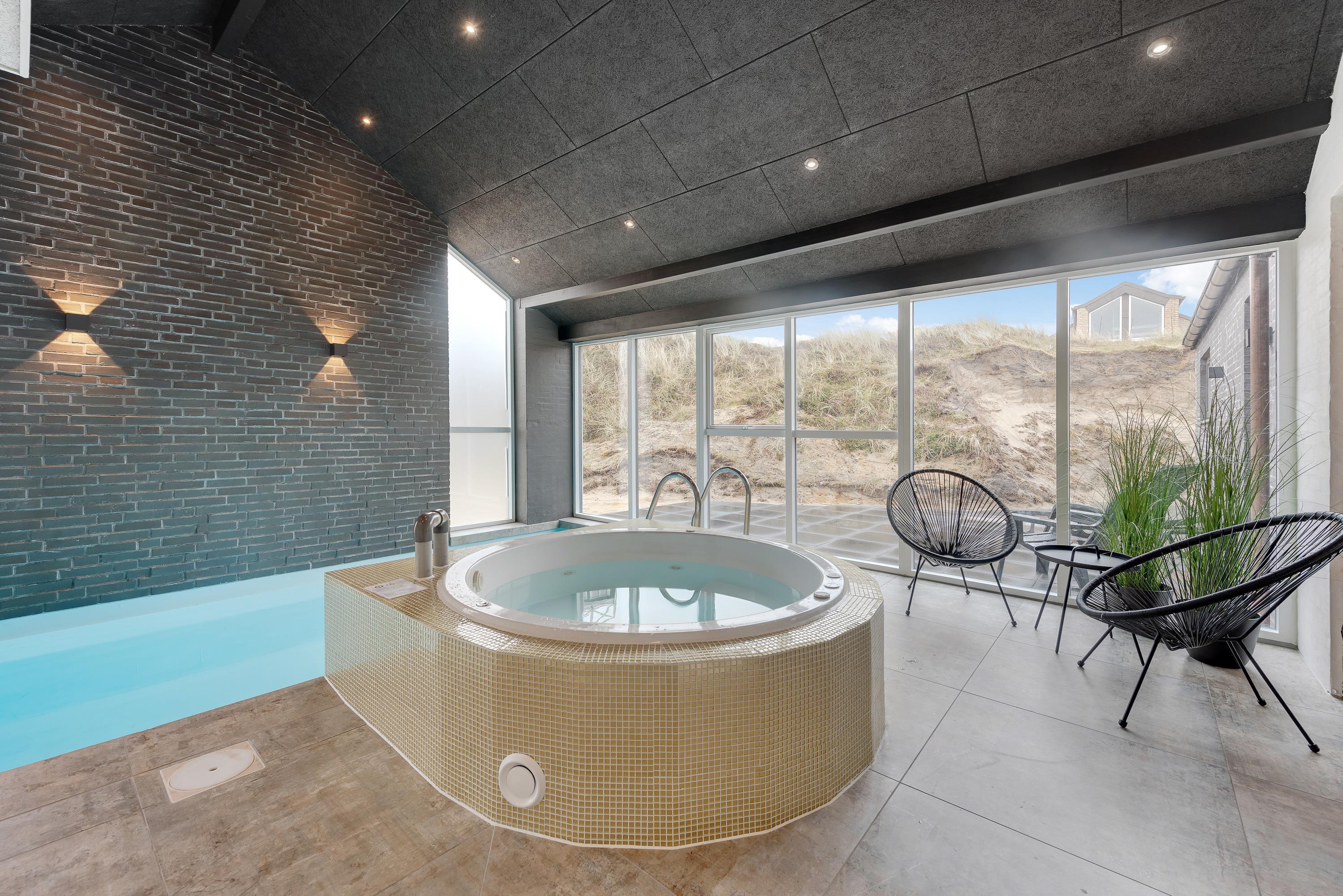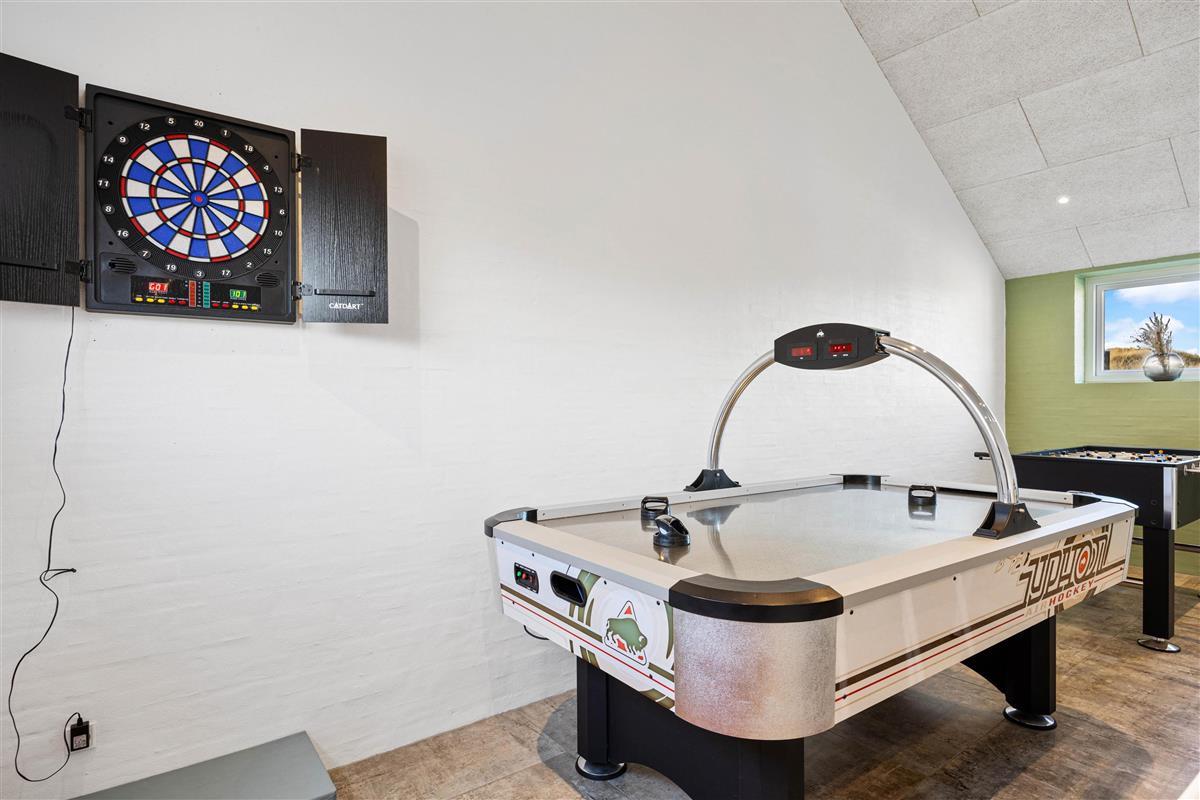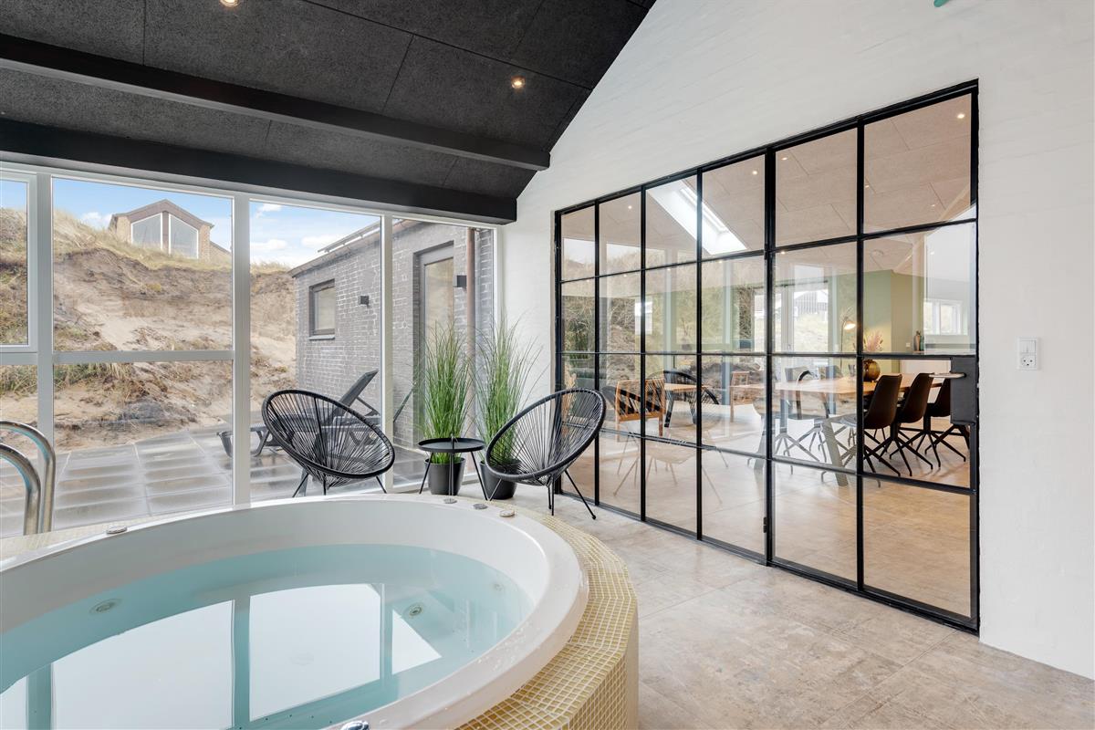 Located just 350 metres from Søndervig's beautiful fine sandy beach, this attractive pool house sits in a dune hollow and was renovated in 2020. It features a sauna and fixed whirlpool. Notable features include not only its excellent location near the beach but also its particularly family-friendly amenities, including darts, table football, plus a swing, sandbox, and playhouse for younger children. An electric car charging point is available.