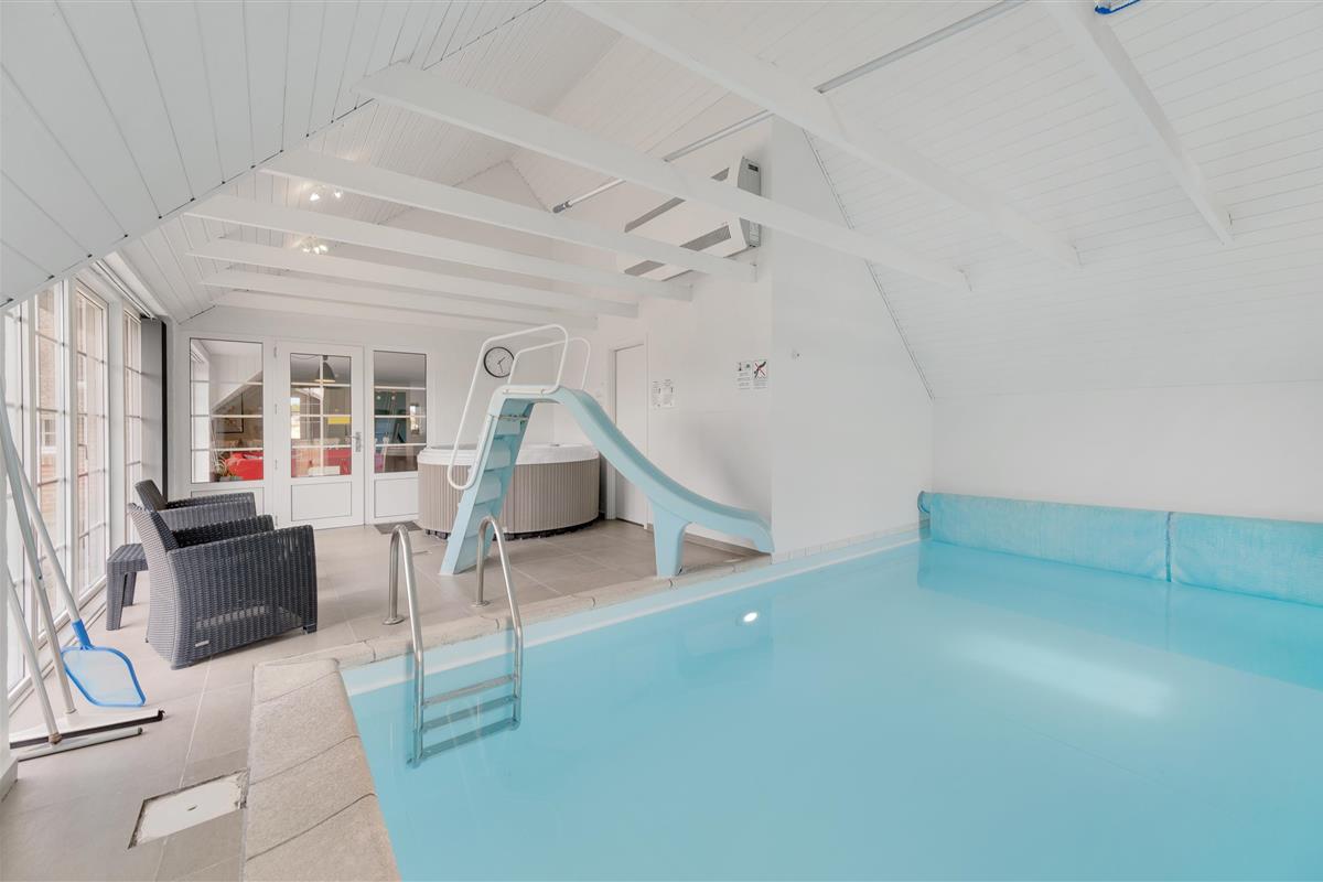 The pool area is exceptionally well-equipped with everything you might need. There's a 17-square-metre pool with slide, perfect for hours of fun for both children and adults. For those seeking complete relaxation, there's a sauna and hot tub available.