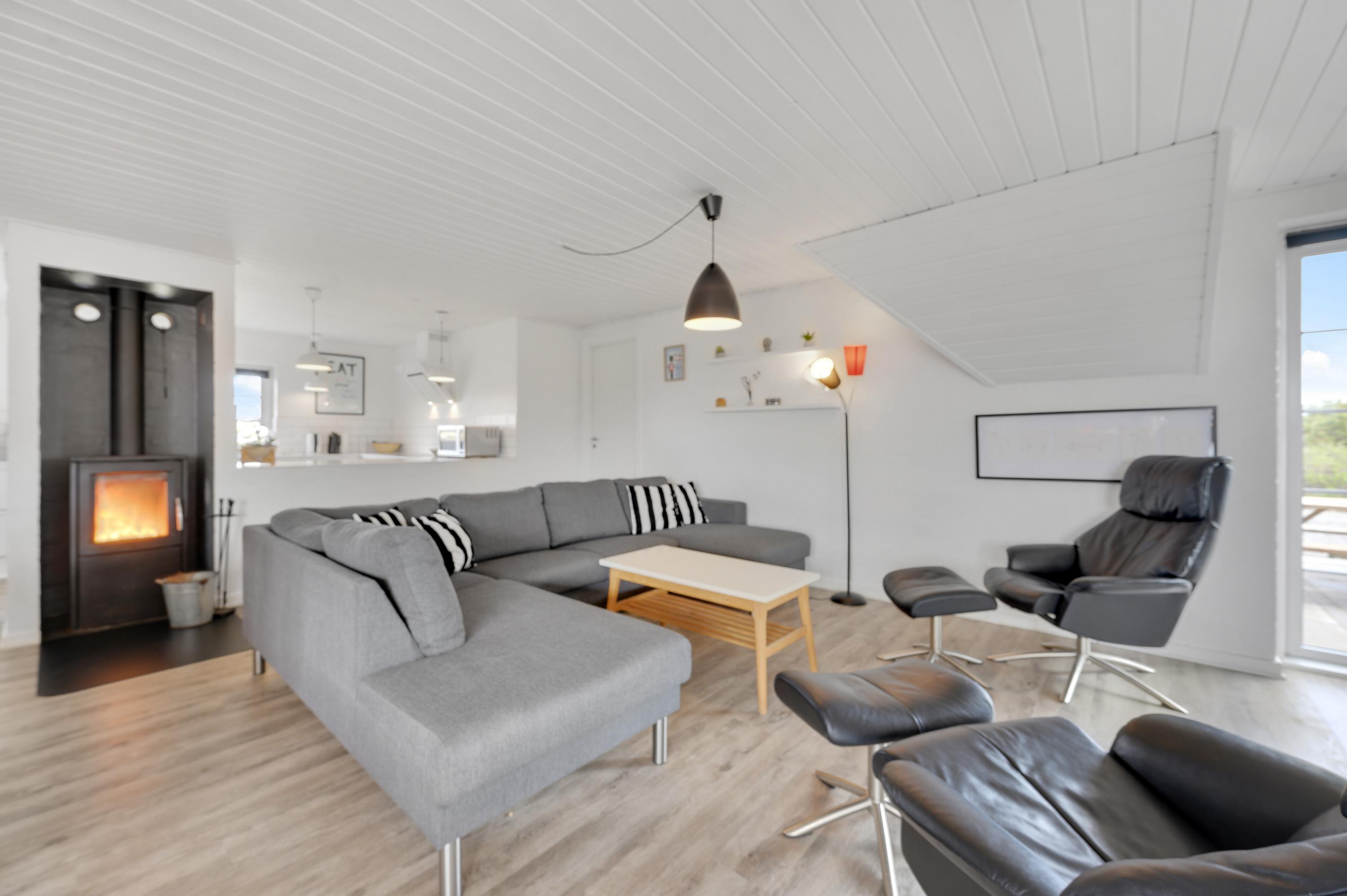 The heart of the holiday home is certainly the large open-plan living area, which combines the living room, dining room and kitchen. Everyone can find their own space here whilst enjoying each other's company and creating wonderful holiday memories. The holiday home features a modern wood-burning stove that creates a cosy atmosphere. Underfloor heating throughout the house provides additional warmth.