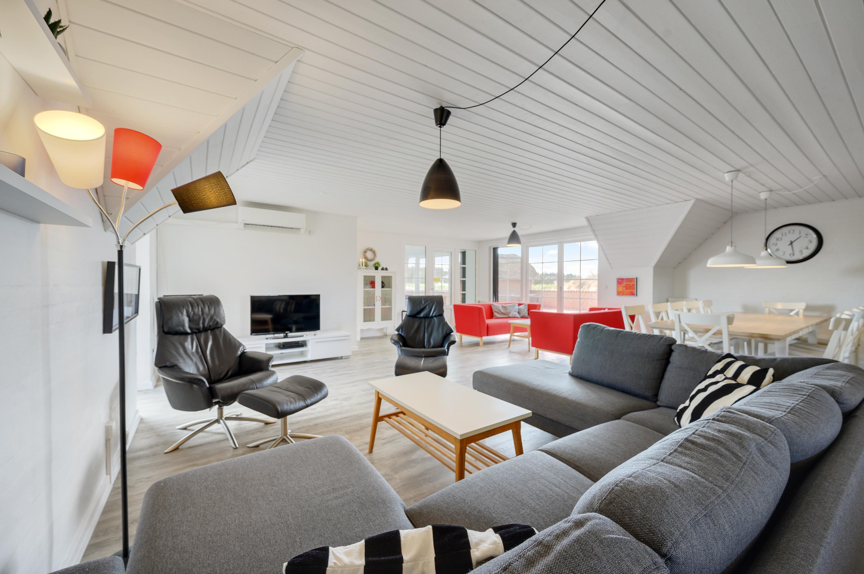 Spend quality time with family and friends - up to 14 people can be accommodated across 213 square metres. The holiday home offers plenty of space for everyone and is ideal for gathering all your loved ones. The well-planned layout allows for quiet moments when things get lively. There are six bedrooms and three bathrooms offering space and comfort for all guests, plus a large living room with a dining table where everyone can gather together.