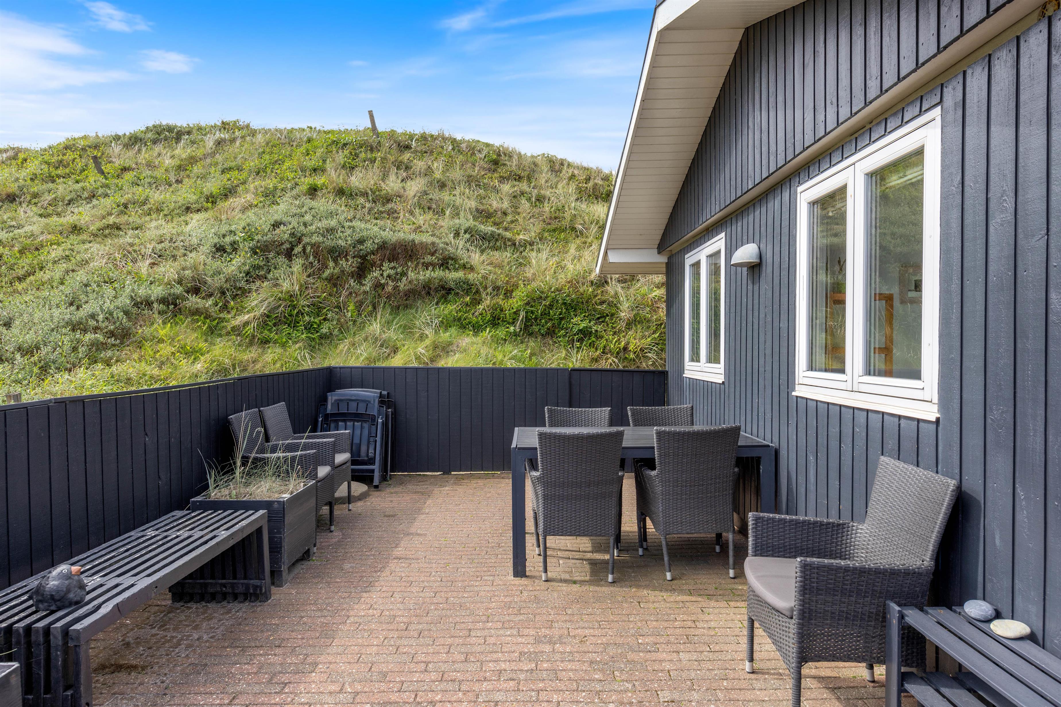 You can't get much closer to the beach. Sunbathe on the comfortable terrace while breathing in the sea air and enjoying complete relaxation. The 1,200-square-metre plot sits on the last dune, just 75 metres from the beach. The enclosed terrace ensures young guests cannot wander off on their own adventures.