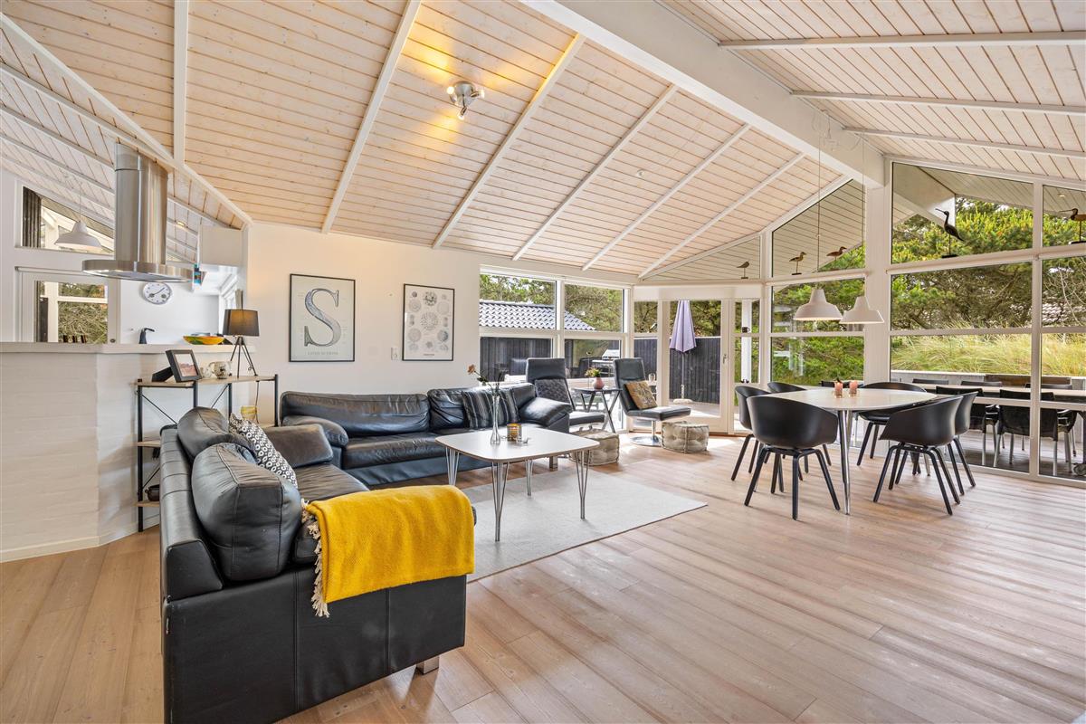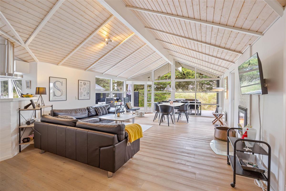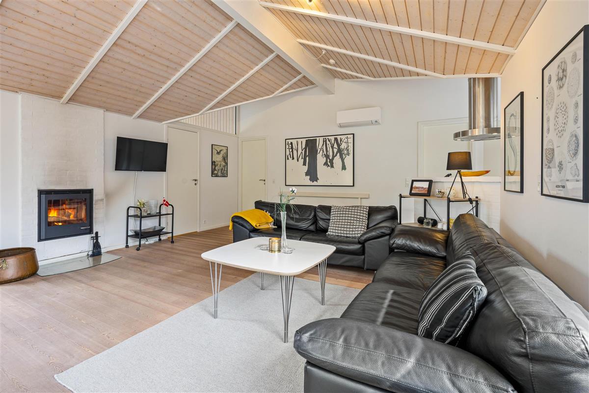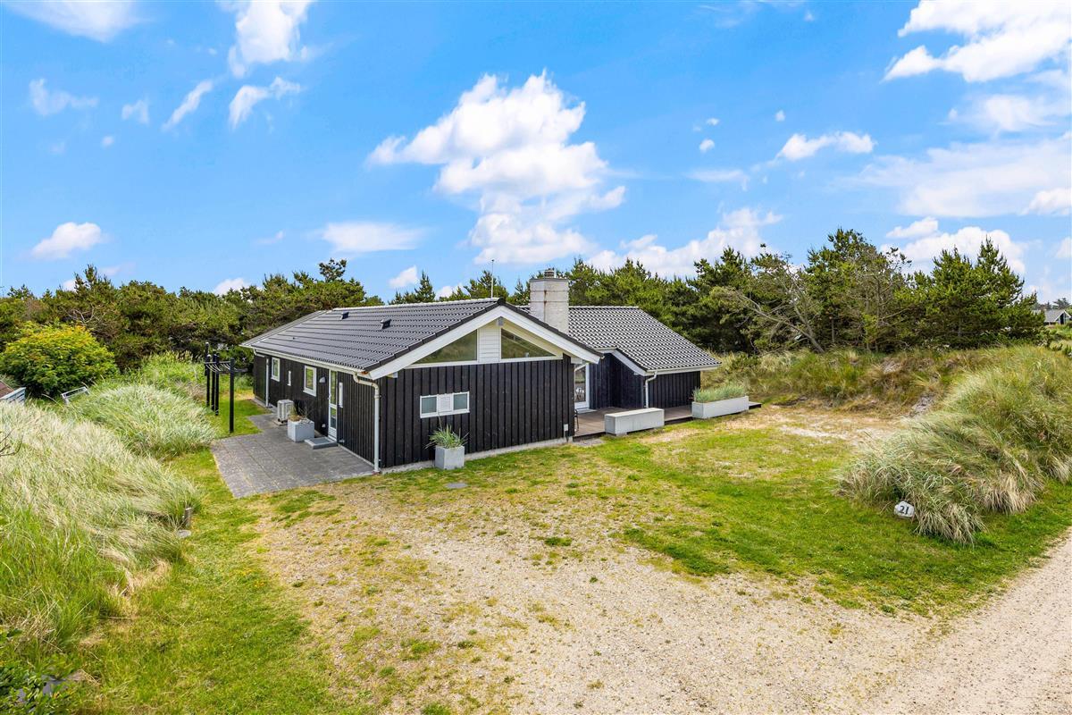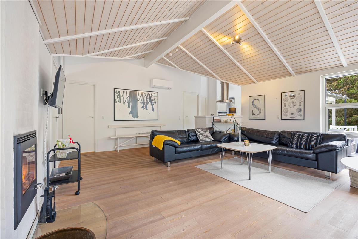 This spacious vacation home with 105 square meters welcomes you with open arms. At Hvidbjergvej 21 in Søndervig, you will find a classic vacation home with a high wood-paneled ceiling and light-colored walls and floors in the living area, which gives you a nice impression of space. Here you can enjoy a wonderful vacation as a family all year round. The three bedrooms are spacious and equipped with wardrobes, and there are also 2 beautiful bathrooms, the larger of which is equipped with a whirlpool. On cooler evenings, you can cozy up by the cozy wood-burning stove in the living room with a hot cocoa. The vacation home's energy-saving air-to-air heat pump ensures a pleasant temperature in the vacation home all year round.