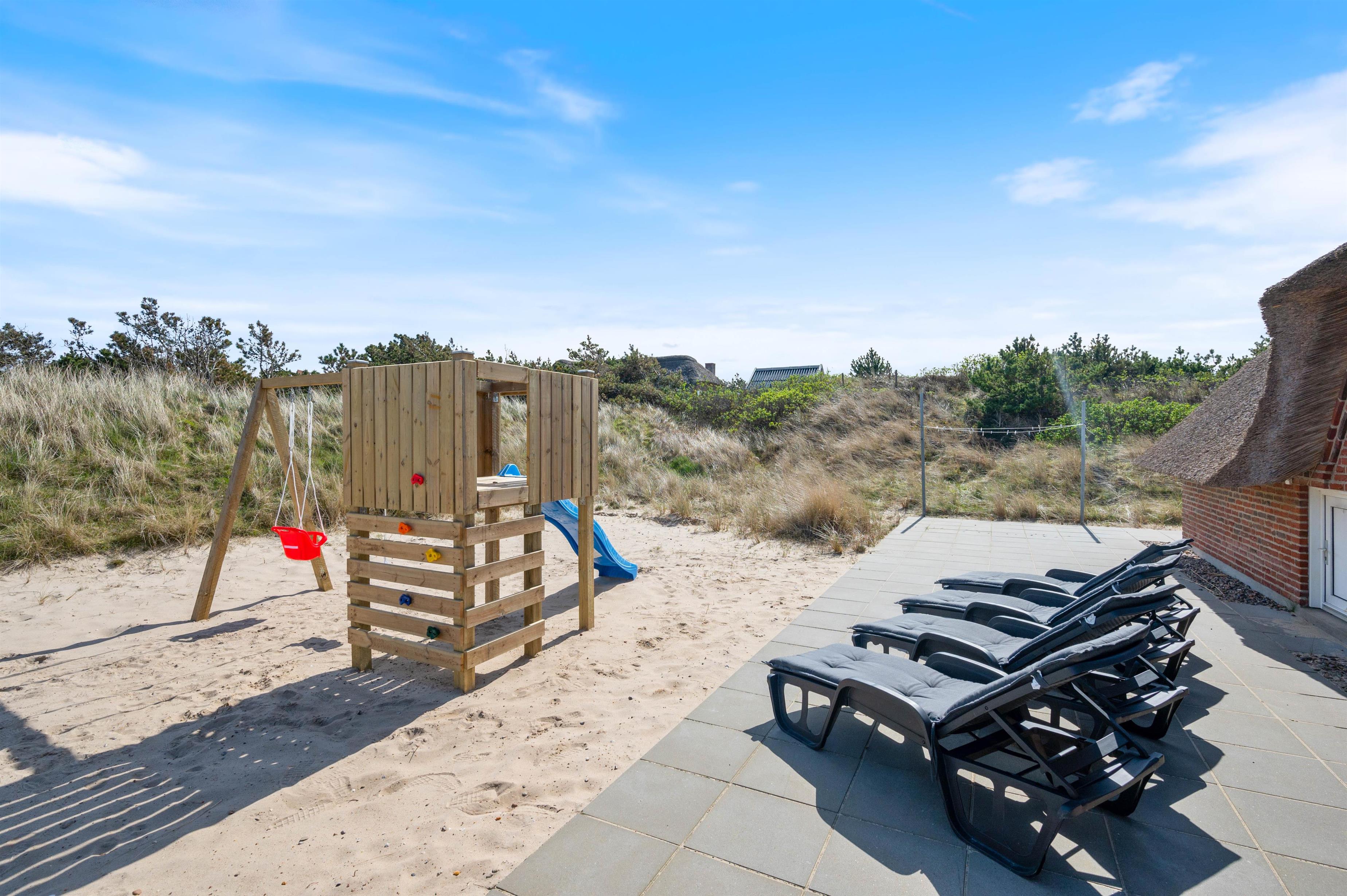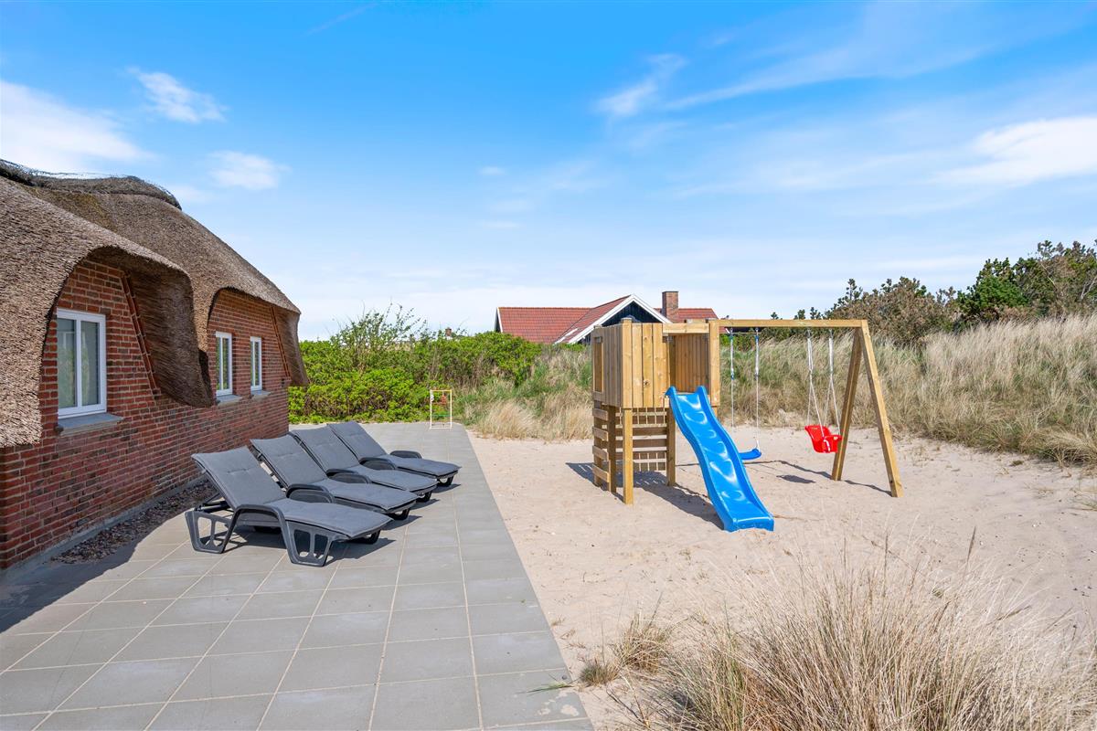 The holiday home offers a lovely outdoor area for enjoying warm, sunny days. There's a beautiful, sheltered terrace where you can relax on the garden furniture and sun loungers, while children can enjoy the play tower with swings, climbing frame and slide. In the evening, round off a perfect holiday day with a relaxing barbecue.