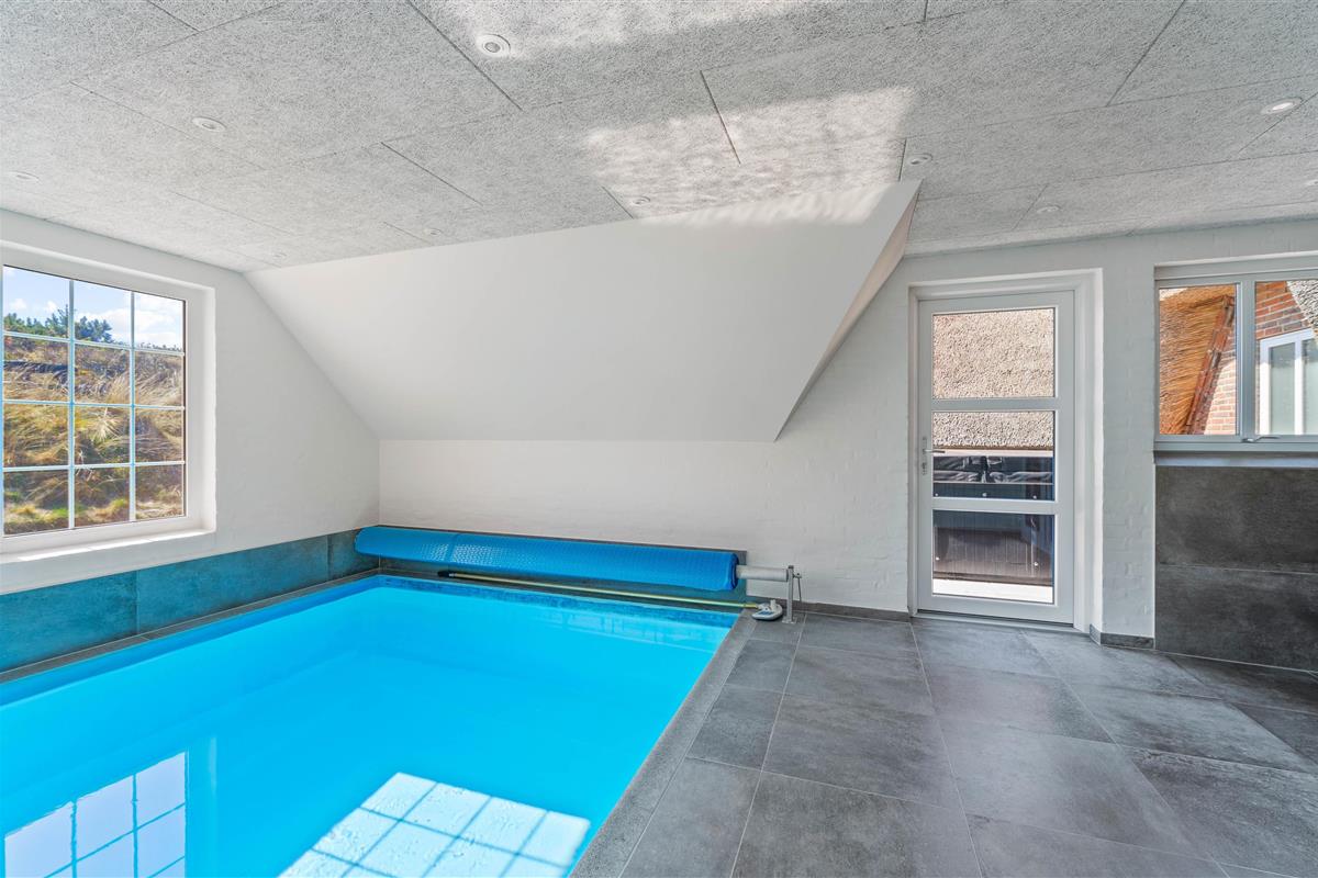 Located just a short distance from the beautiful North Sea, this pool house was renovated in 2022 and offers ample space for up to 8 people to enjoy a fantastic holiday in West Jutland. Both entertainment and relaxation await just 700 metres from the sea! The holiday home features a lovely swimming pool and a wonderful outdoor hot tub. If arriving by electric car, you can use the charging point at the holiday home. Thanks to the comprehensive renovation in 2022, including insulation and heating system modernisation, utility costs remain reasonable.