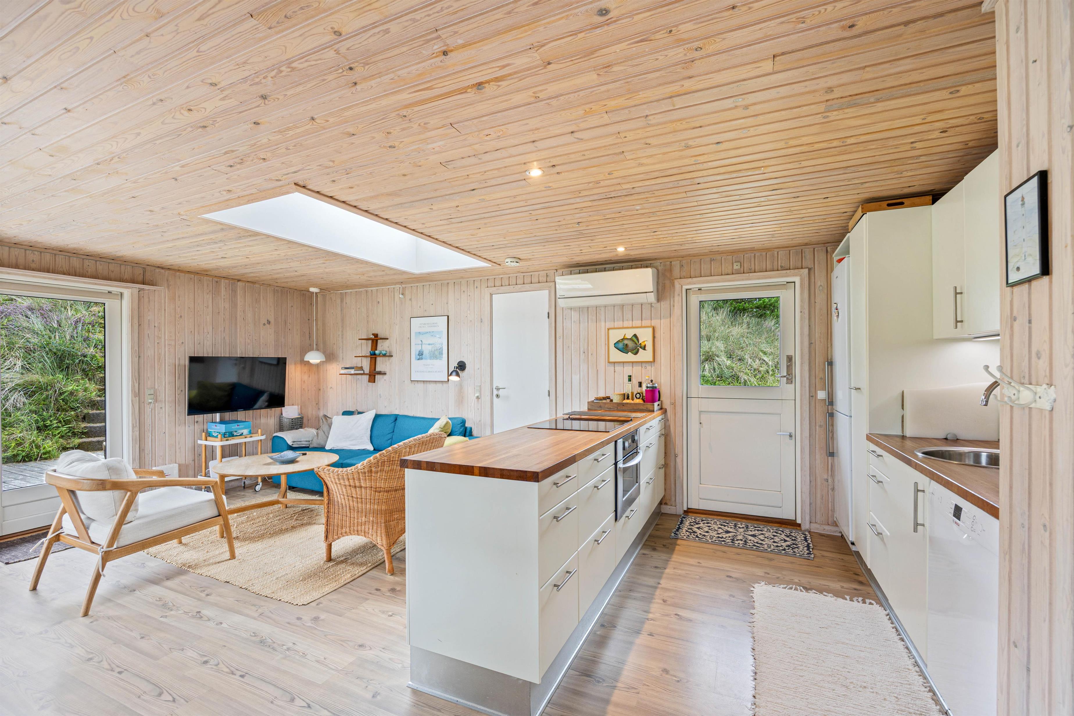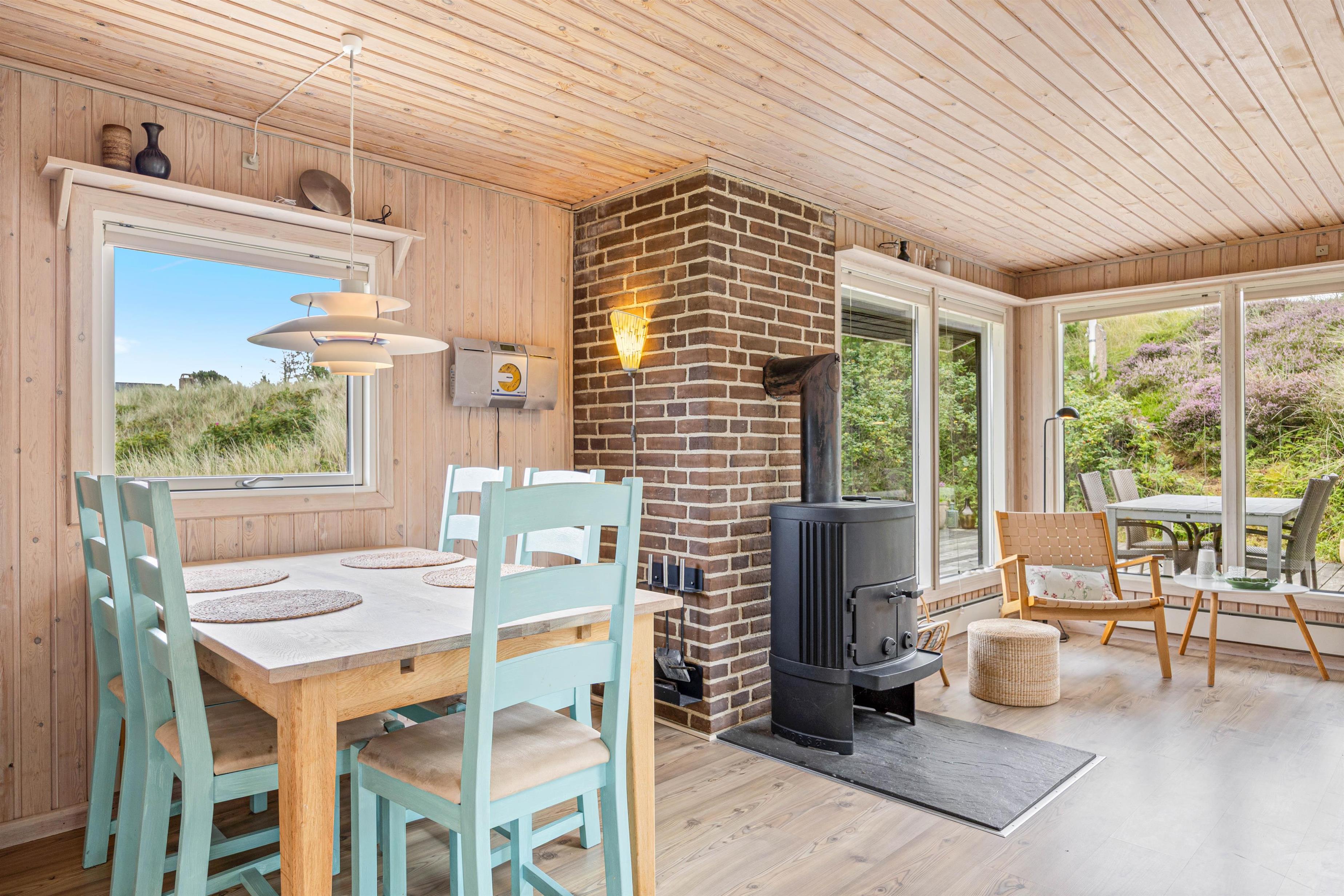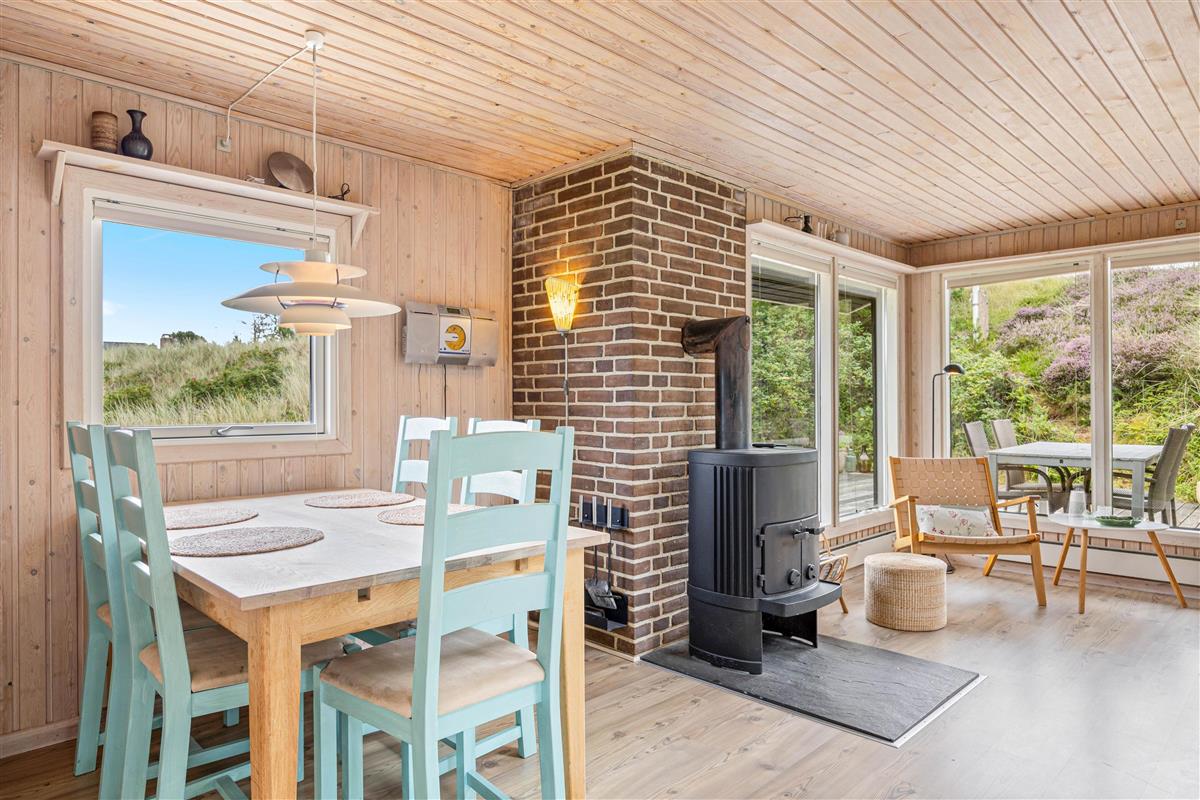 Die gut ausgestattete Küche wird euch dazu inspirieren, neue Rezepte auszuprobieren oder gemütliche Mahlzeiten zu zaubern. Die Küche ist nicht nur mit einer praktischen Spülmaschine ausgestattet, sondern bietet auch alles, was ihr für euren komfortablen Aufenthalt benötigt. Hier könnt ihr eure Kochkünste entfalten und die dänische Gemütlichkeit erleben. An kühleren Abenden verwandelt der Holzofen den Wohn- und Essbereich in eine Oase der Behaglichkeit. Hier könnt ihr bei prasselndem Feuer wohltuende Stunden verbringen. Der Raum macht es euch leicht, eure Zeit in entspannter Atmosphäre zu genießen, während die energiesparende Wärmepumpe zusätzlich für ein angenehmes Raumklima sorgt.