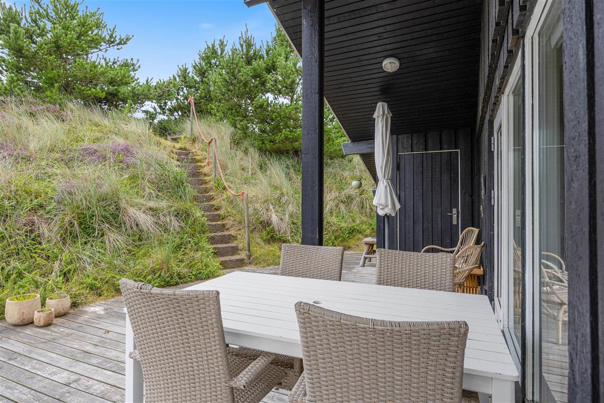 Nur ca. 900 m vom Strand entfernt, bietet dieses Ferienhaus eine schöne Terrassensituation, hier könnt ihr euch auf der abgeschirmten Terrasse sonnen und sollte das Wetter mal umschlagen ist ein Teil der Terrasse überdacht. Hier könnt ihr die dänische Sonne genießen, grillen oder euch einfach im Schatten entspannen.Eine Sandkiste für die kleinen Gäste steht zur Verfügung. Die Nähe zum Strand und die fußläufig erreichbaren Einkaufsmöglichkeiten, nur ca. 1800 m entfernt, machen euren Aufenthalt besonders bequem und abwechslungsreich.