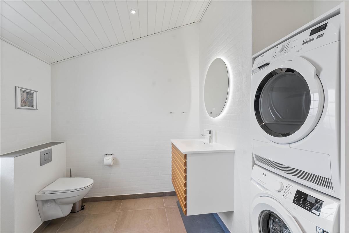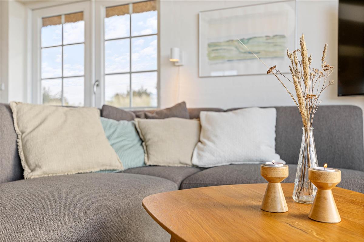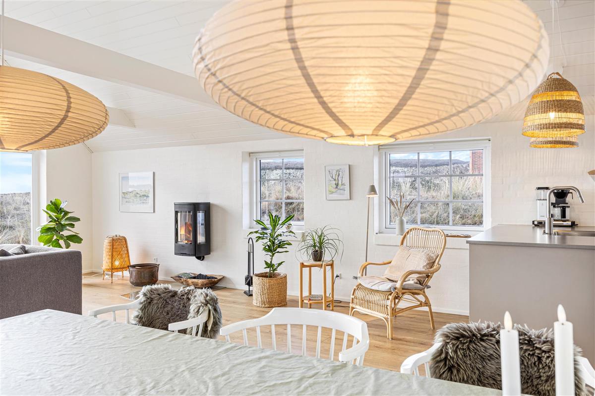 The kitchen, dining area and living room flow together, offering stunning views of the surrounding nature. Here you can prepare dinner together while others relax on the sofa watching a film, enjoying the warmth from the crackling wood-burning stove. The holiday home is also equipped with an energy-efficient air-to-air heat pump for comfortable climate control. An electric car charging point is available for your convenience.