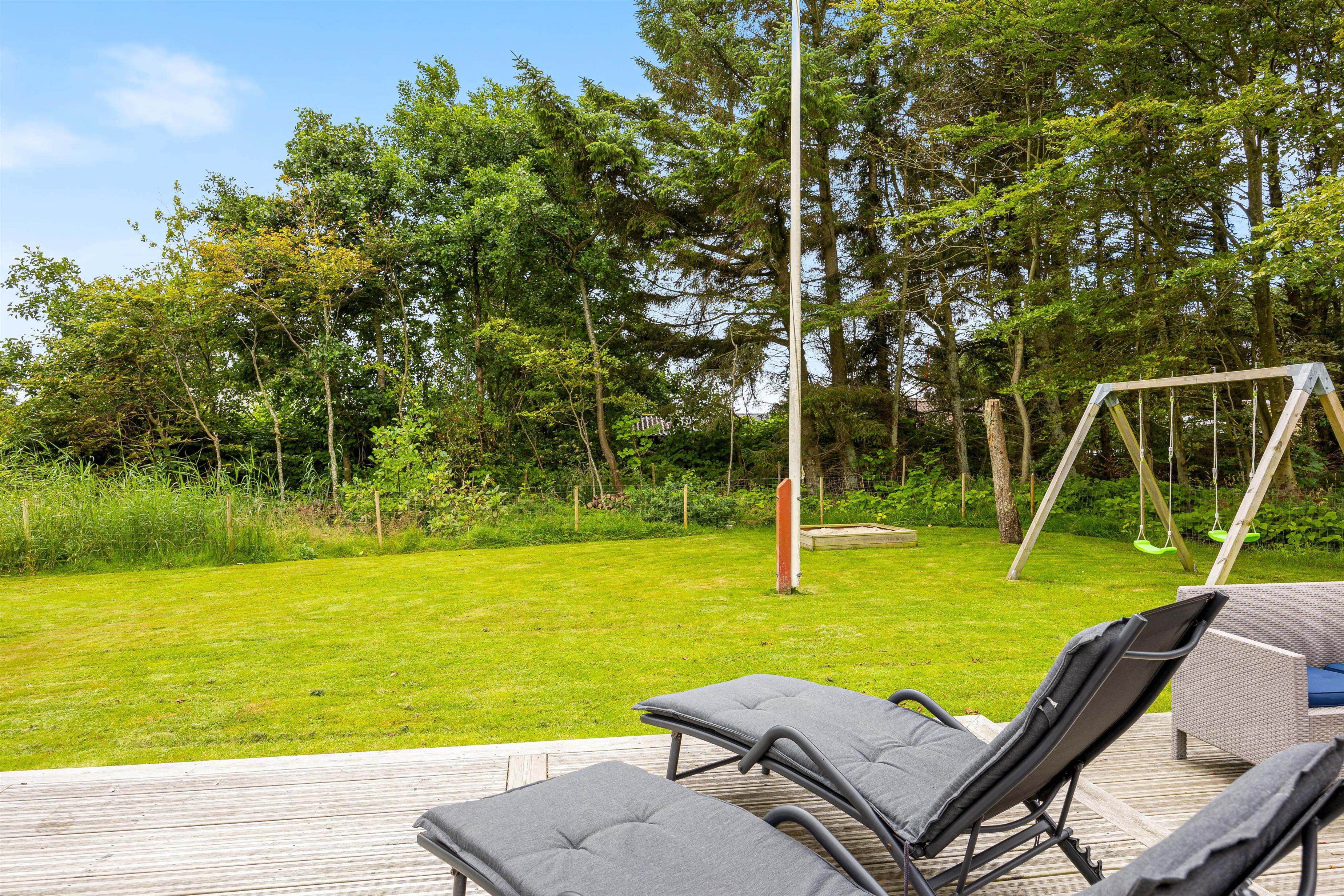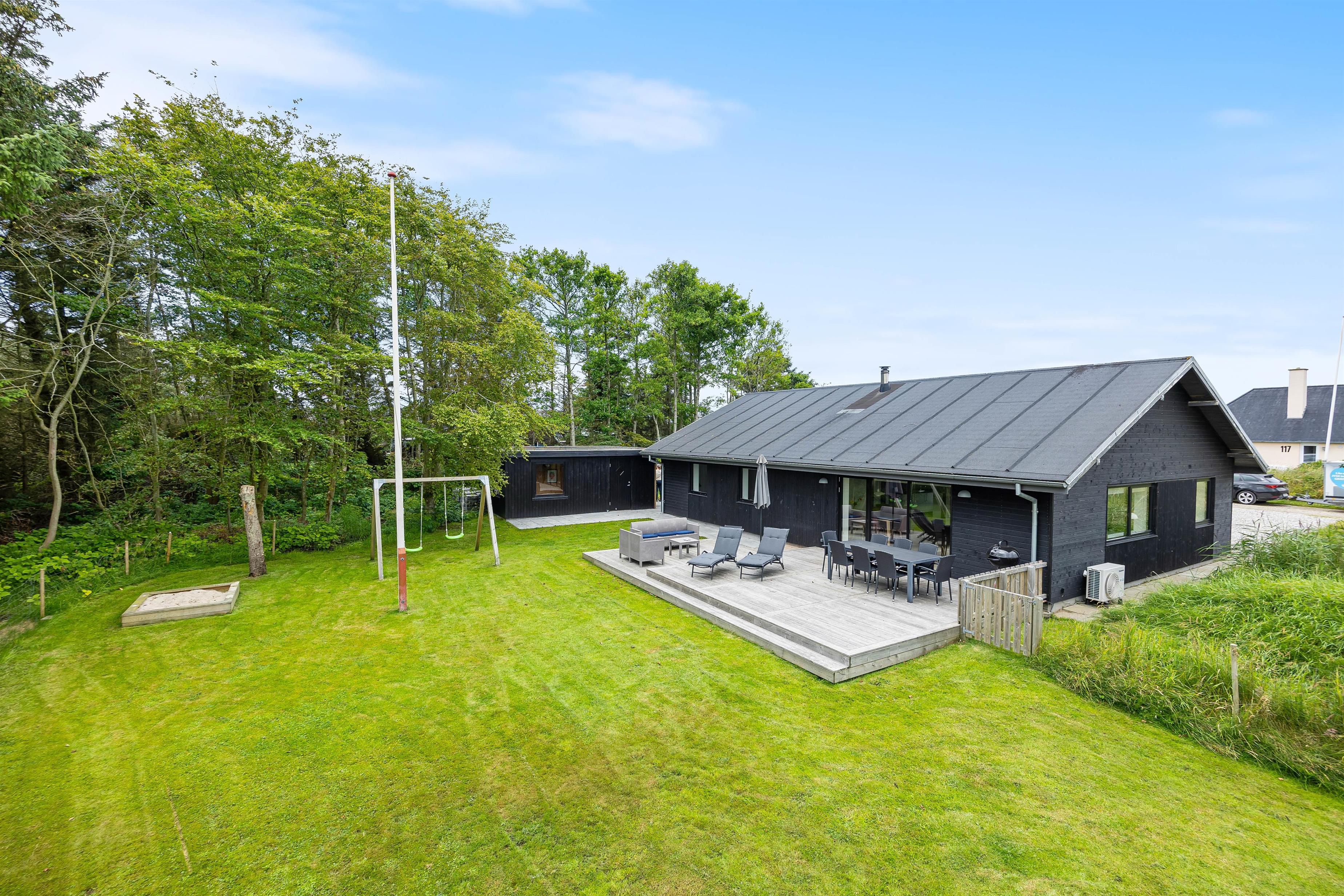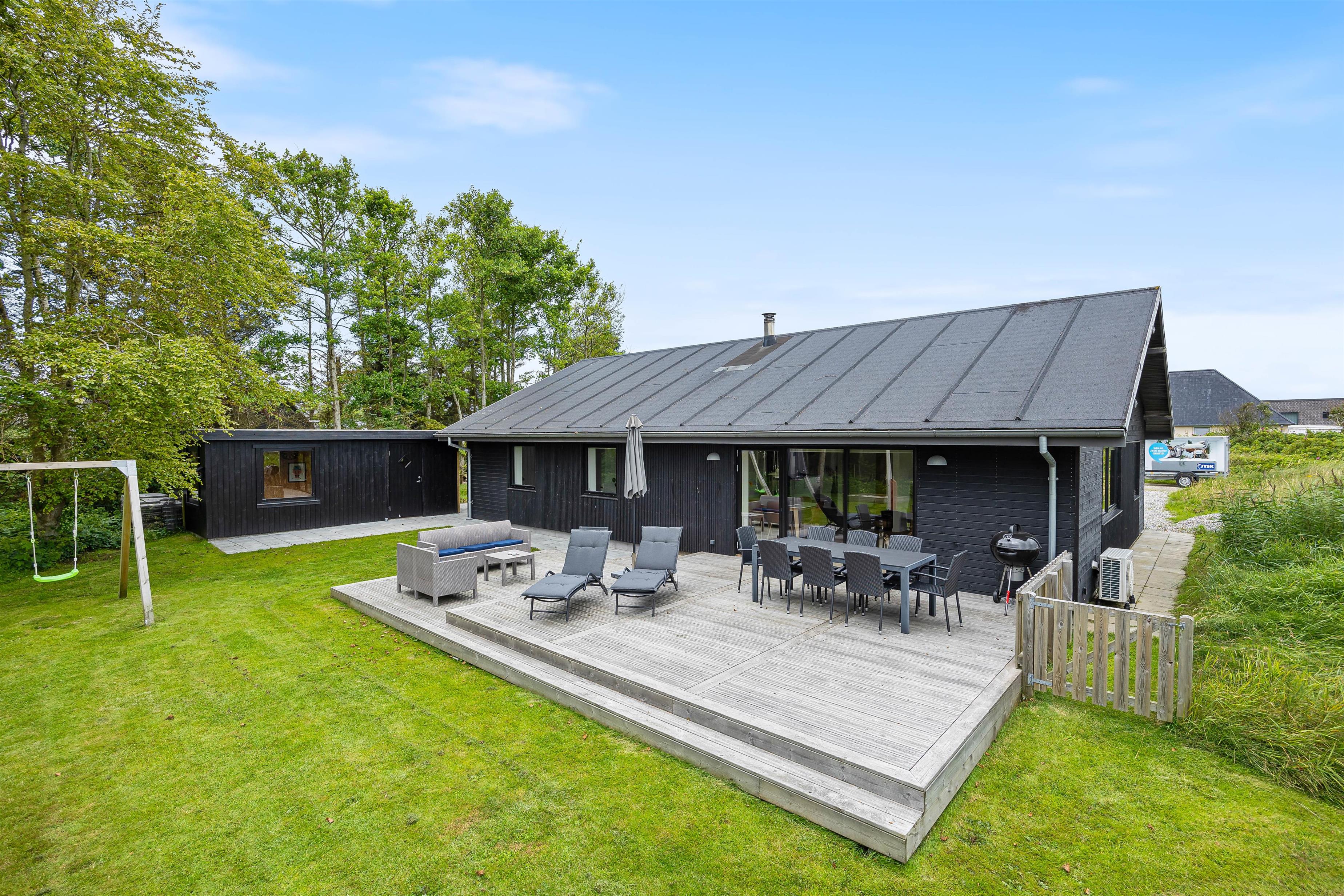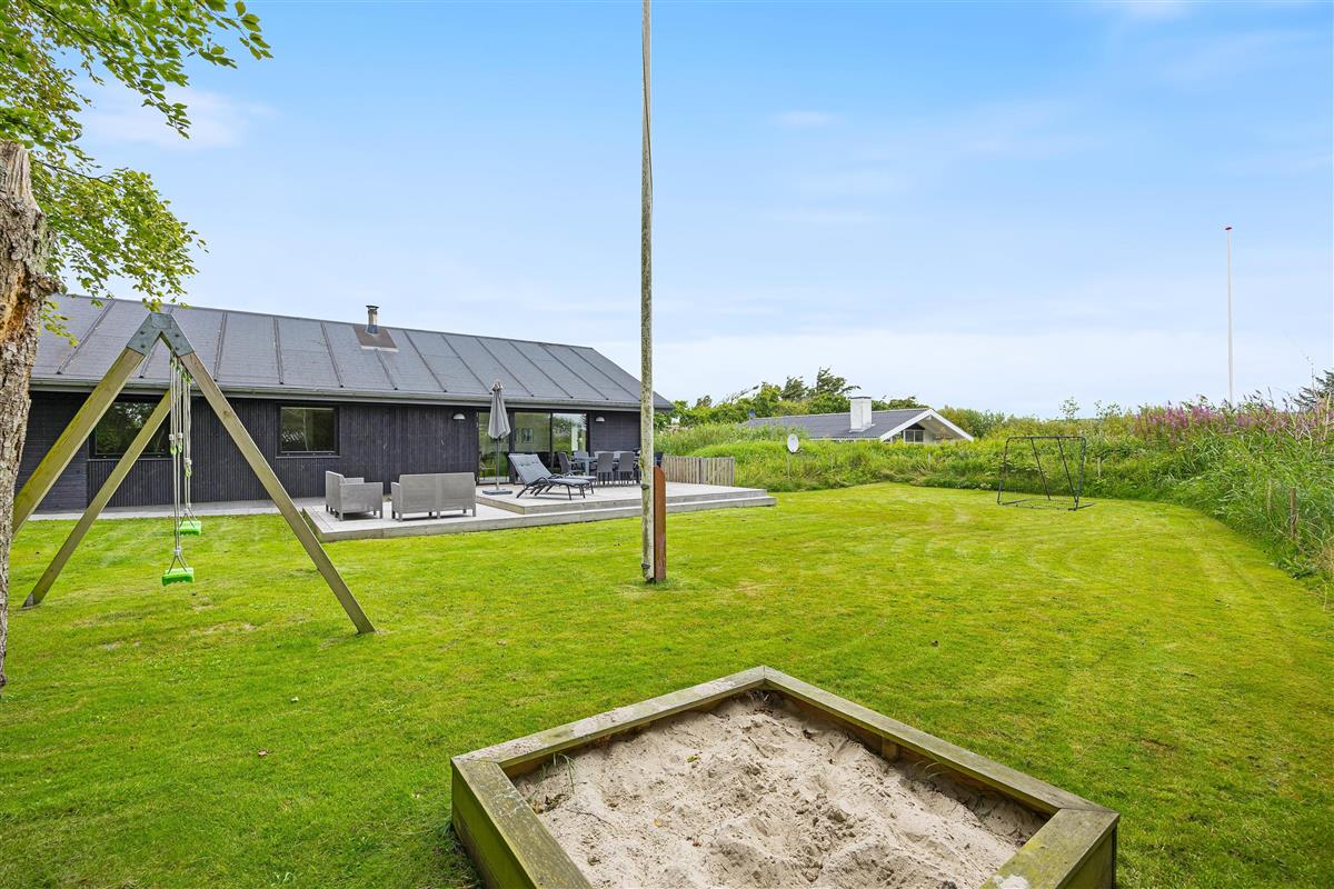 This inviting holiday home, close to the beach and Søndervig centre, is an excellent choice for a family holiday by the North Sea. The holiday home accommodates up to 8 people and welcomes dogs. This spacious holiday home was completely renovated in 2021 and features a pool table and wood-burning stove – children and dogs can roam freely in the grounds while you relax in the sunshine.
