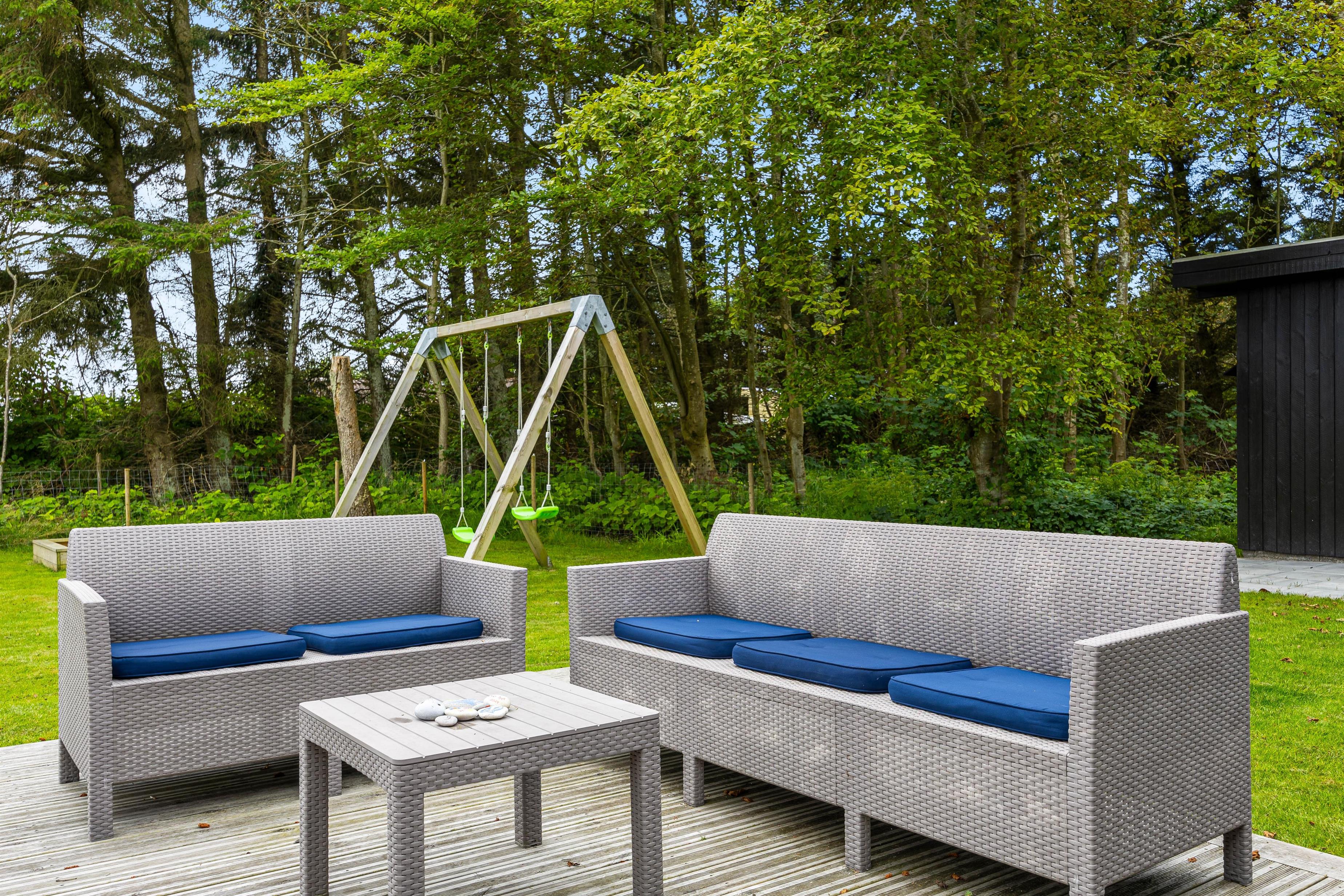 The holiday home features a lovely outdoor area with an open terrace and south-facing garden. Here, both children and dogs can play freely while you watch from the sun loungers or prepare dinner on the barbecue. The grounds include a sandpit and swing set for the enjoyment of younger family members.
