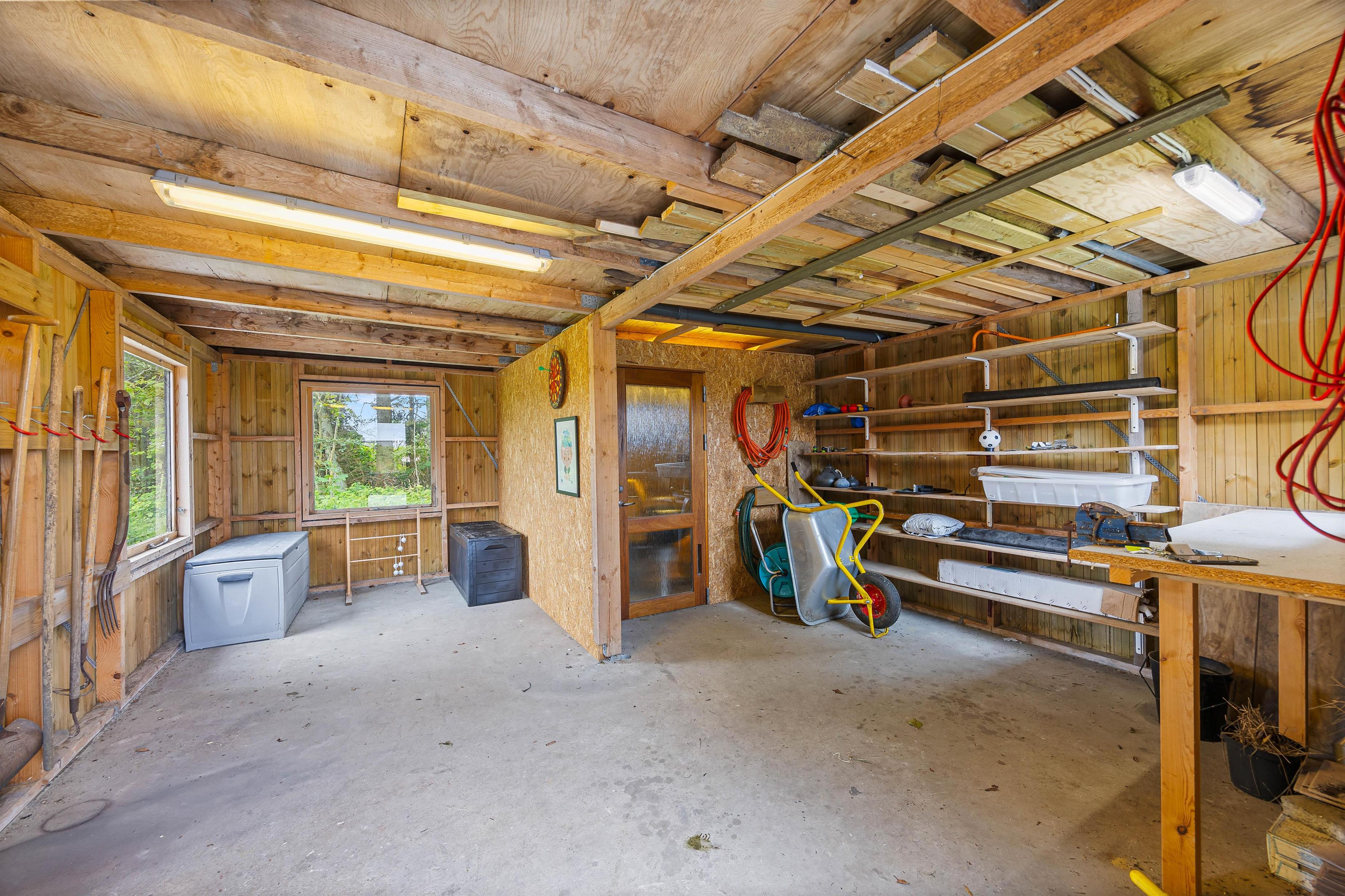 The spacious, open-plan living area with integrated kitchen forms the heart of the house, perfectly combining entertainment and relaxation. Active family members can enjoy exciting tournaments at the pool table, while those seeking pure relaxation can settle down with a good book on the sofa, accompanied by the crackling of the wood-burning stove in the background.