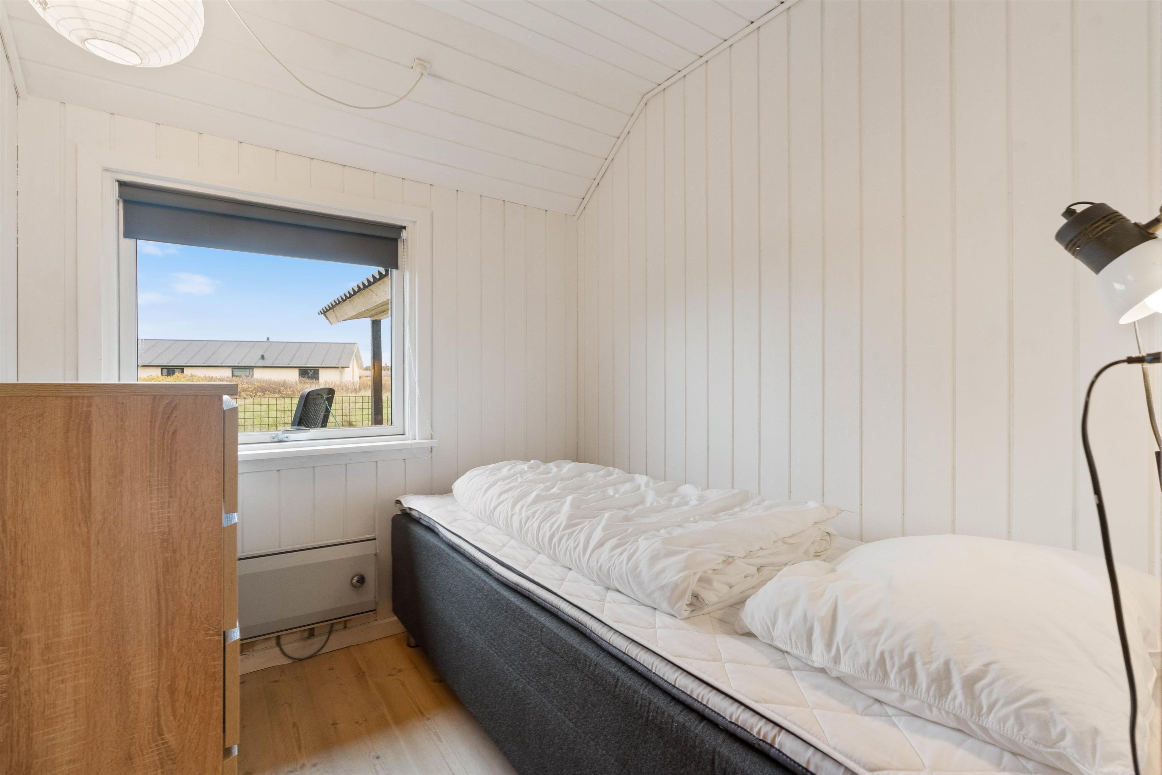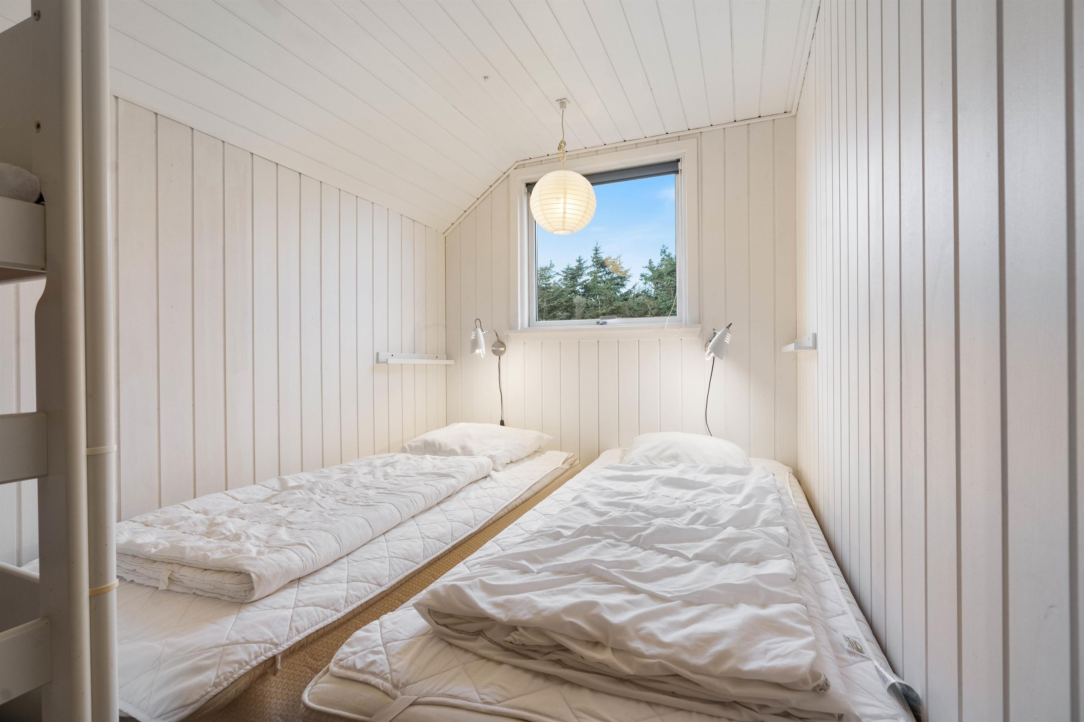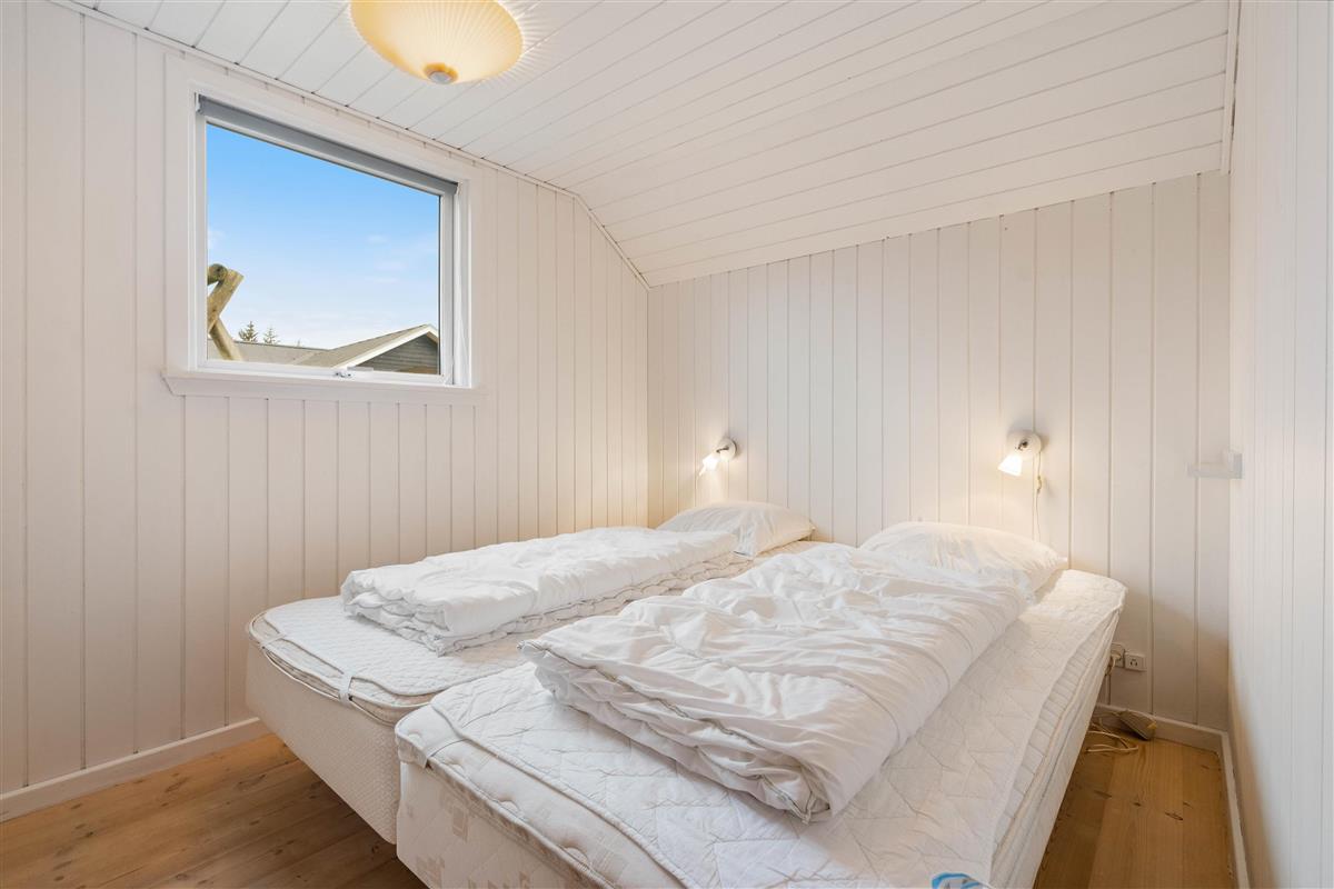 A beautiful and cosy wooden holiday home in Søndervig, featuring vaulted ceilings and excellent amenities. There are three bedrooms: one with a single bed and two with twin beds. As an added bonus, one of the twin bedrooms also includes bunk beds.