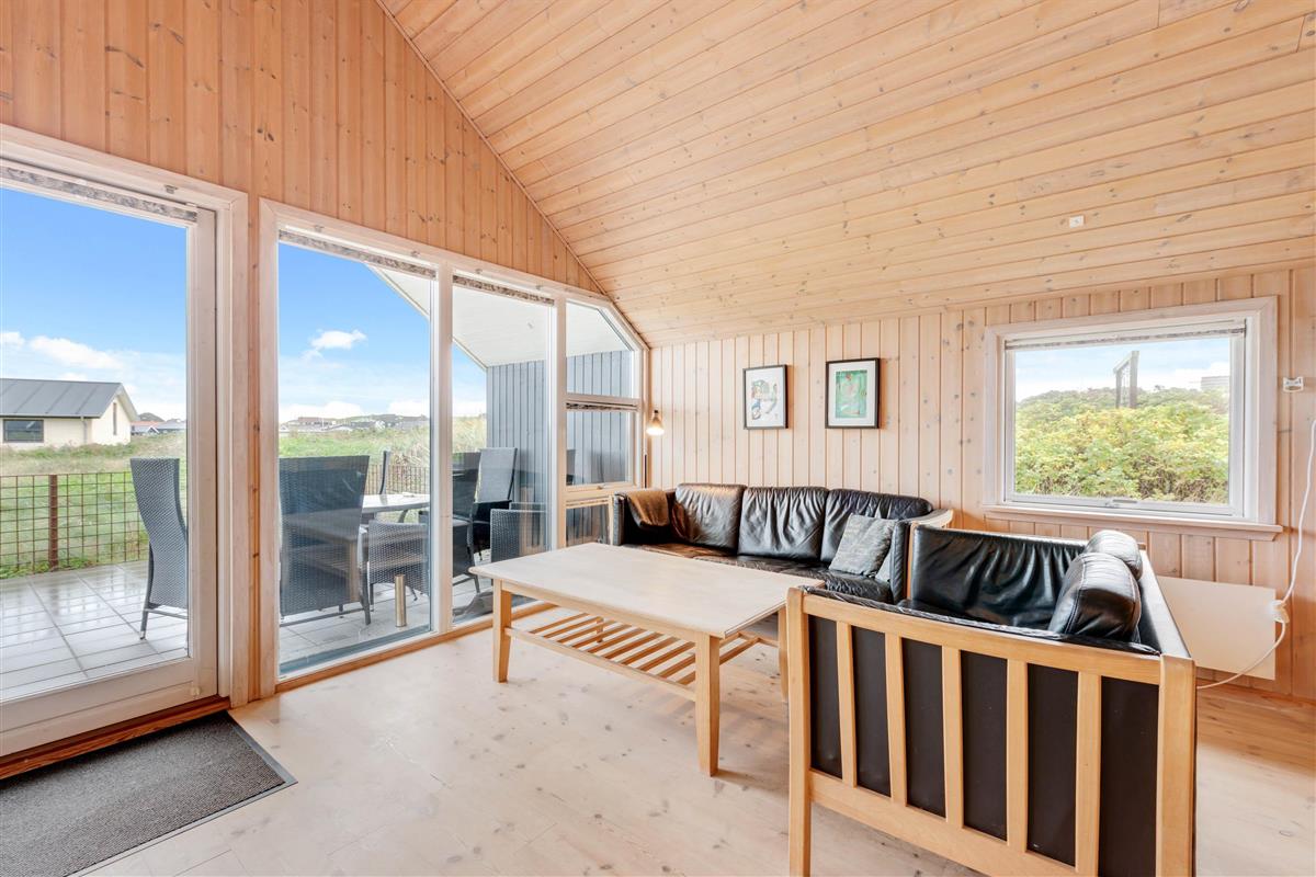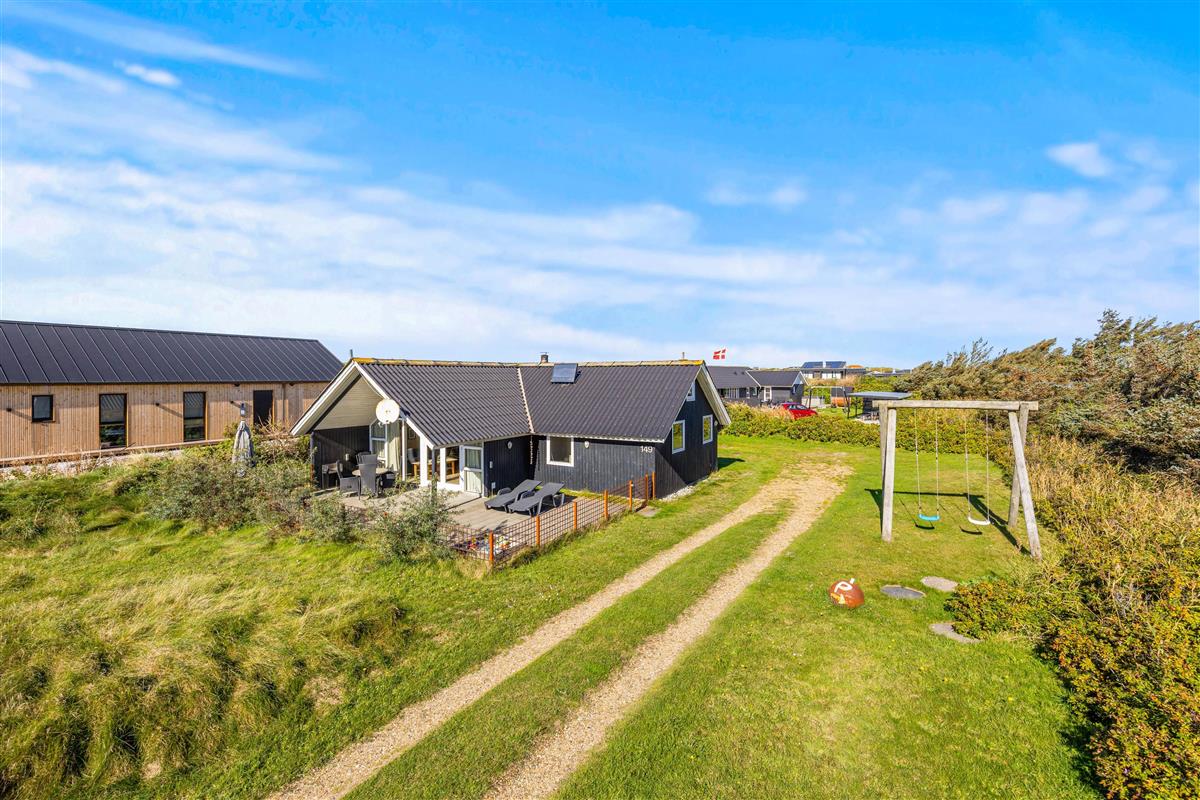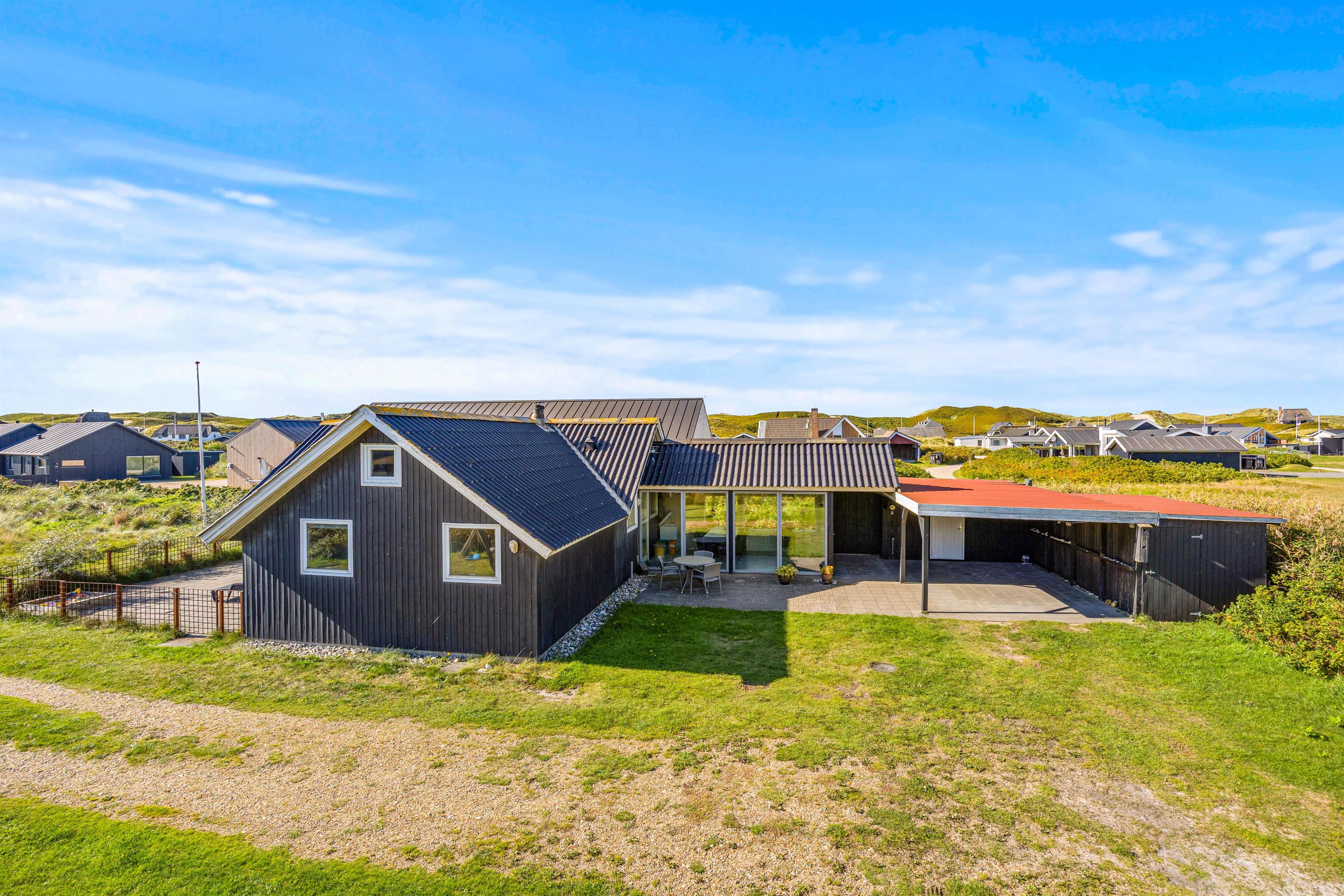 It's a wonderful space for children and the family dog. The air is wonderfully fresh year-round. The North Sea and dunes are very close to the holiday home, and Søndervig's centre is just a short walk away. The nearby 27-hole golf course, with some holes just a few hundred metres from the house, is playable almost year-round.