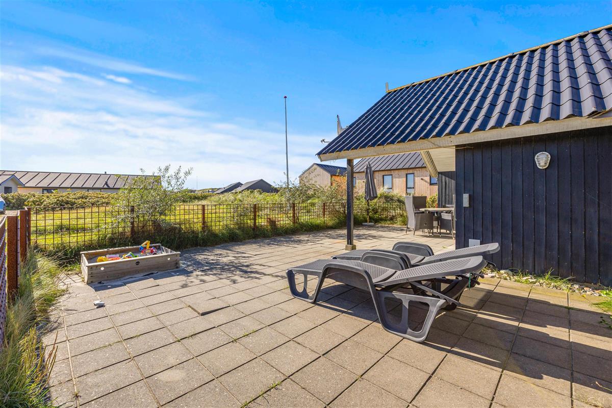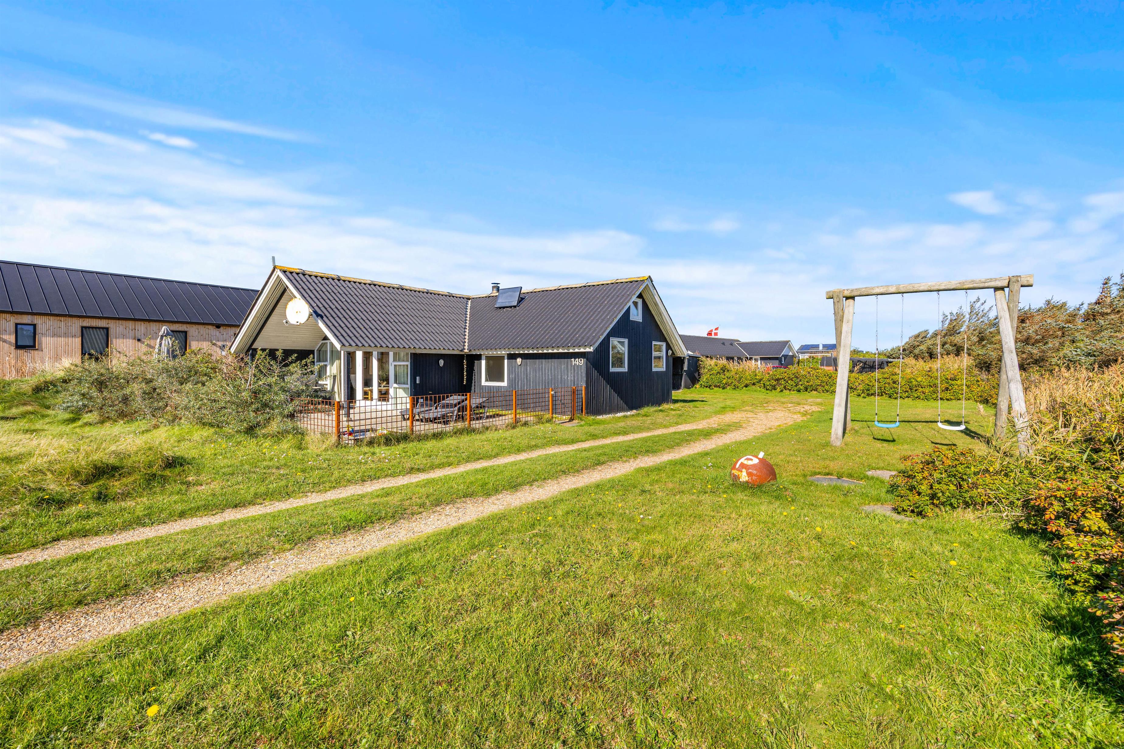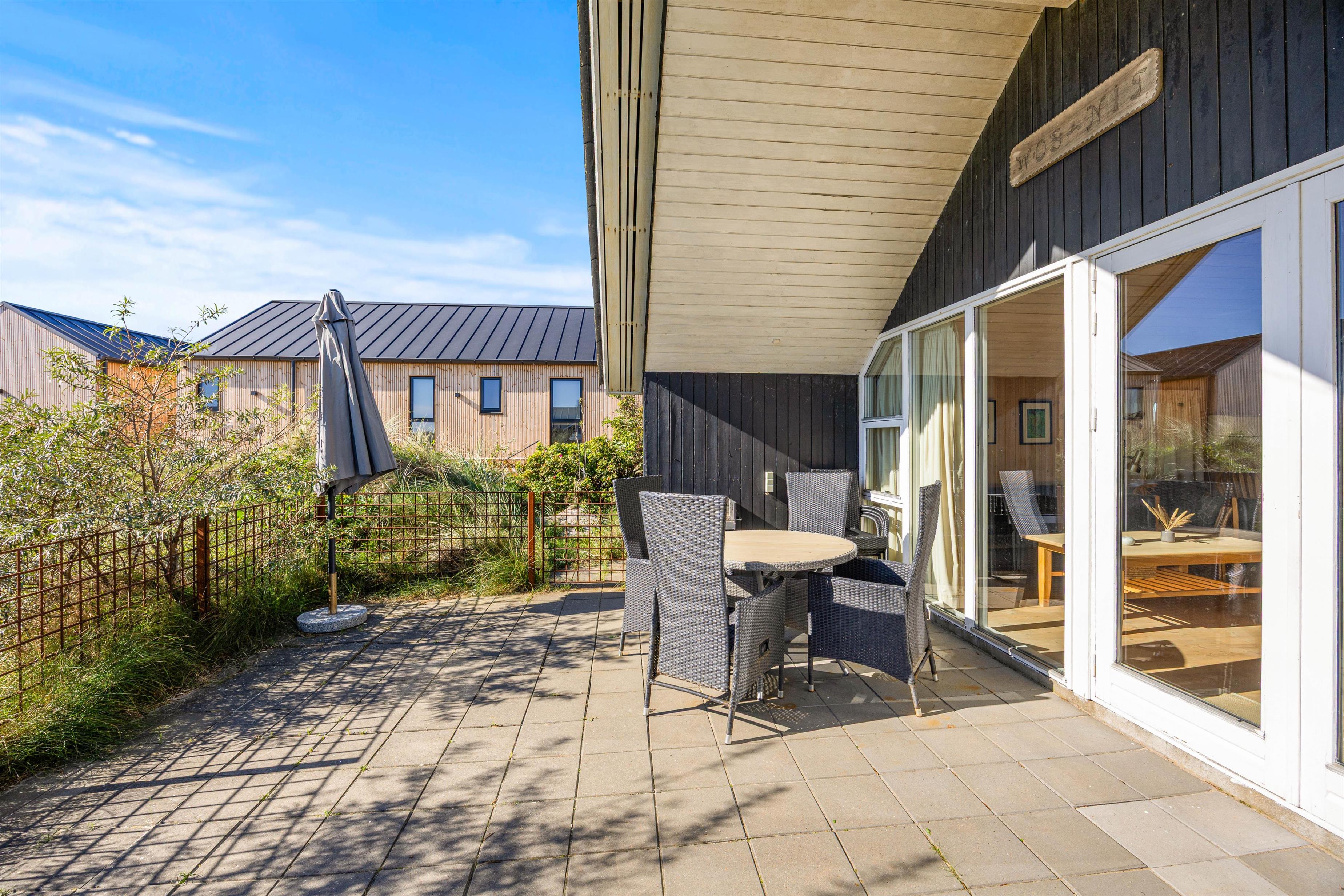 It's a wonderful space for children and the family dog. The air is wonderfully fresh year-round. The North Sea and dunes are very close to the holiday home, and Søndervig's centre is just a short walk away. The nearby 27-hole golf course, with some holes just a few hundred metres from the house, is playable almost year-round.
