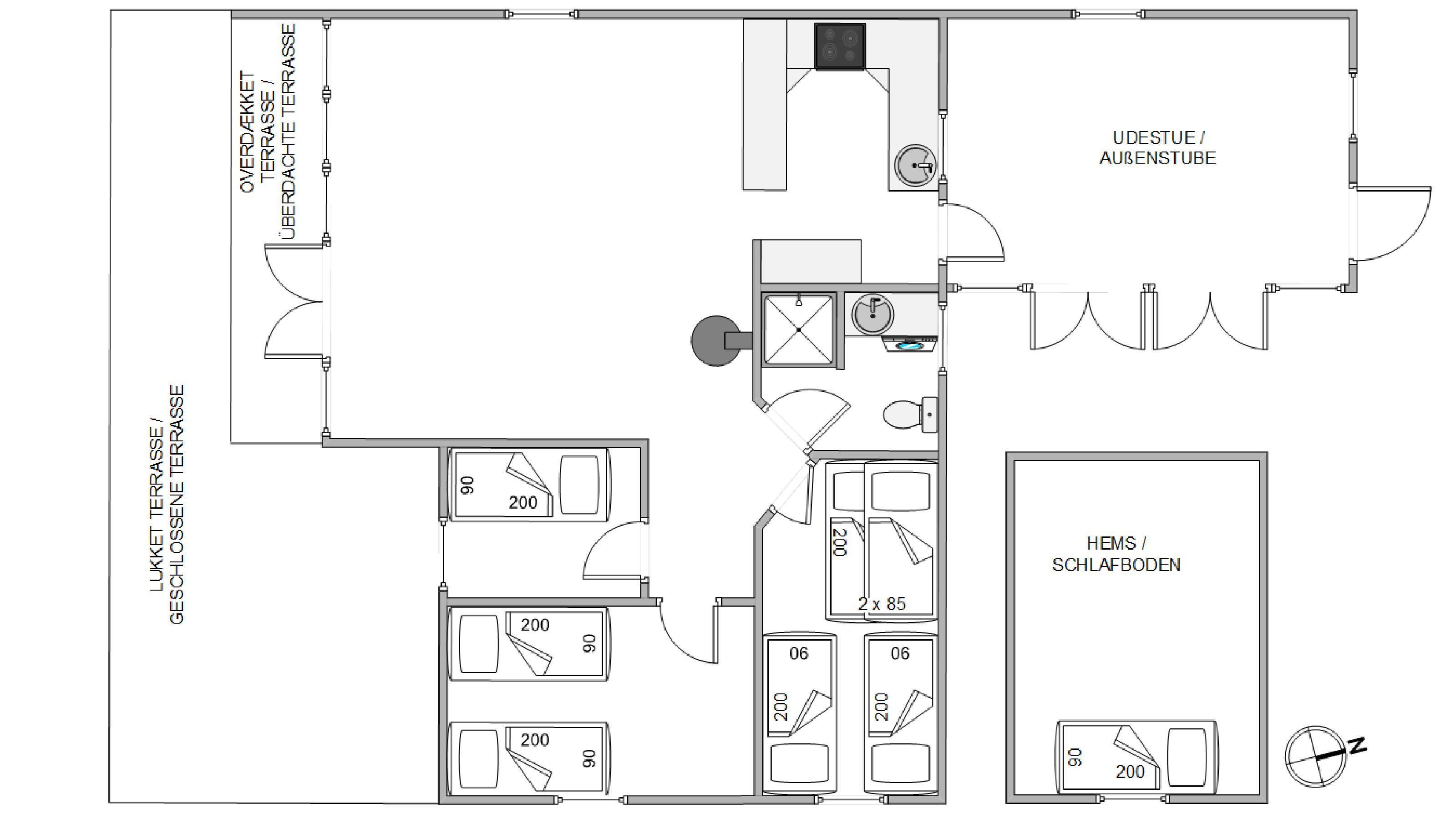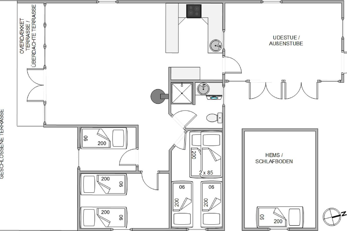 Along the southern facade lies the delightful enclosed terrace. Being partially covered, it's ideal for summer barbecues - with the sound of the North Sea in the background.