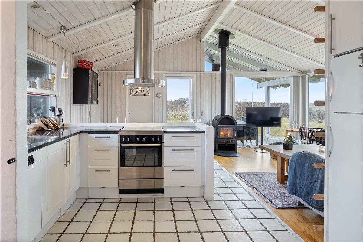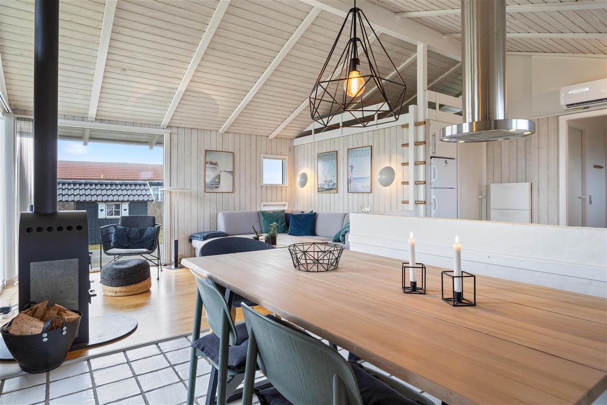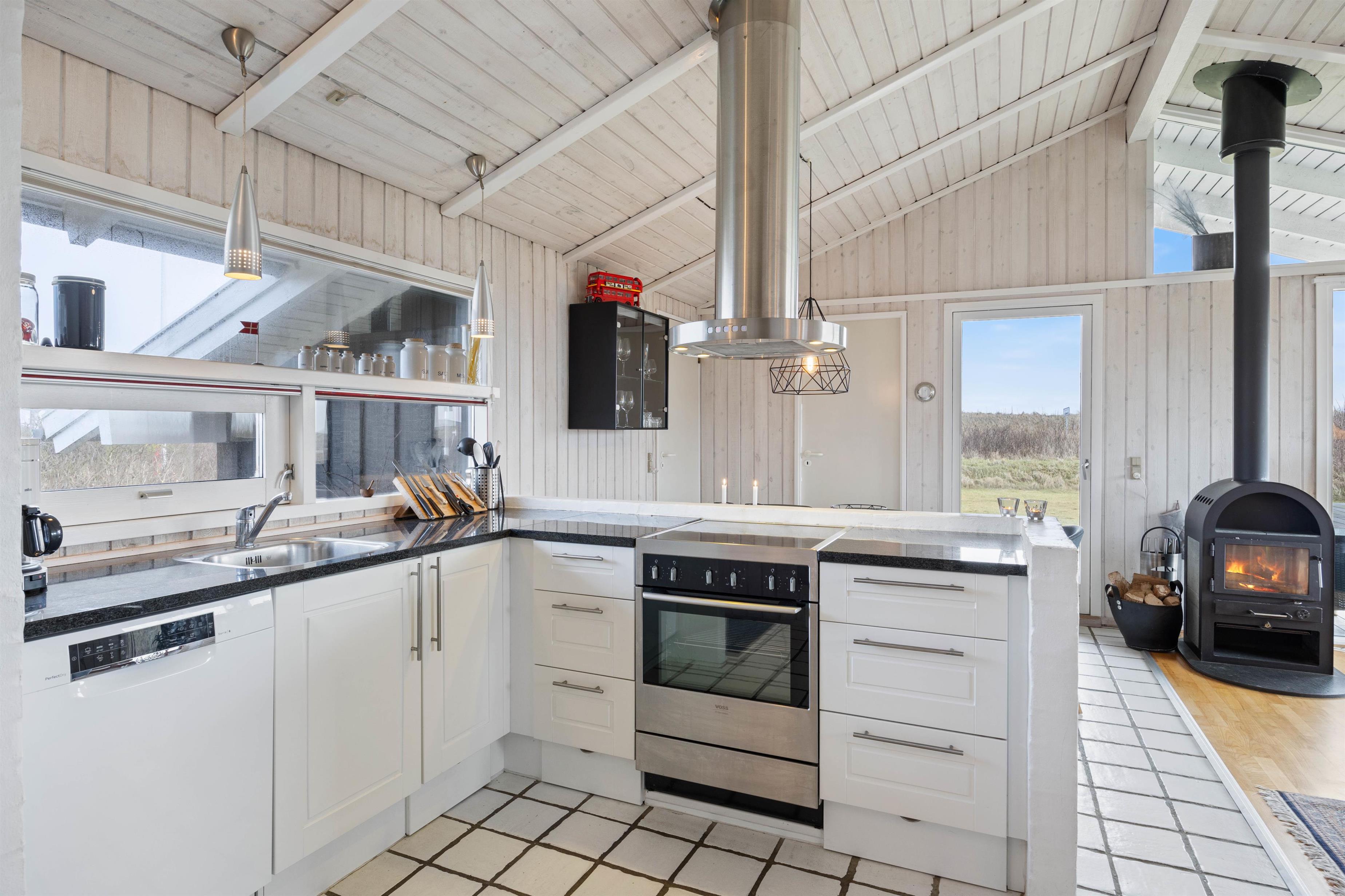 The holiday home features a modern, well-equipped kitchen with dishwasher, allowing you to enjoy cooking during your stay. Create wonderful memories together while the crackling fire in the wood-burning stove adds to the cosy holiday atmosphere. Along with a washing machine and tumble dryer, there's an energy-efficient air-to-air heat pump ensuring comfortable temperatures throughout. The holiday home is also allergy-friendly, ensuring a worry-free stay for guests with allergies.