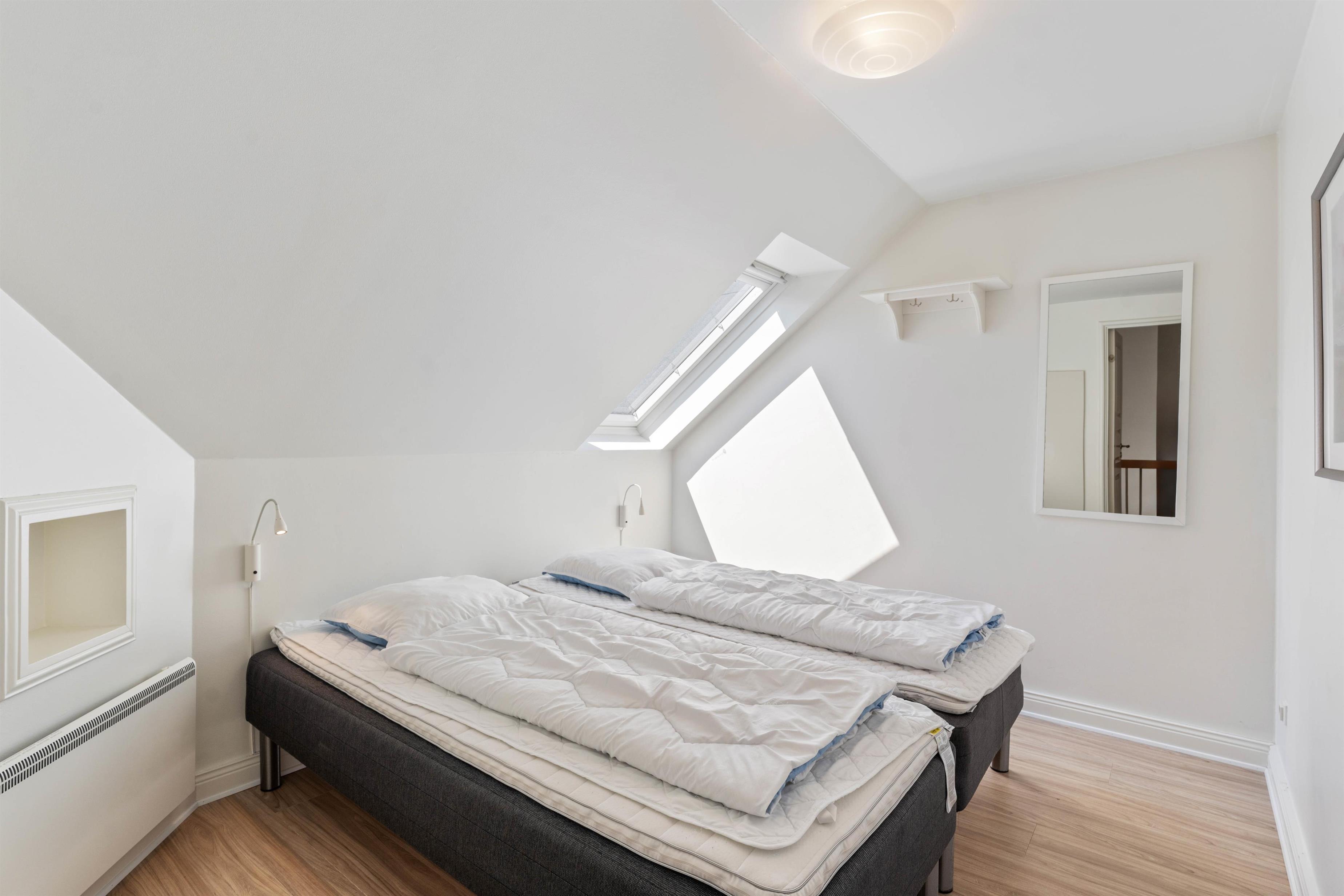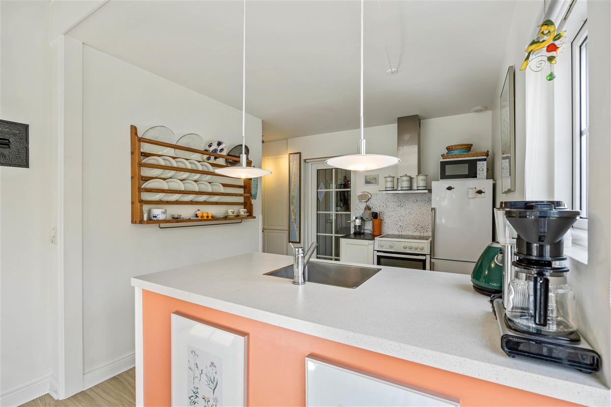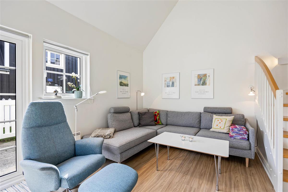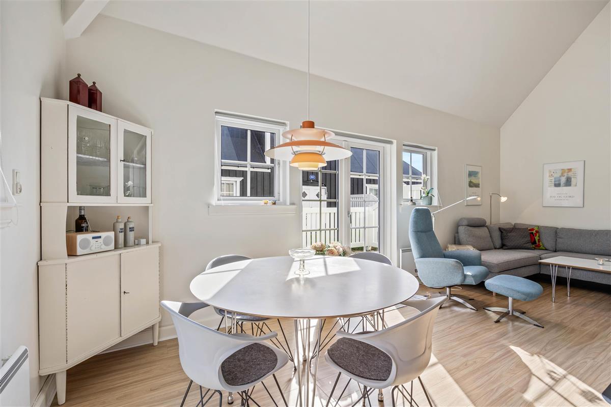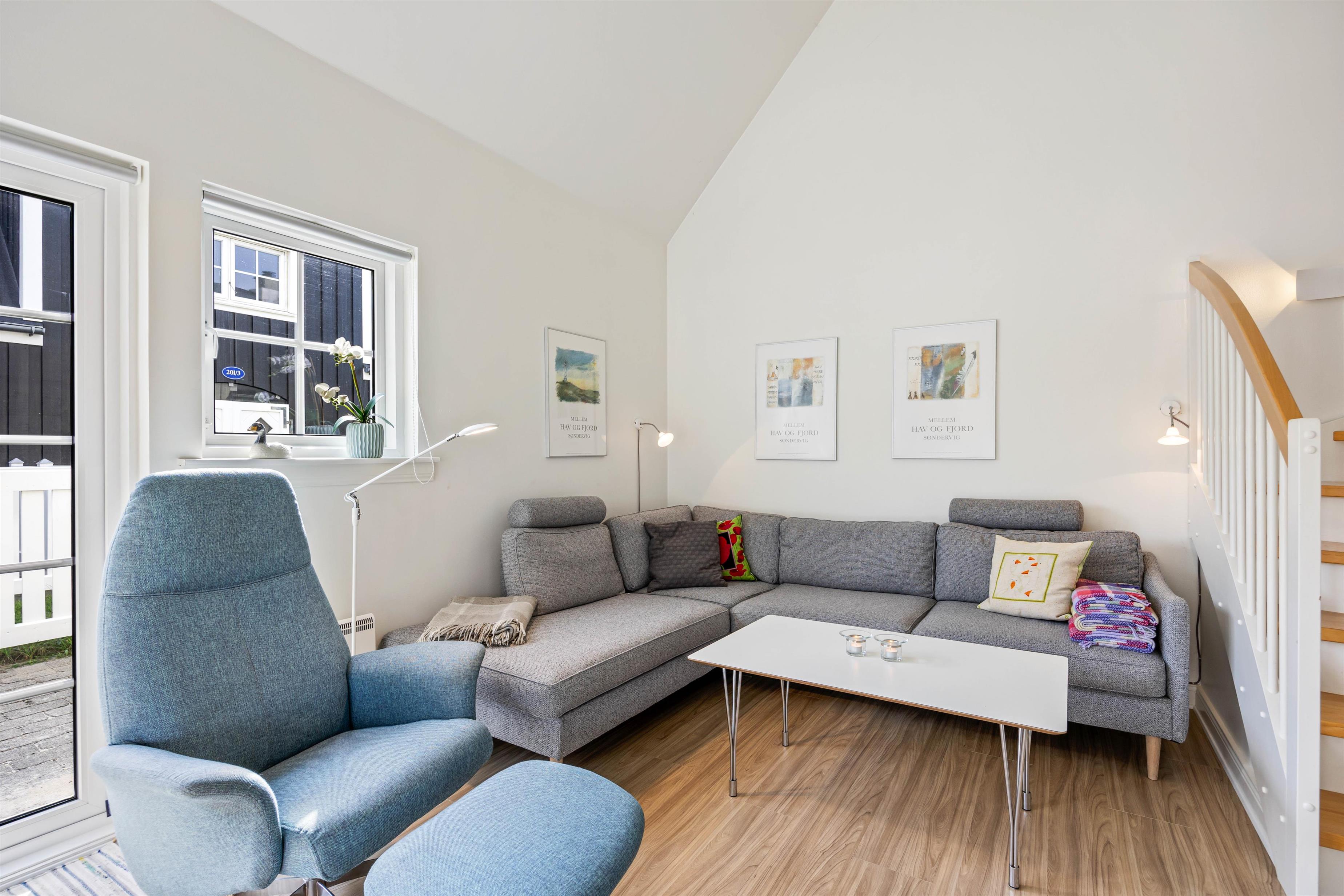This holiday apartment welcomes you in central Søndervig with its bright, friendly atmosphere. You'll immediately feel at home and ready to start your holiday in complete comfort. The 90-square-metre living space is arranged with a well-equipped kitchen, living and dining area, large bathroom, and guest WC on the ground floor, while the first floor features two bedrooms.
