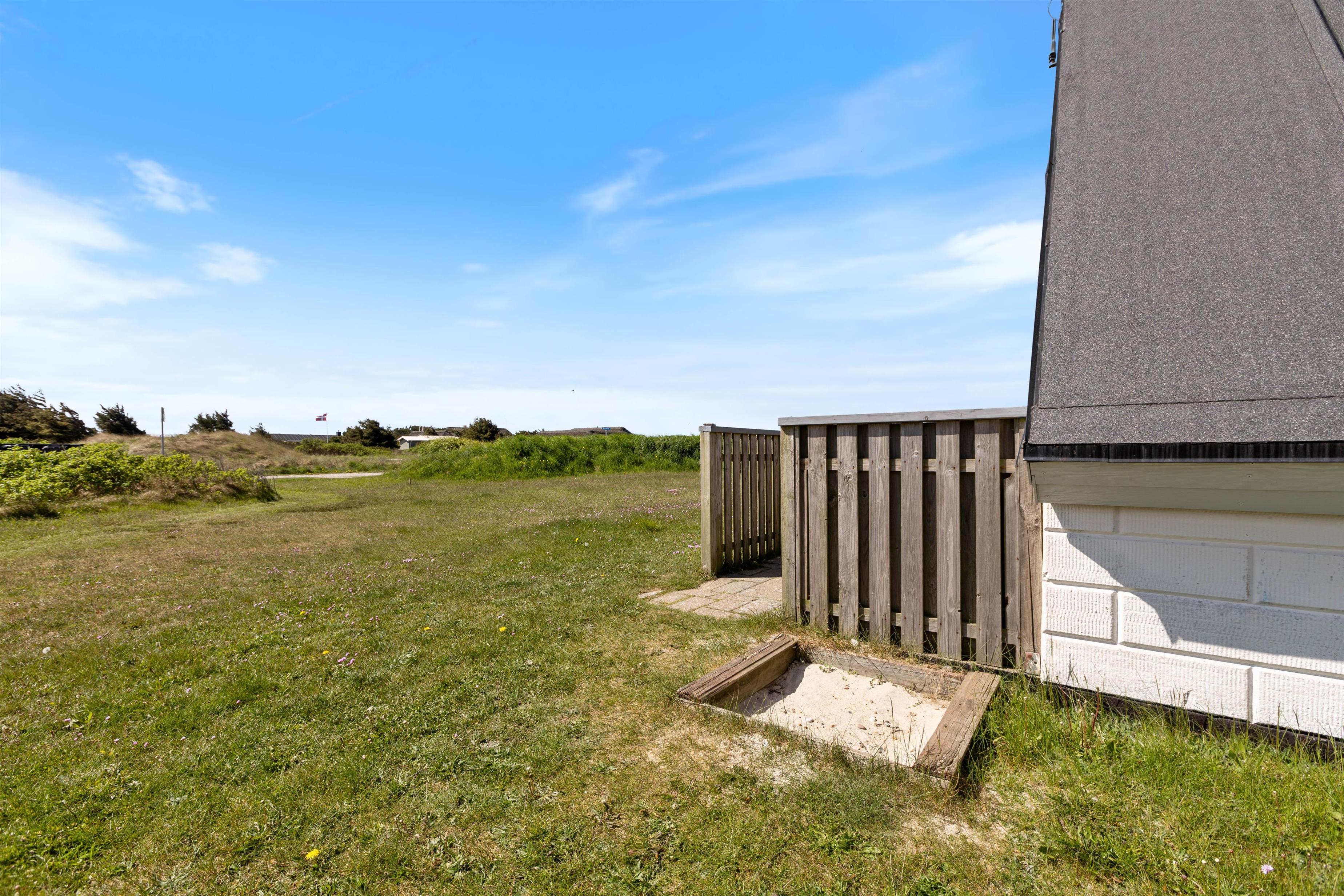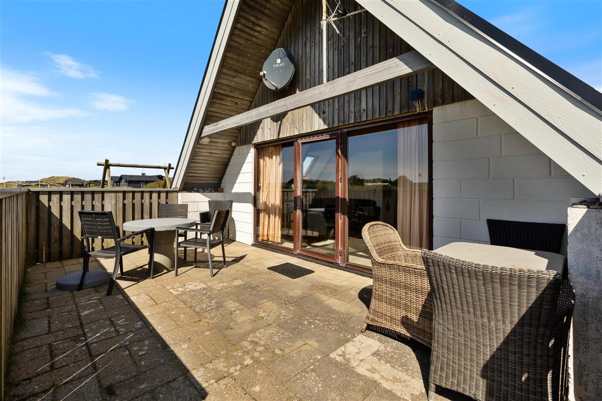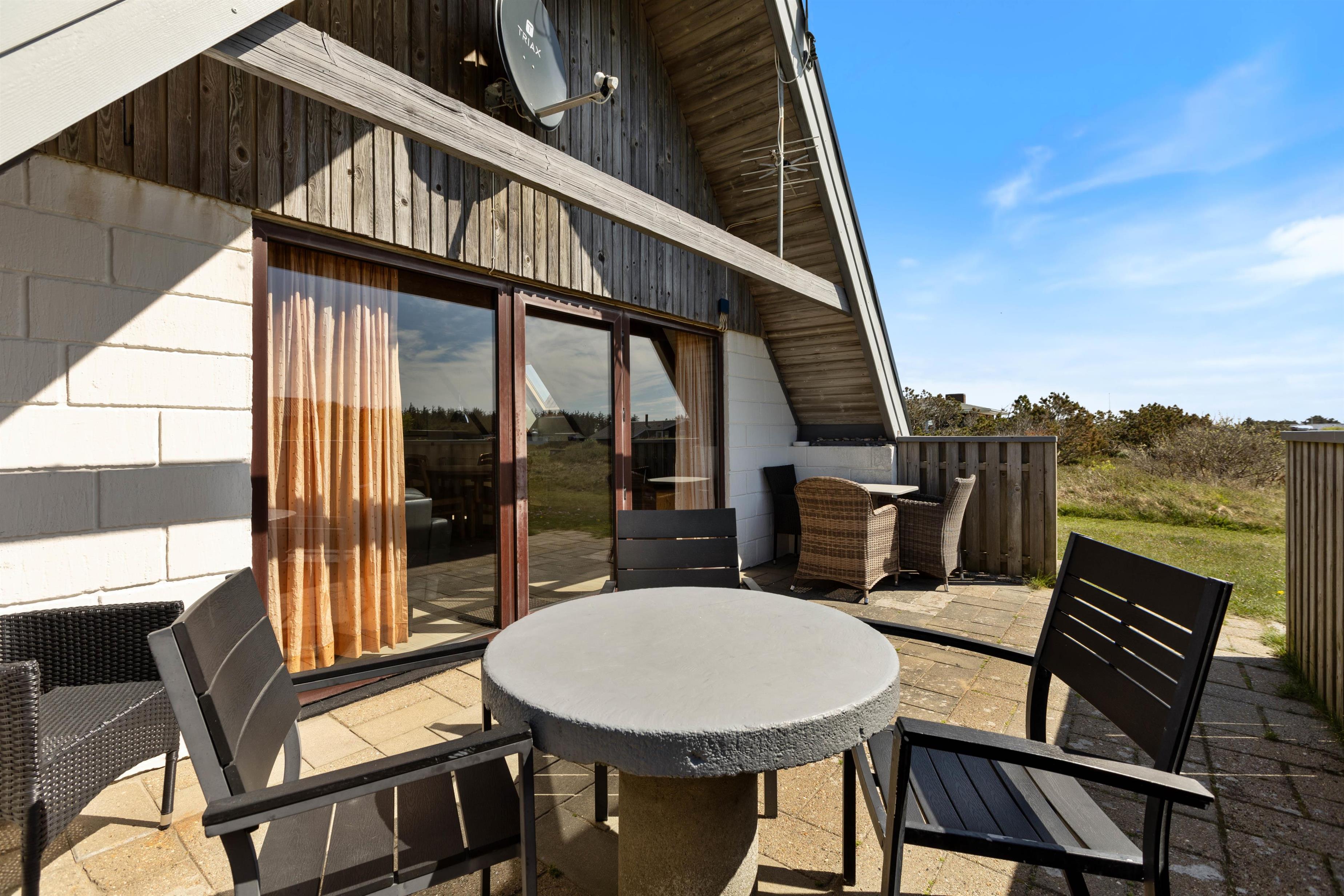 The living area leads to a sheltered, partially covered terrace furnished with comfortable garden furniture. On warm summer evenings, you can enjoy a relaxing barbecue while watching the sun set behind the dunes, painting the sky in beautiful shades of red.
