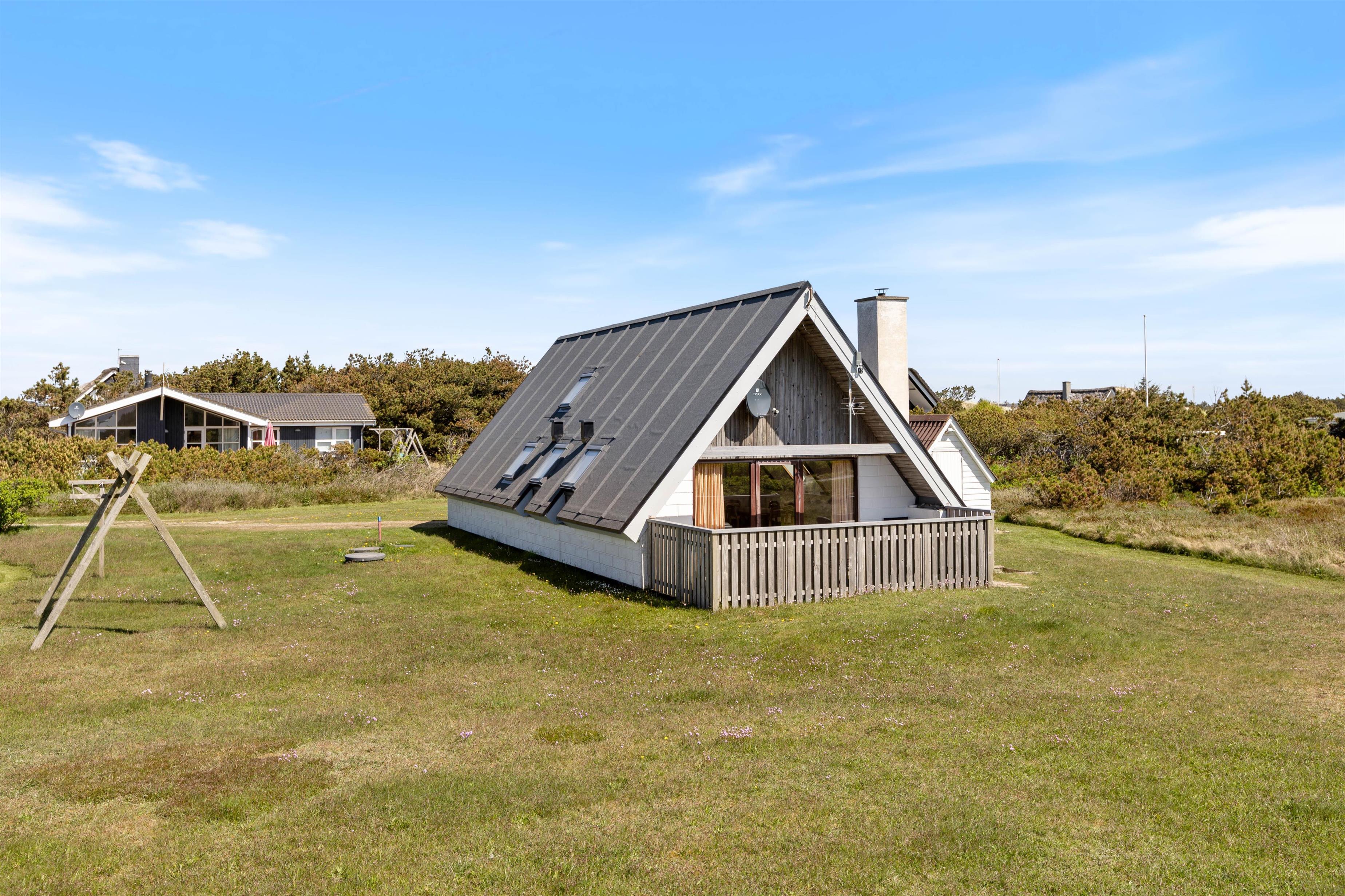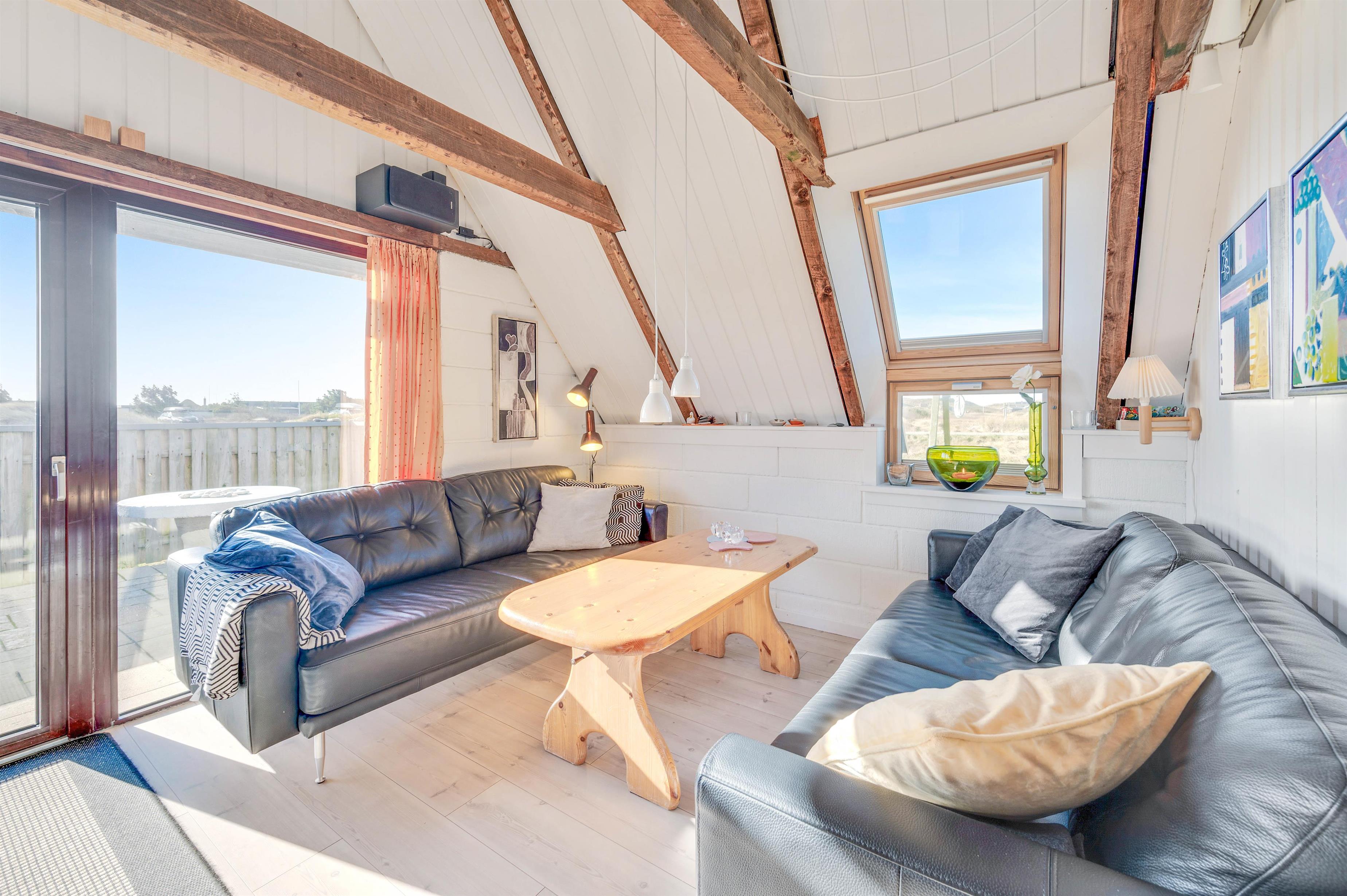 This 88-square-metre holiday home provides a cosy setting for a relaxing holiday in an idyllic atmosphere, just moments from the stunning North Sea beach. The exposed dark beams, combined with comfortable furnishings and thoughtful personal touches, complete the classic Danish summer house style.