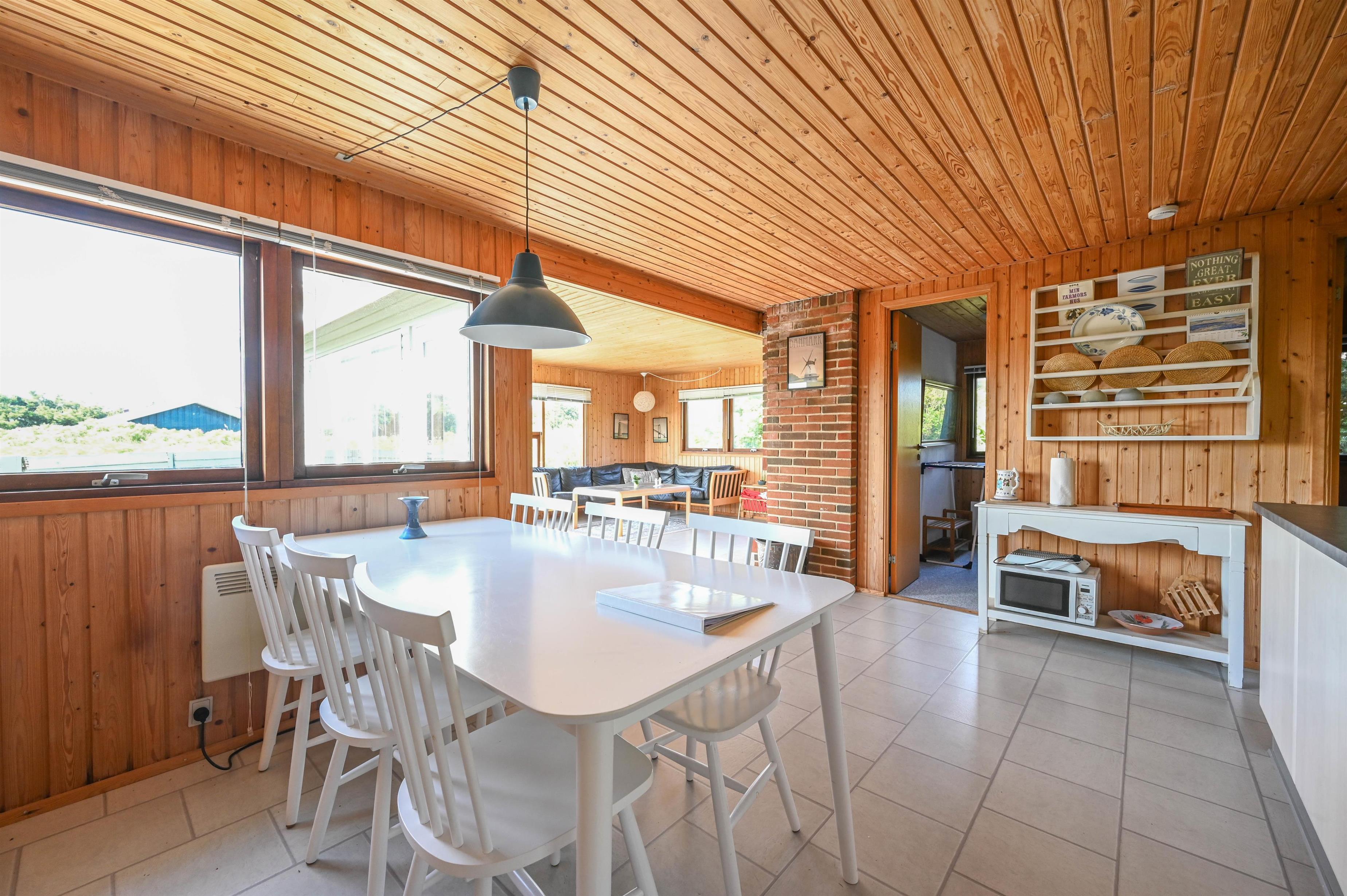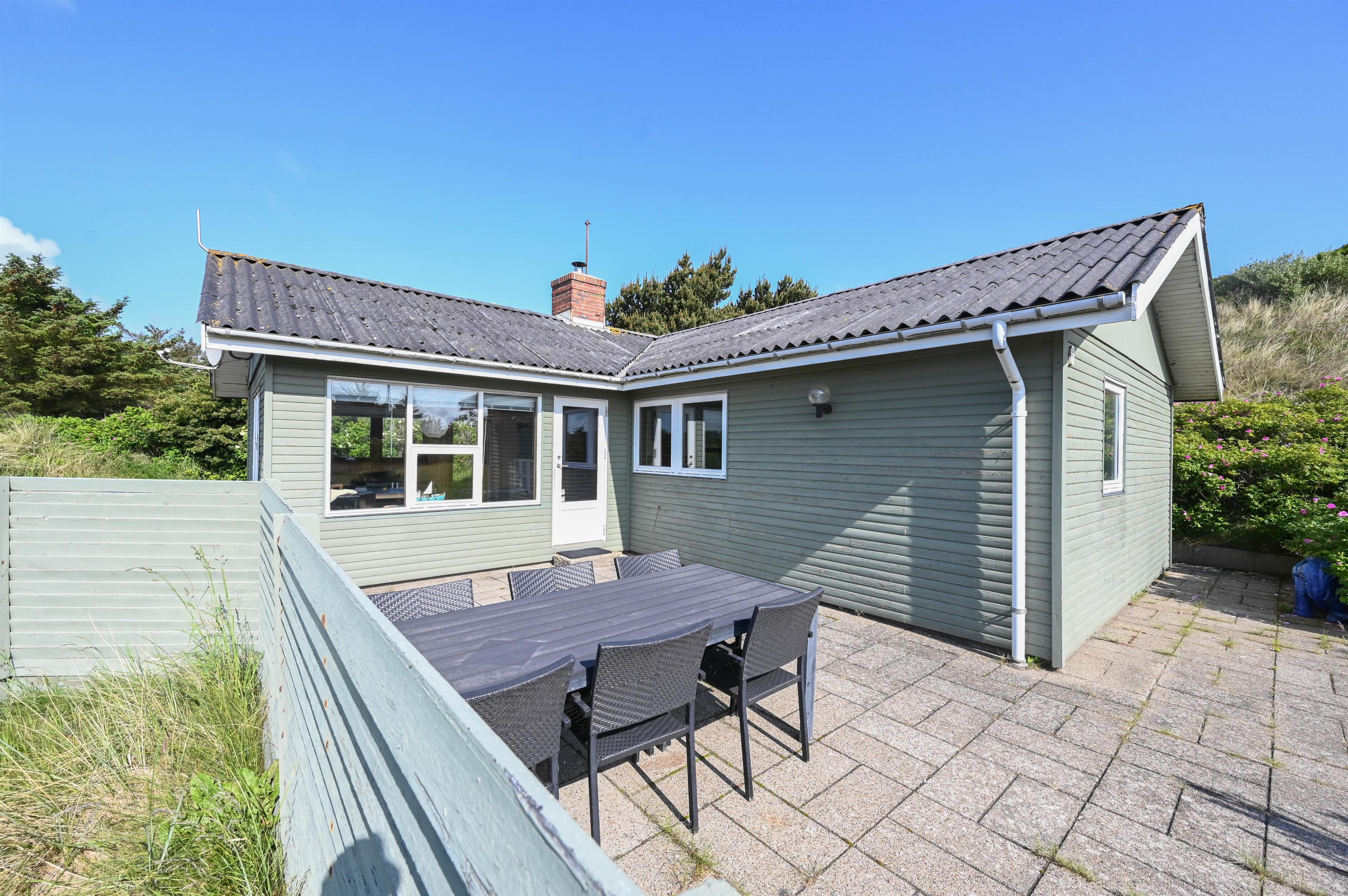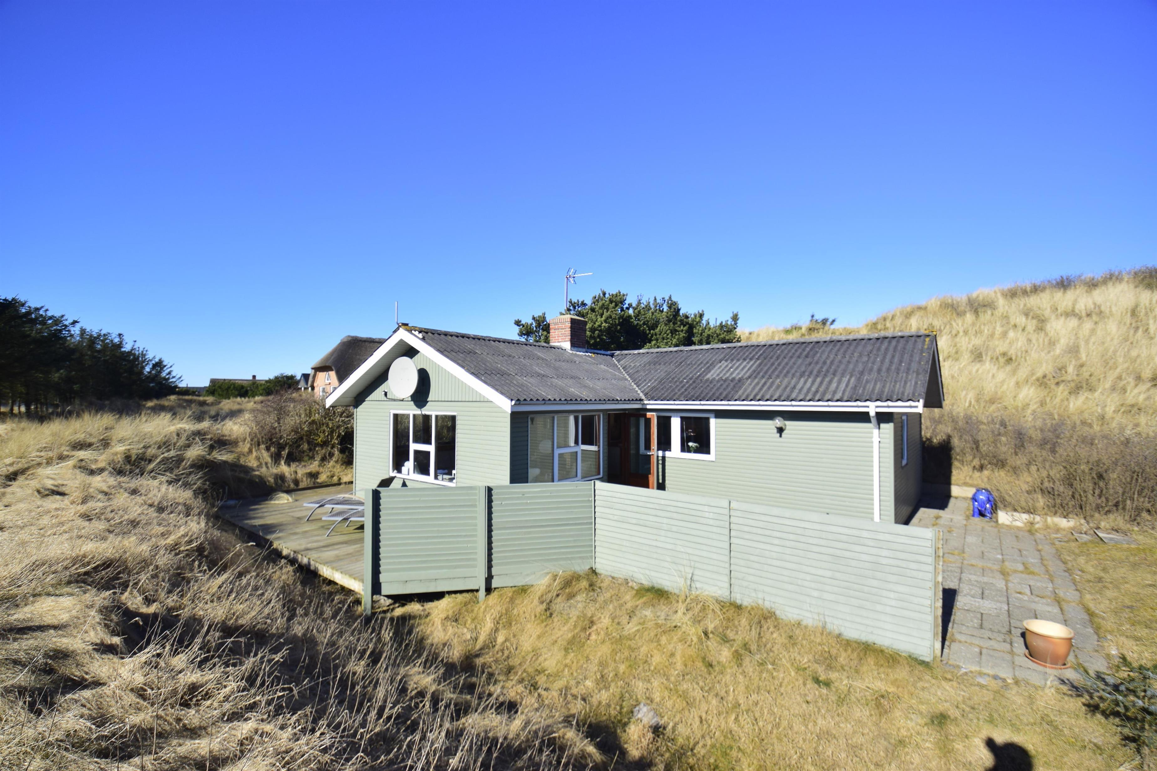 Great with children. This charming retro house is located in the middle of the dunes just north of the lively holiday resort of Søndervig with its many attractions. The house has 70 square metres of living space and is situated on a 1,200 square metre natural plot. Here you live just a few 100 metres from the beach. You have a total of 3 terraces at your disposal. On the marvellous south-facing terrace with wooden flooring, a high dune keeps out the wind.