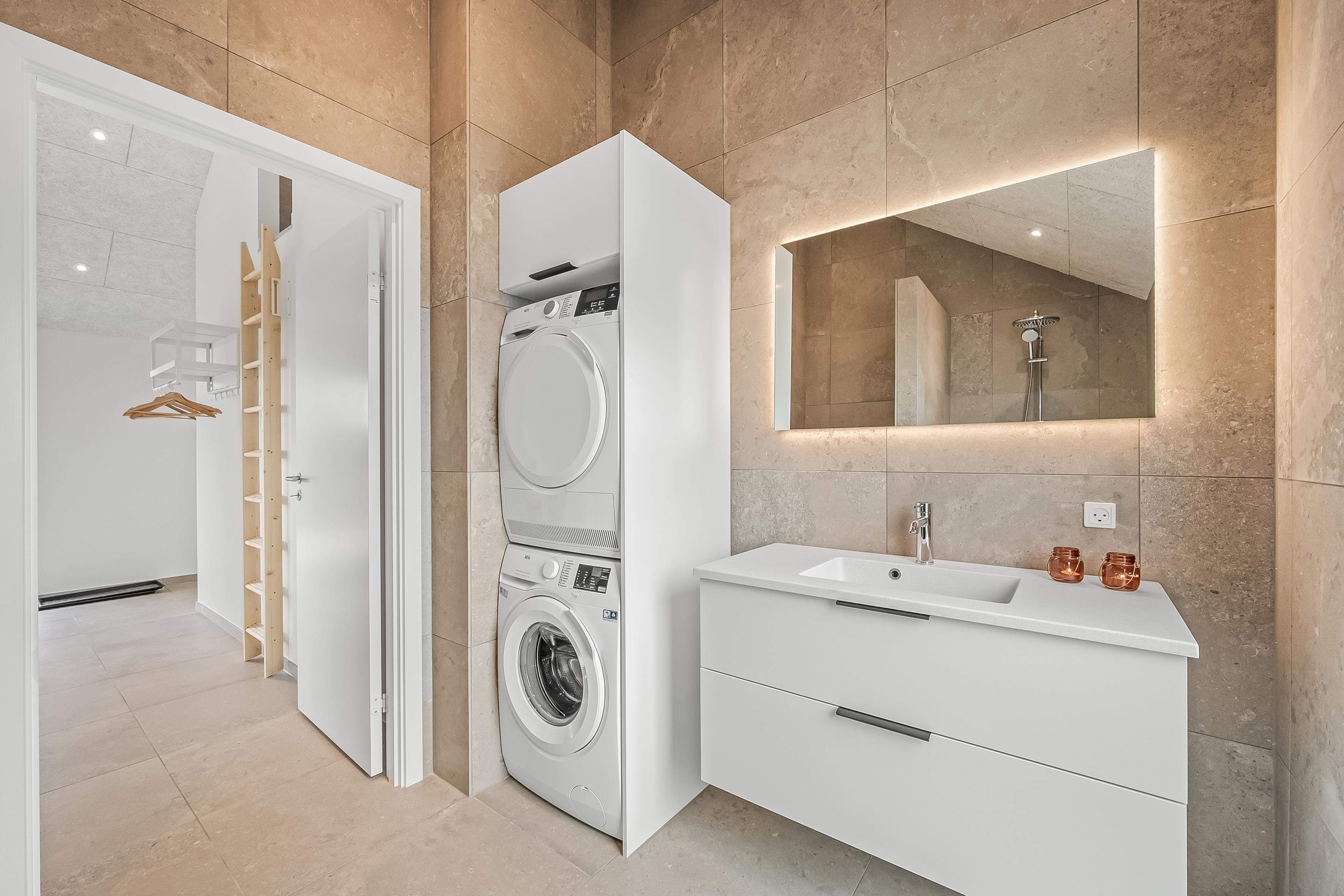 The impressive pool area with sauna is the heart of the house and invites hours of fun and relaxation. The 3 luxurious bathrooms ensure that there is plenty of space for everyone, and the energy-saving air-to-water heat pump ensures comfortable temperatures throughout the house.
