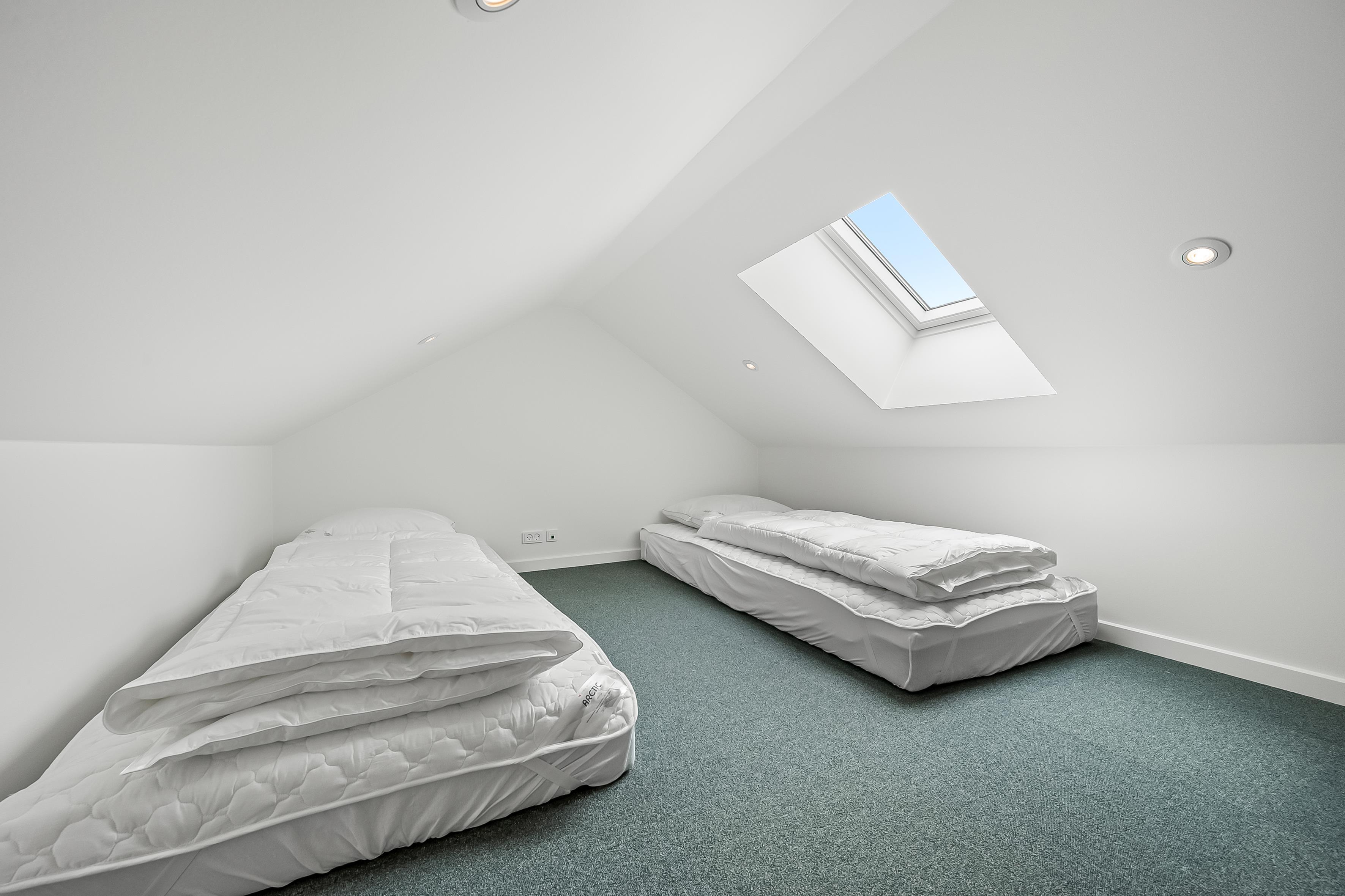 The house has four bedrooms, three of which are furnished with double beds and one with two single beds. There are 2 additional sleeping places in the attic (loft) and a separate alcove in the lower area where you can stretch out and sleep – there is enough space for everyone. The beautifully furnished rooms have comfortable beds that guarantee a restful night's sleep.
