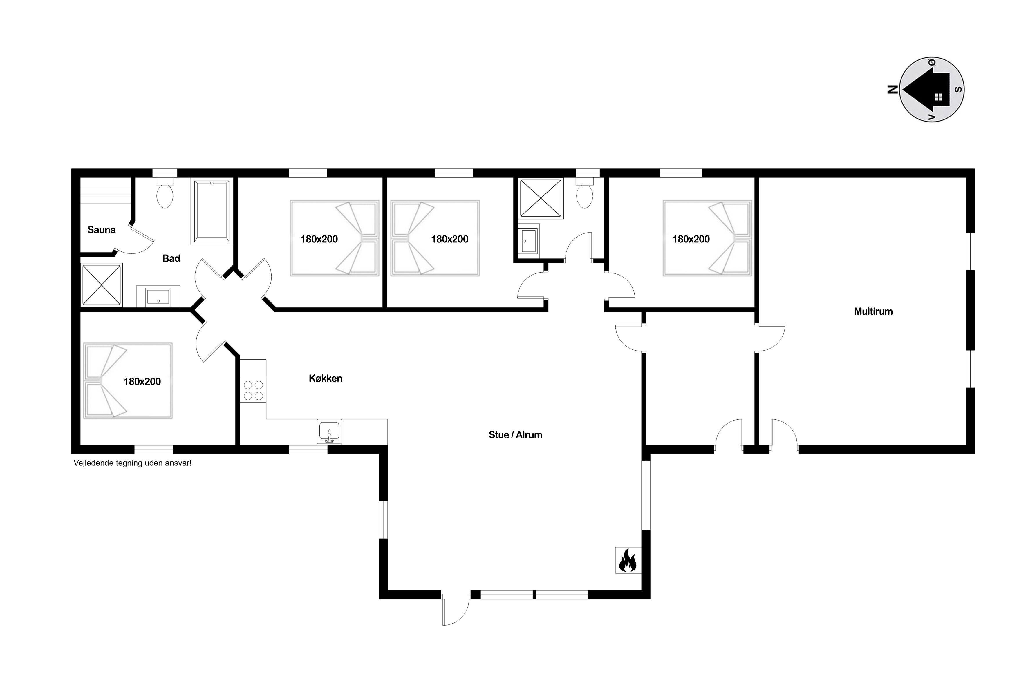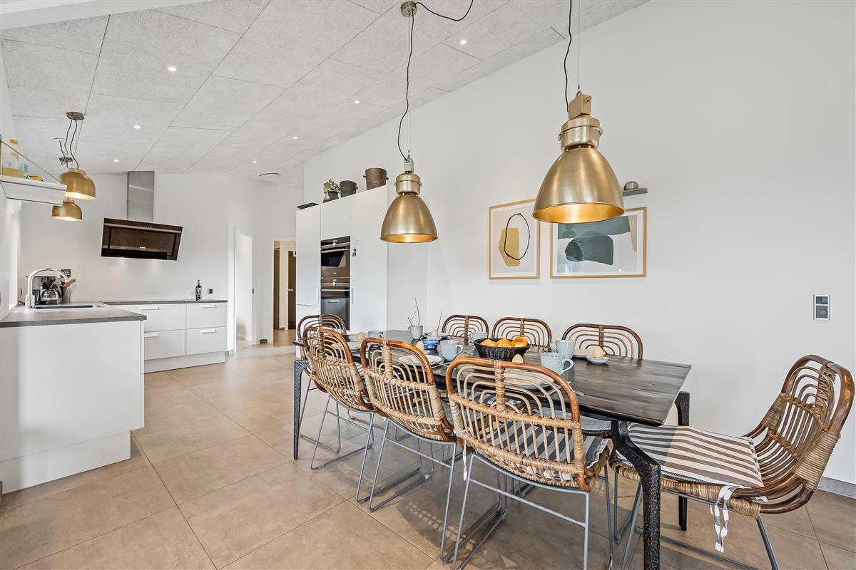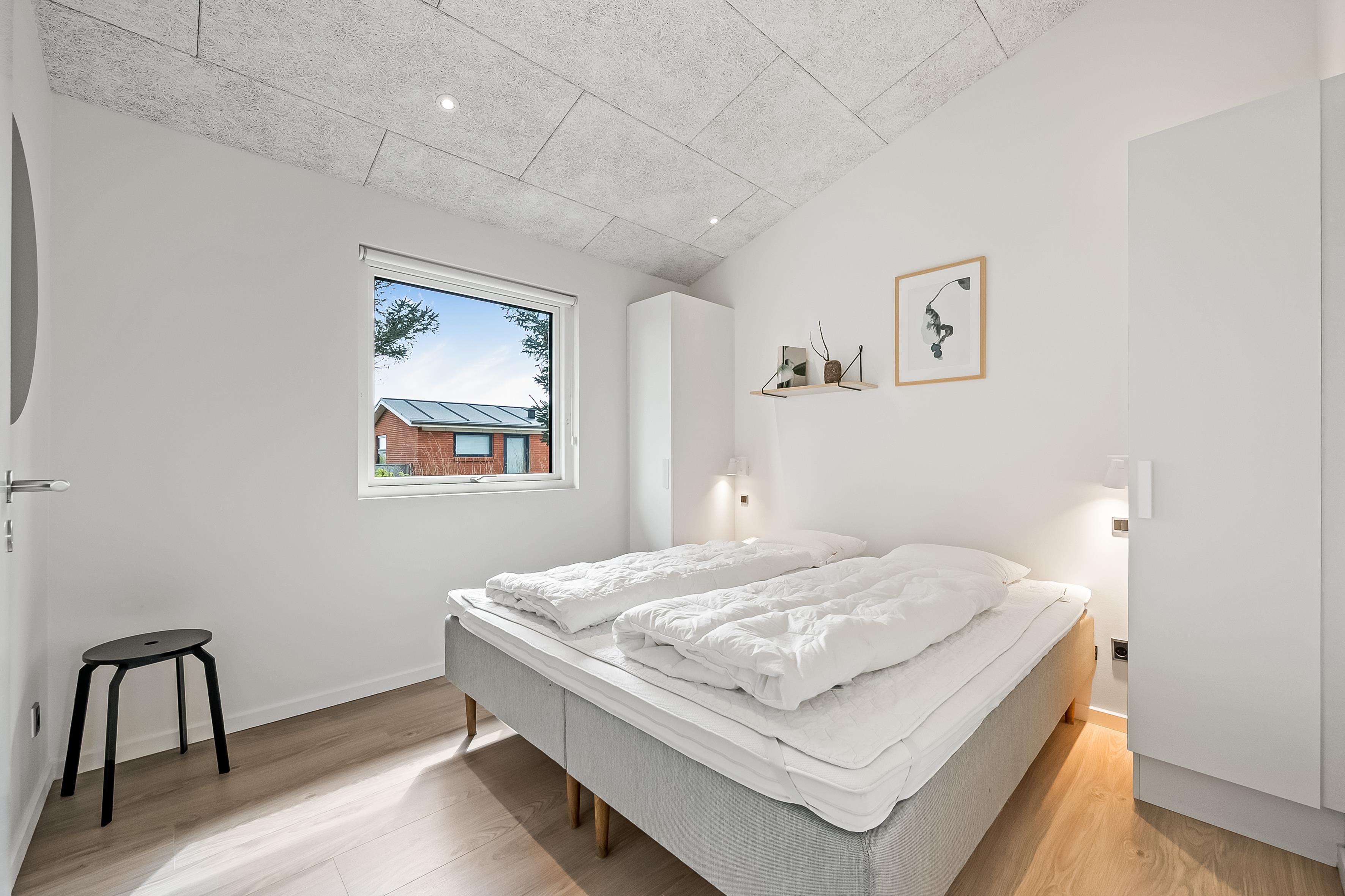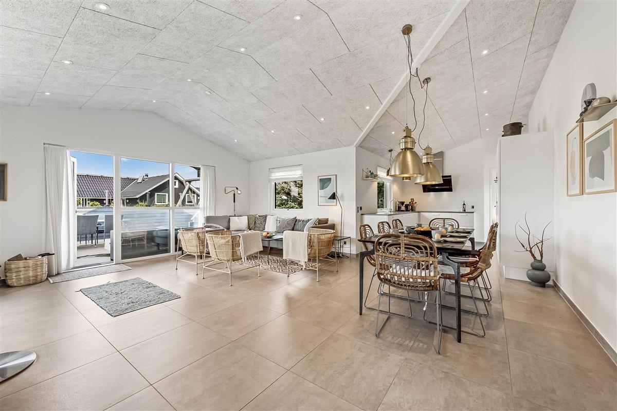 The holiday home accommodates 8 people, and the bright interior and modern furniture contribute to the stylish atmosphere. The large windows invite sunlight and the West Jutland landscape inside, and the classic wood-burning stove ensures a cozy atmosphere all year round.