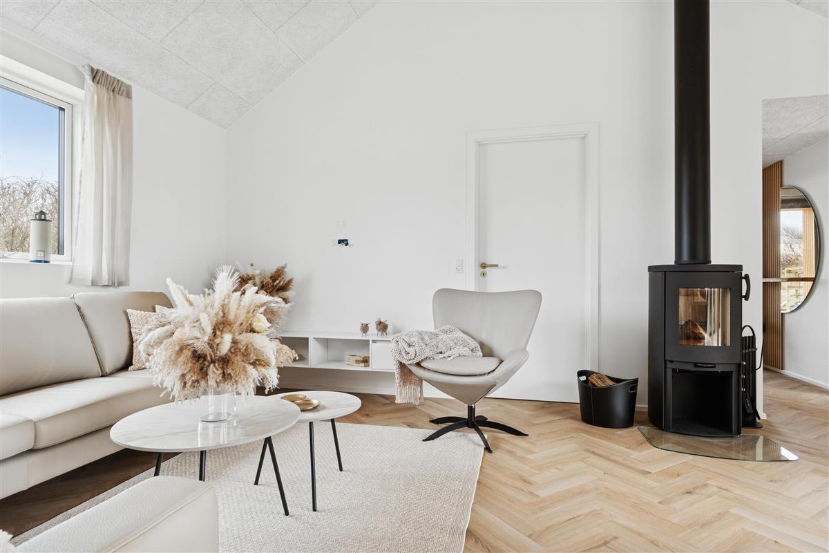 For added convenience, there is a practical guest shed with a fridge/freezer, washing machine, and tumble dryer, as well as an EV charger at the house. The location is highly attractive, within walking distance of Søndervig town center with shops and restaurants, and only approx. 700 meters from the stunning North Sea.
