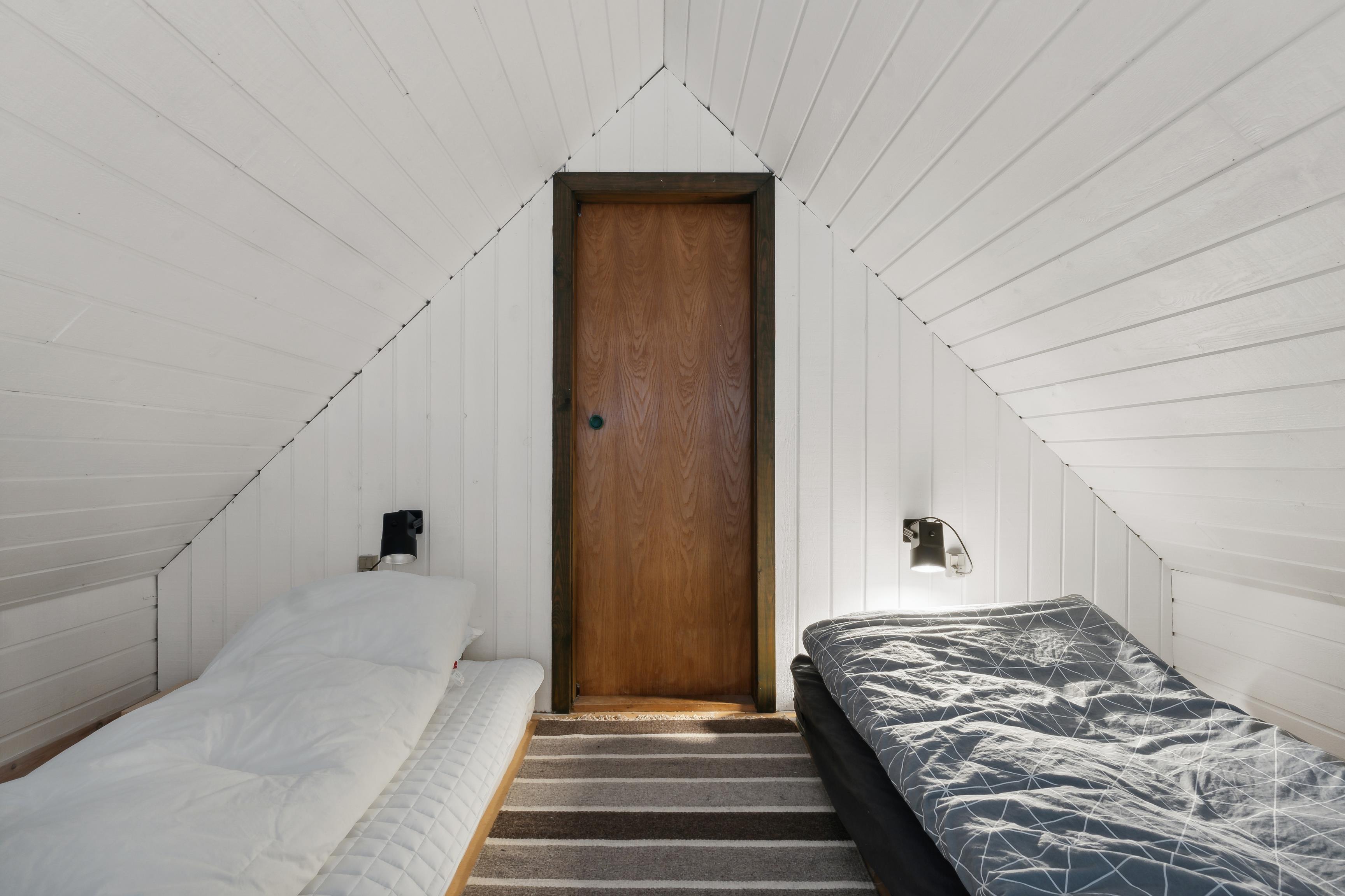 There is one comfortable bedroom with two single beds. Additionally, there is a cozy loft with two single beds, perfect for children or extra guests.