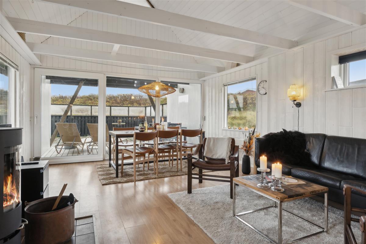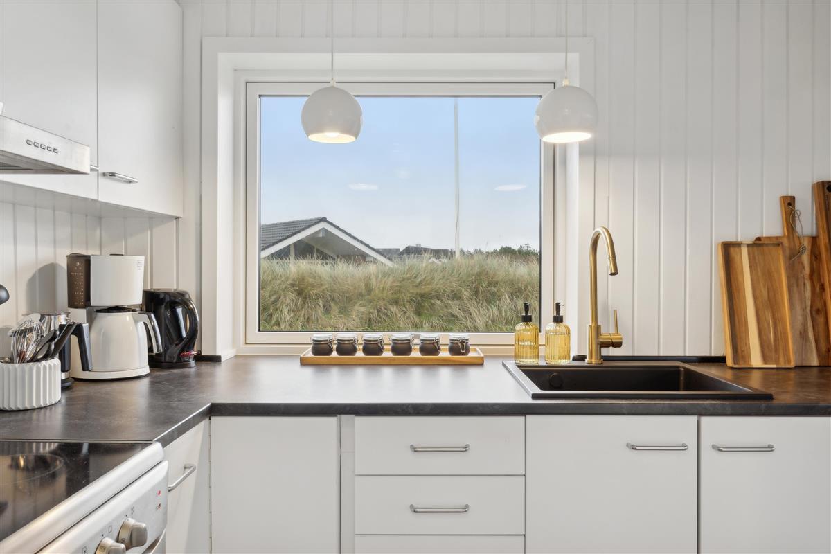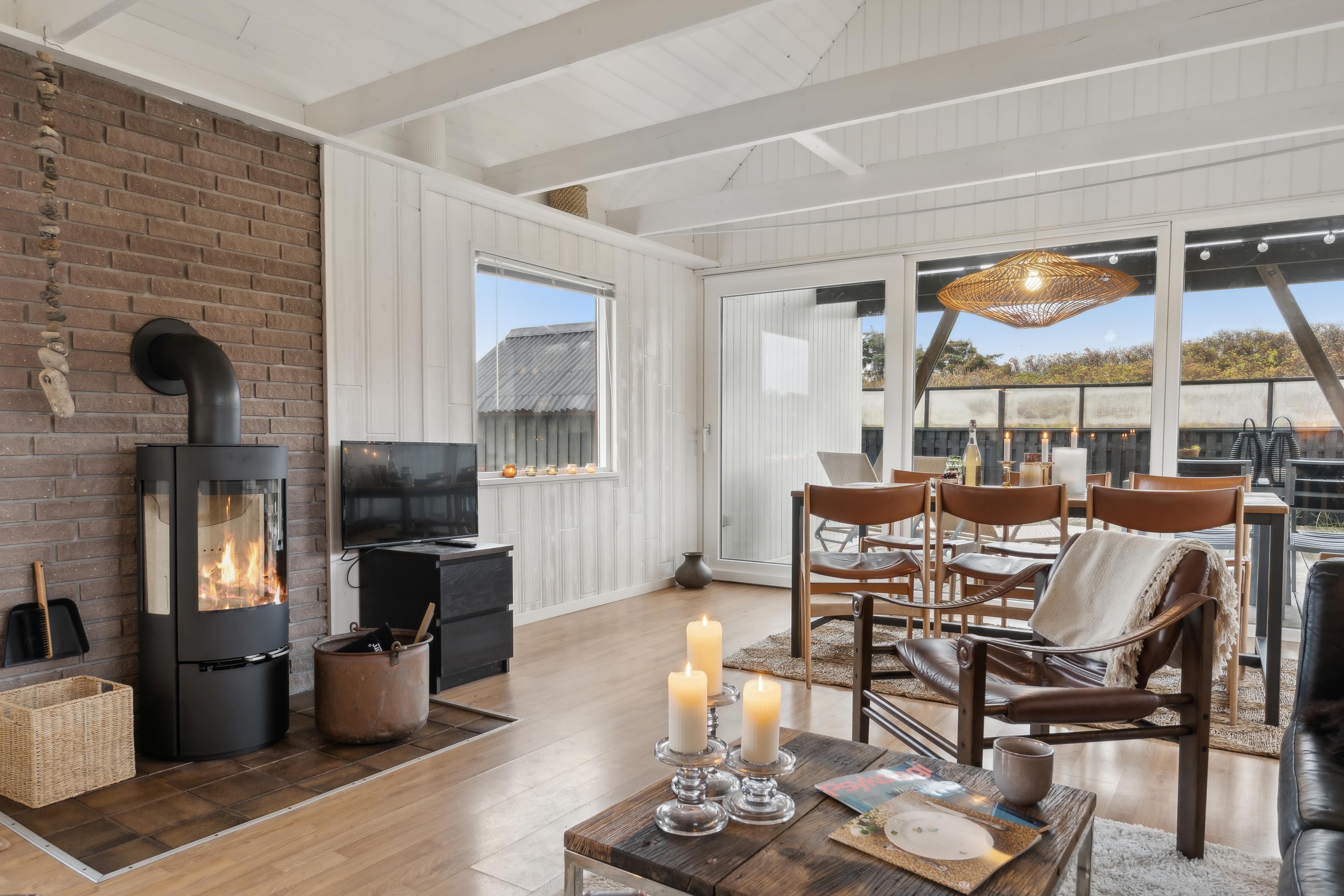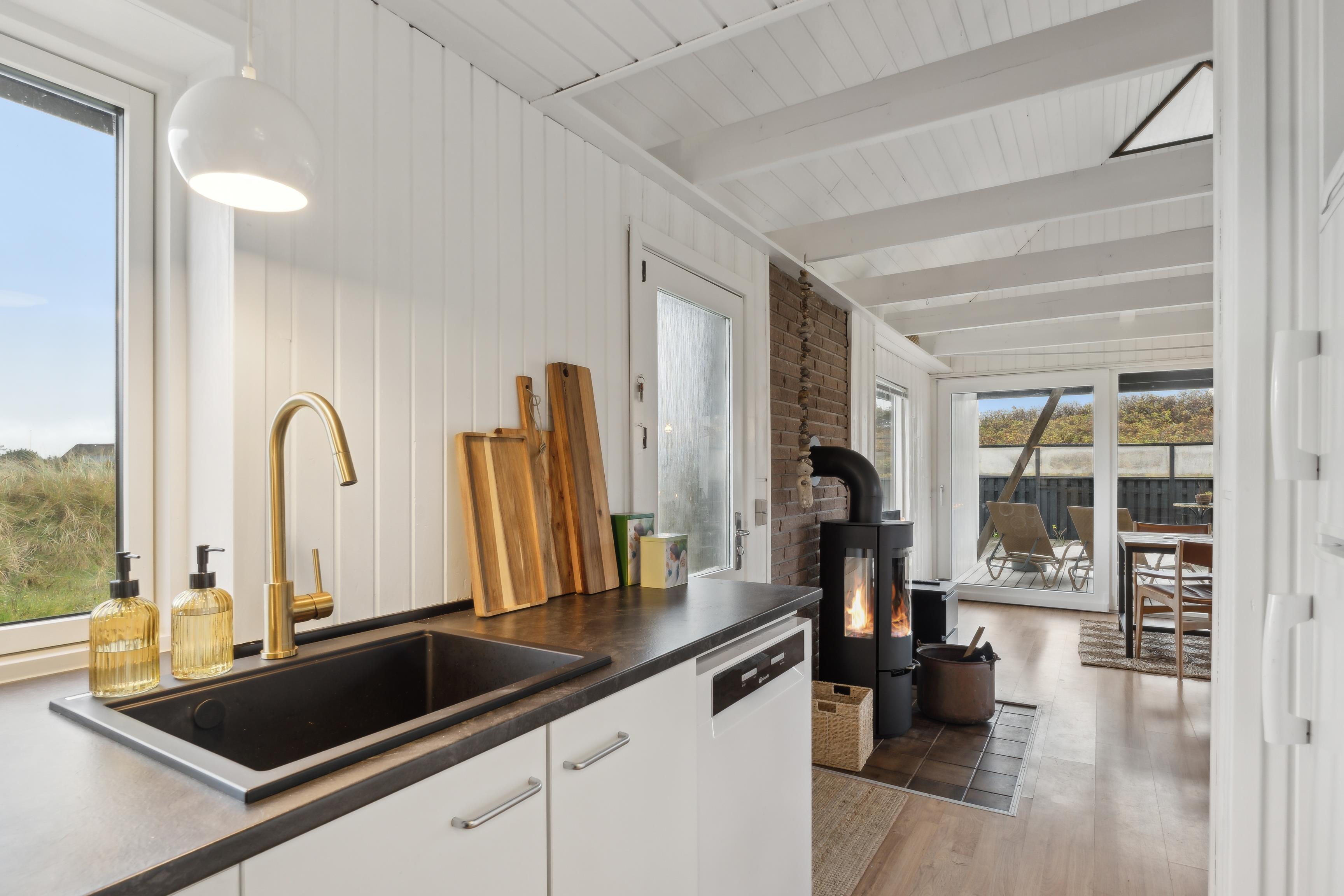 Interior and Facilities: The holiday home features a bright and spacious living room with large windows, offering fantastic natural light and a beautiful view of the surrounding dunes. The open floor plan connects the living room to a small kitchen, equipped with all the necessary amenities to prepare delicious meals.
