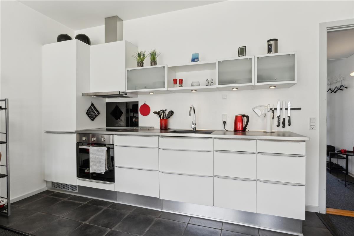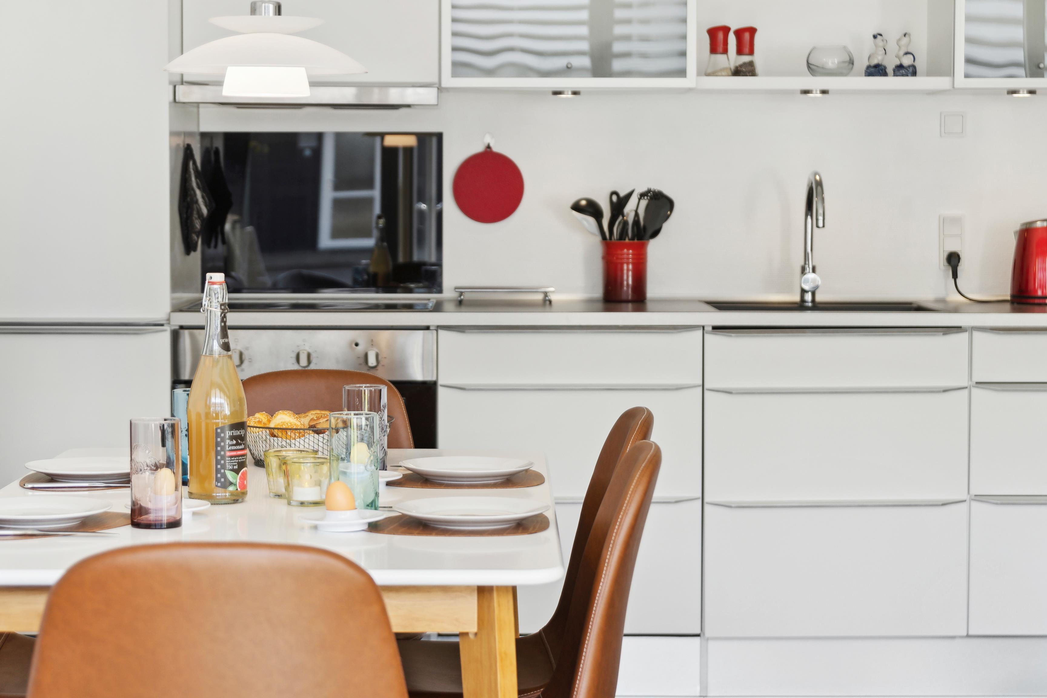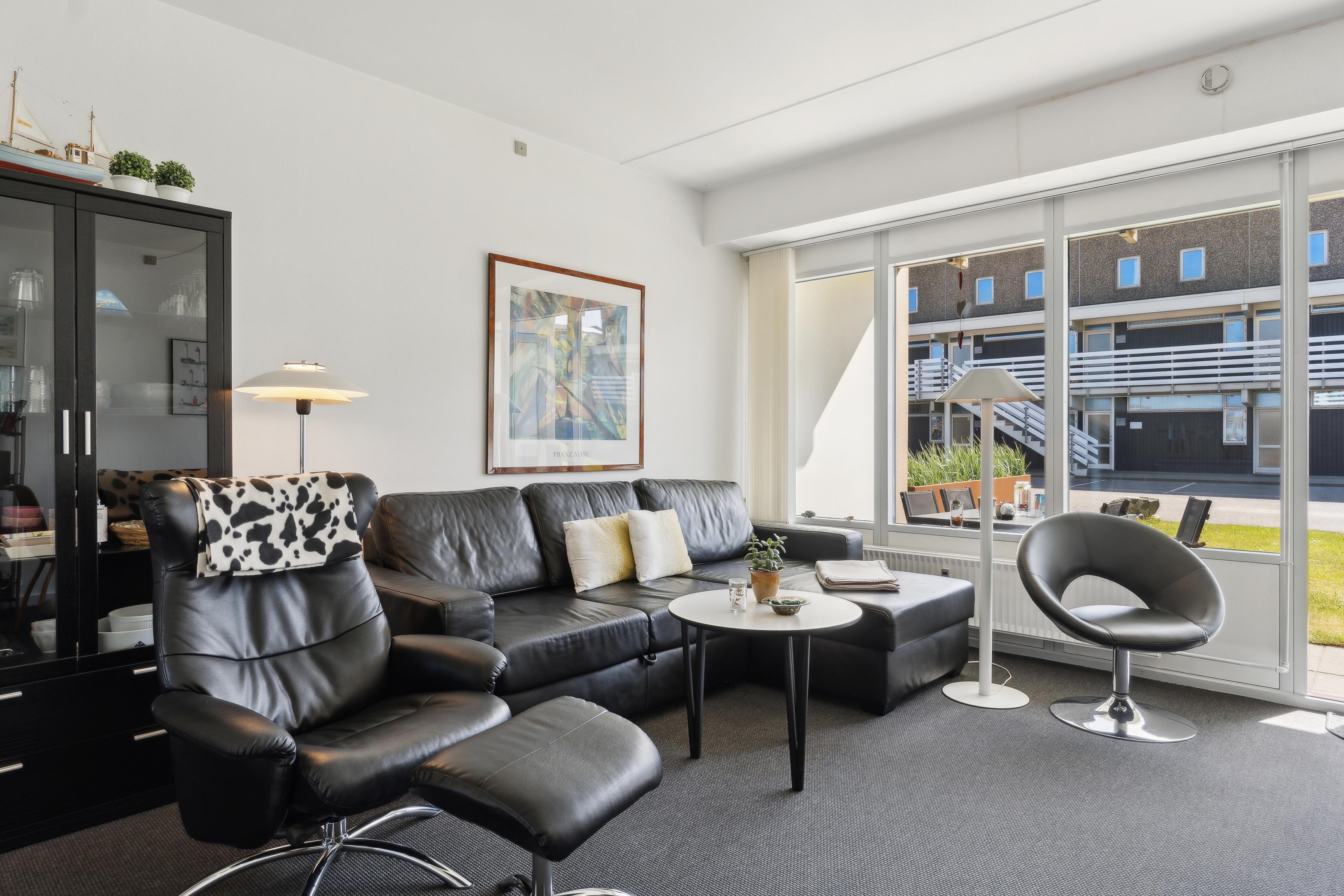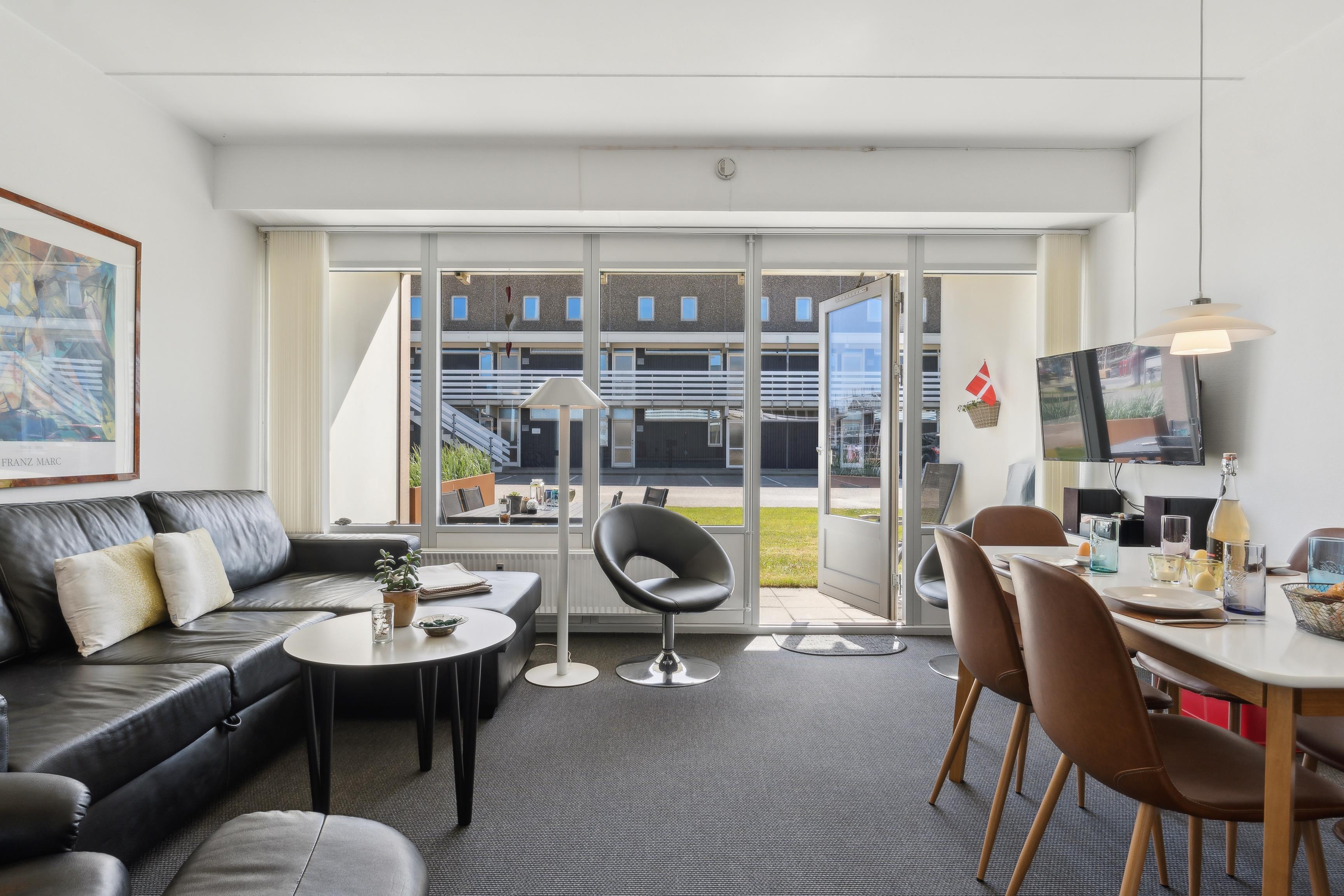 The apartment is 50 square meters, and the living room serves as the heart of your holiday stay. The kitchen, living room, and dining area are all combined, so you have plenty of opportunities to spend time together – whether you're cooking, playing games, or just relaxing. The kitchen is well-equipped, and once the meal is ready, you can be glad that there is a dishwasher to take care of the cleaning.