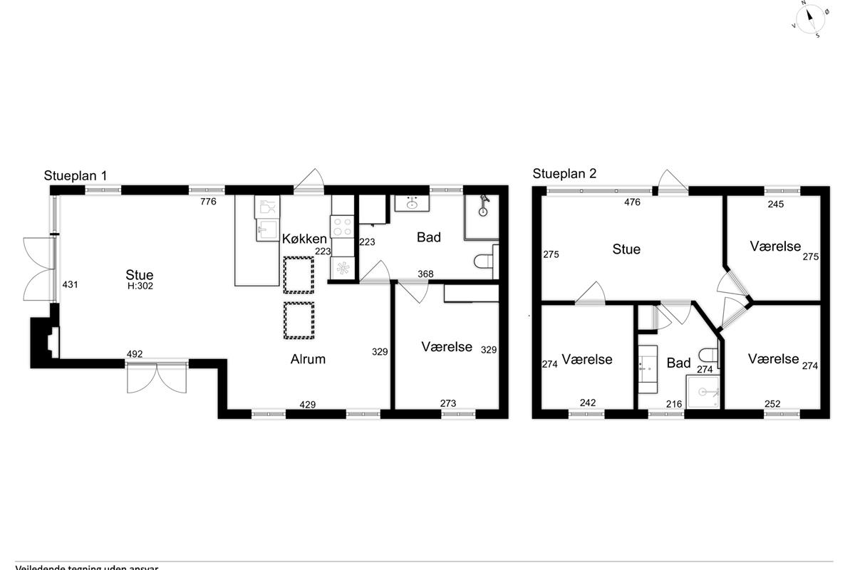 The house is divided into two areas and is decorated entirely in light colours, which reflect and emphasise the elegance of the house. In the main house, you will find an open-plan living area that blends seamlessly with the kitchen and dining area, giving the room an open atmosphere. The wood-burning stove spreads warmth and a cosy atmosphere on cooler days when you hear the wood crackling inside. There is a spacious bedroom with a double bed and a bathroom with a shower. The other building has three further bedrooms, each with a double bed, and an additional bathroom with a shower. The small, cosy living room with its own television completes the picture.