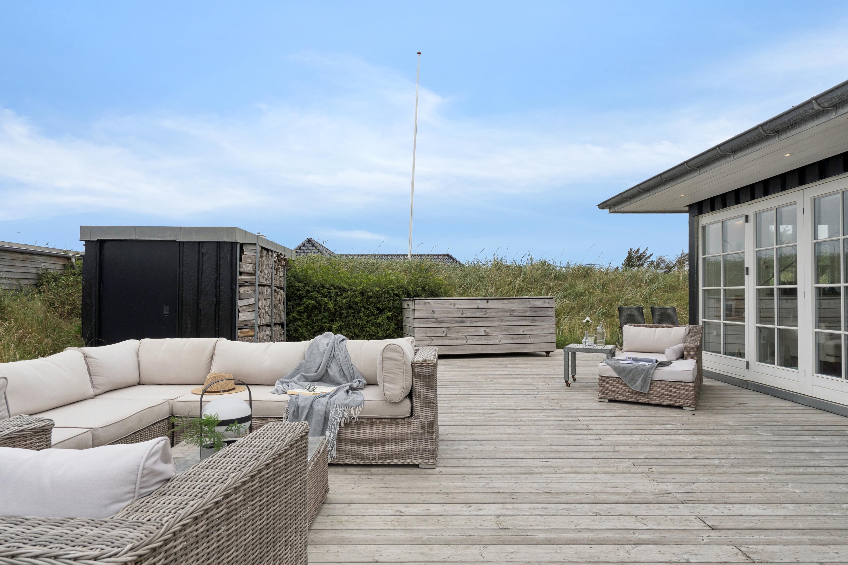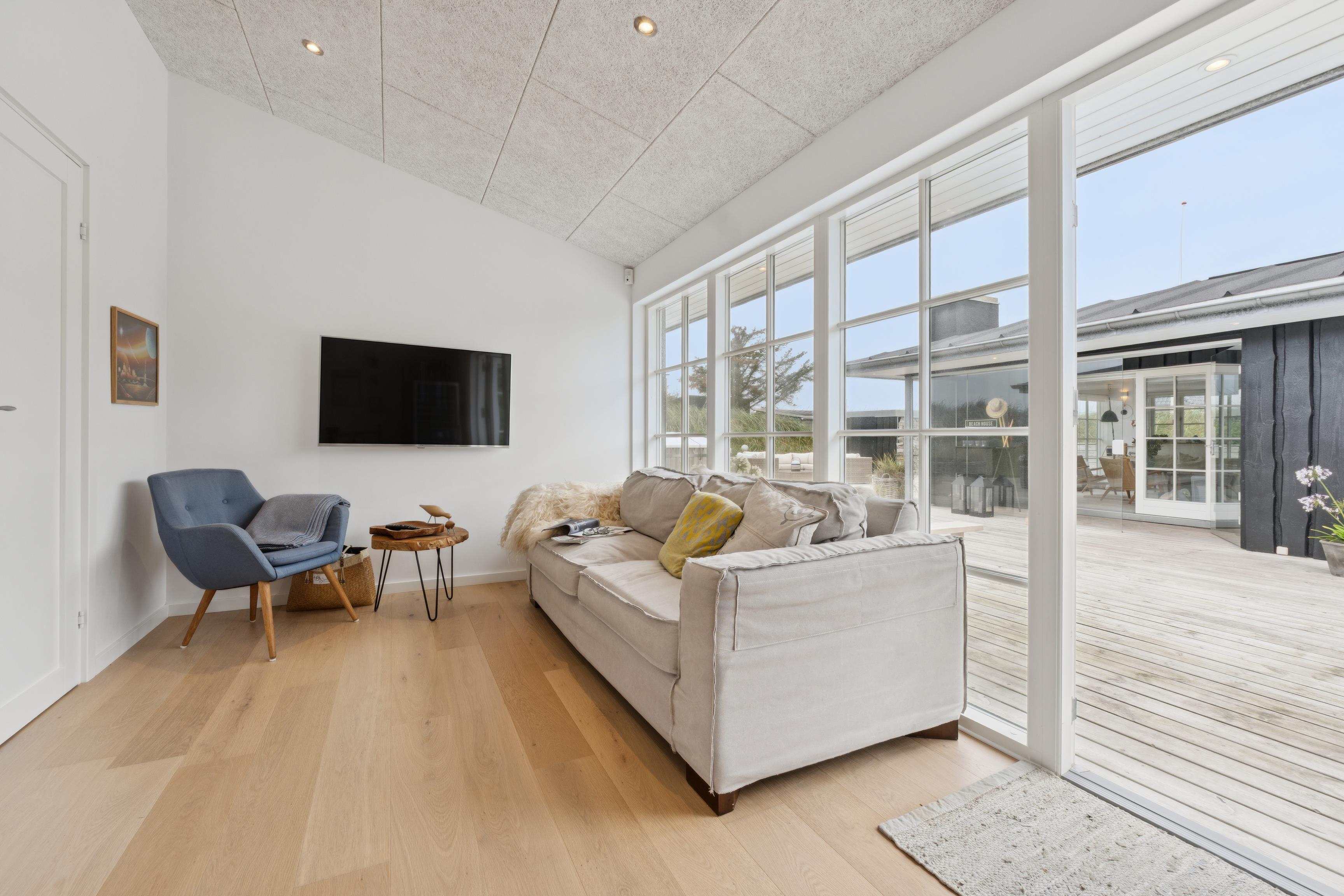 The holiday home exudes a special atmosphere and invites you to relax and unwind – with a good book and a glass of wine in your hand, your holiday here will be unforgettable. Right in Søndervig, you will find various shops, boutiques, cafés and restaurants where you can recharge your batteries after a stroll through the town.