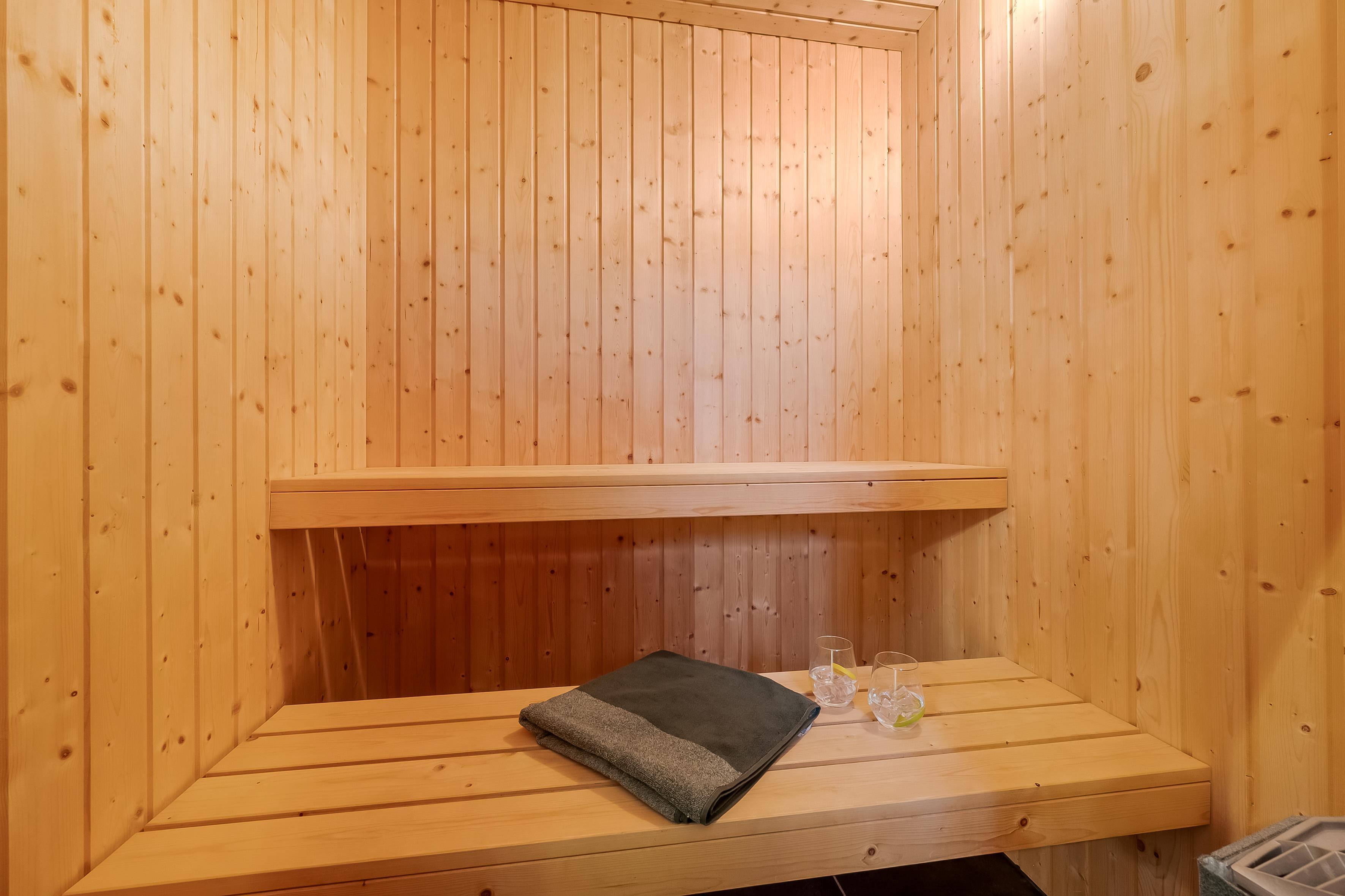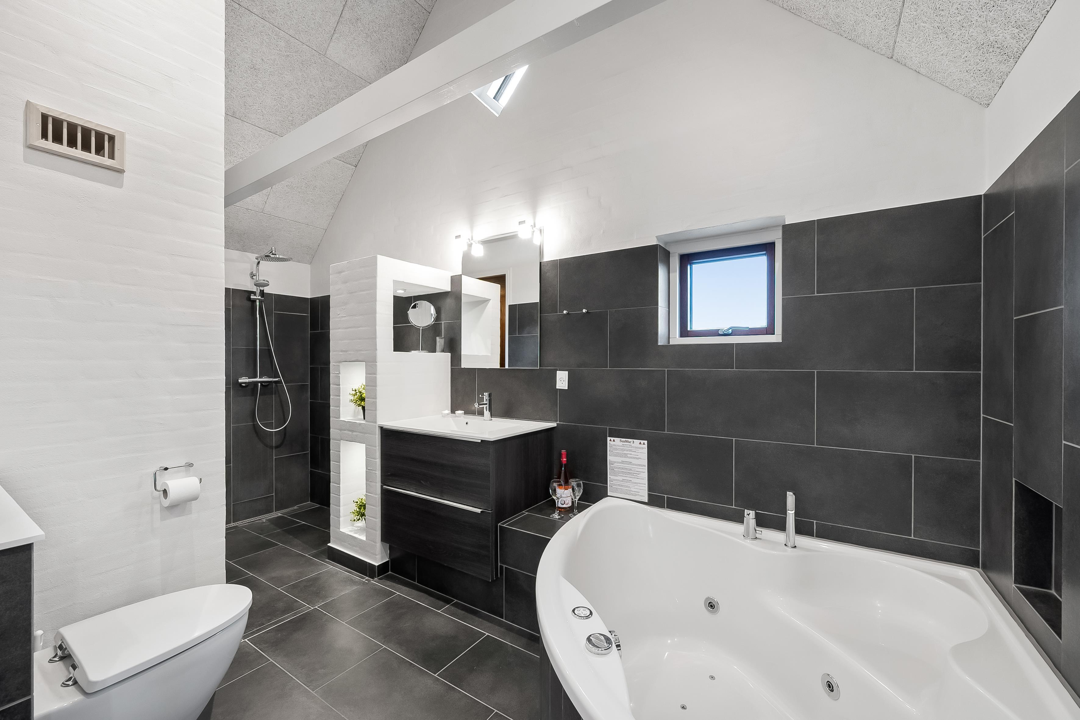 The modern kitchen is fully equipped with an oven, four ceramic hobs, a refrigerator, a 40-liter freezer, a dishwasher, and a microwave. The holiday home has three large bedrooms: two with double beds and one with two single beds. The two bathrooms are equipped with a toilet and shower, and the larger one features a whirlpool and access to a sauna where you can pamper yourself and relax.