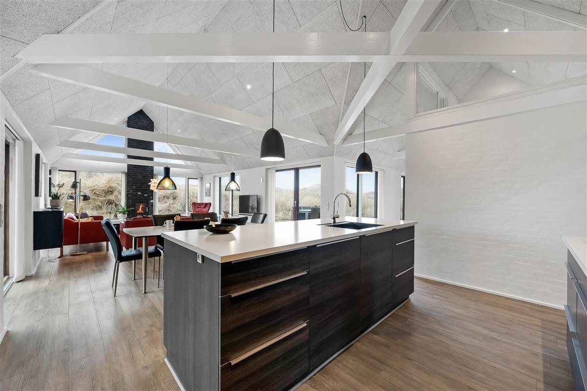 Step into a world of comfort and elegance at Nordsøvej 378, where this wonderful holiday home awaits your arrival. With its unique location on the first row of dunes, just 200 meters from the crashing waves of the North Sea, this house is a true gem that must be experienced. Built in 2014 with a beautiful thatched roof, this holiday home is a true oasis of tranquility with fantastic views of the Jutland dune landscape.