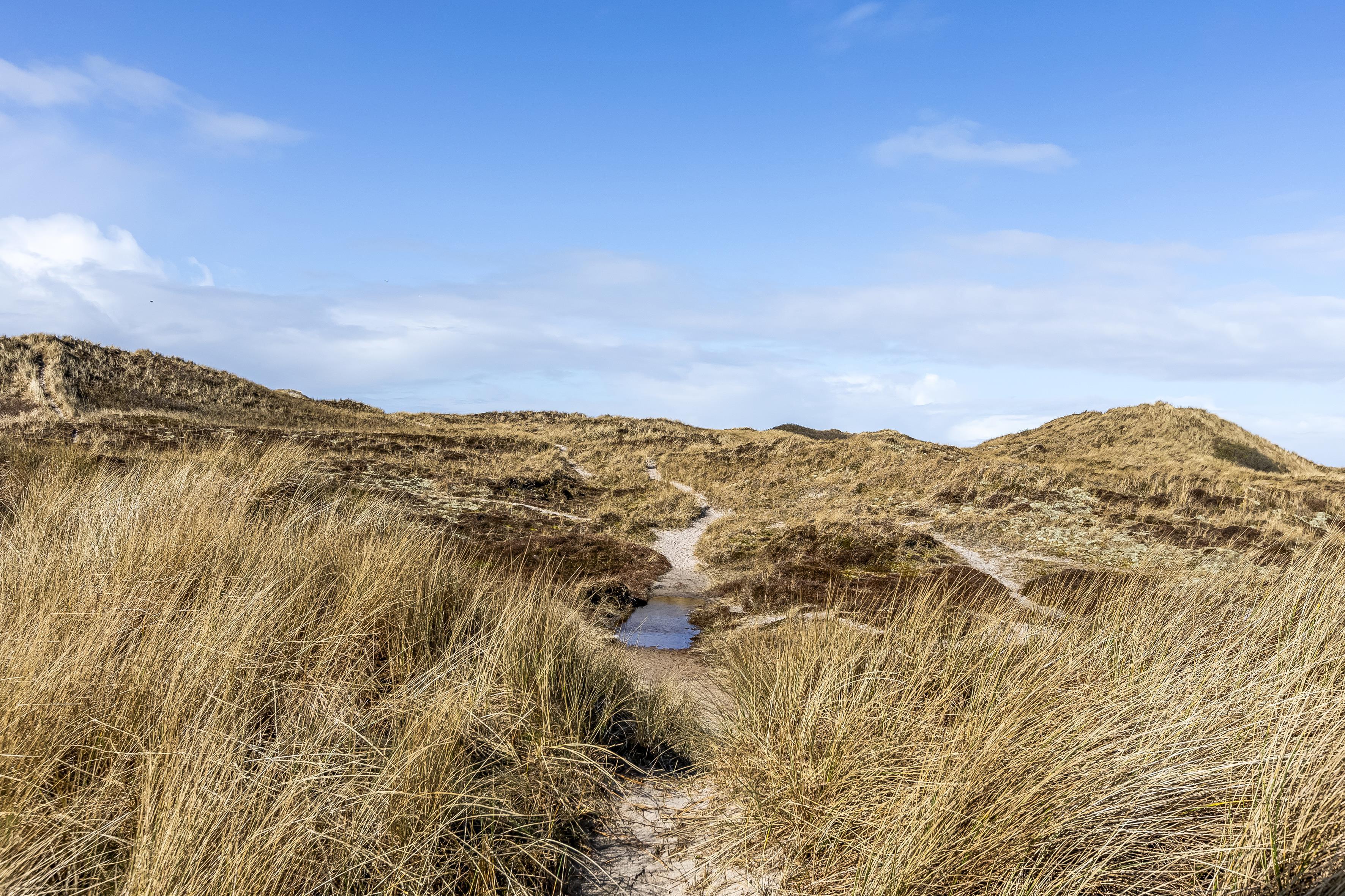 In the spacious open-plan kitchen and living area, modern elegance meets practical functionality. Large windows offer panoramic views of the breathtaking dunes, while high-quality furnishings invite you to relax and unwind. A flat-screen TV with satellite reception for German channels, a DVD player, and Wi-Fi provide entertainment for the whole family. A wood-burning stove creates a cozy atmosphere on cool evenings. An energy-efficient heat pump and underfloor heating throughout the house ensure comfortable temperatures all year round.